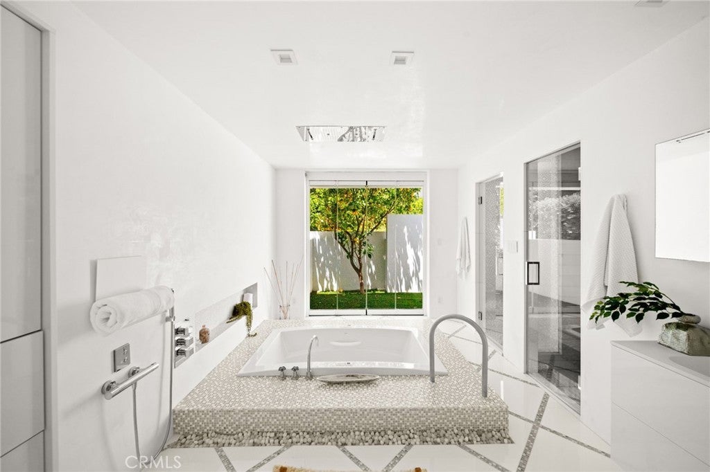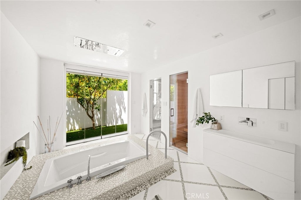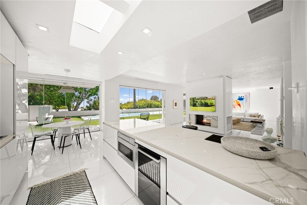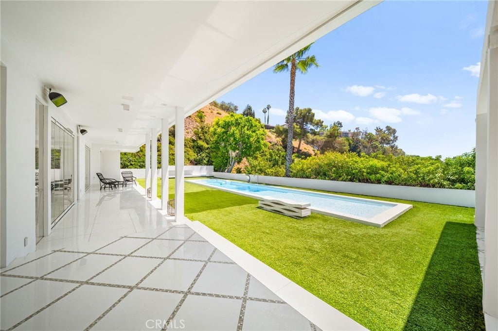 The pinnacle of luxury awaits at this exceptionally private residence in Trousdale Estates. Designed for the most discerning tastes, this oasis offers an unparalleled lifestyle. Inside, find quartz flooring throughout, Venetian plaster, custom Italian doors and skylights. The floor-to-ceiling glass walls fully open, seamlessly connecting to the outdoor pool and showcasing the 180-degree city and ocean views below. An entertainer's dream, the property boasts multiple outdoor lounges, an outdoor shower, and even an outdoor bonus room, all amidst lush landscaping and a tranquil courtyard. The interior features opulent bedrooms and bathrooms, a chef's kitchen with adjacent service kitchen and a living room with a double-faced fireplace. An elevated dining room sets the stage for exquisite meals. Indulge in the spa soaking tub, steam room and sauna. With every detail perfected for your enjoyment, you'll want for nothing in this lavish home.
