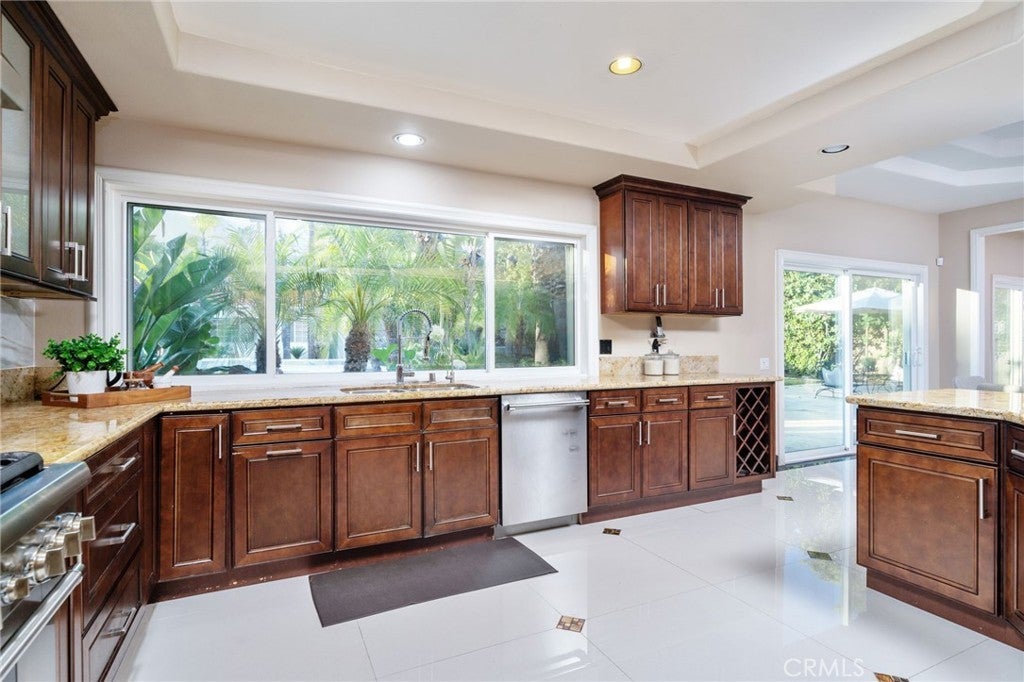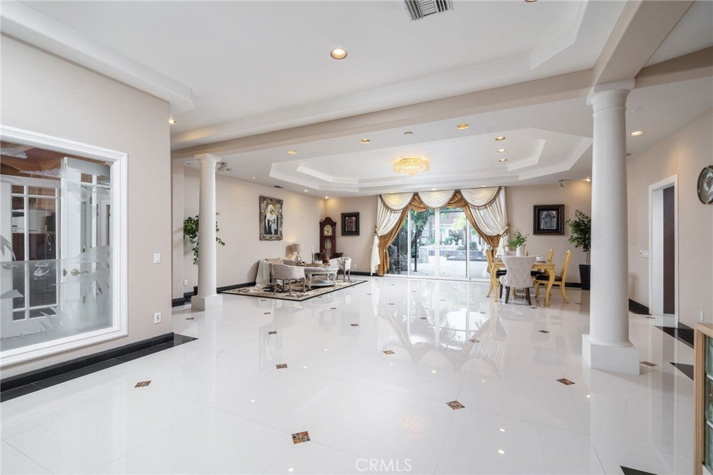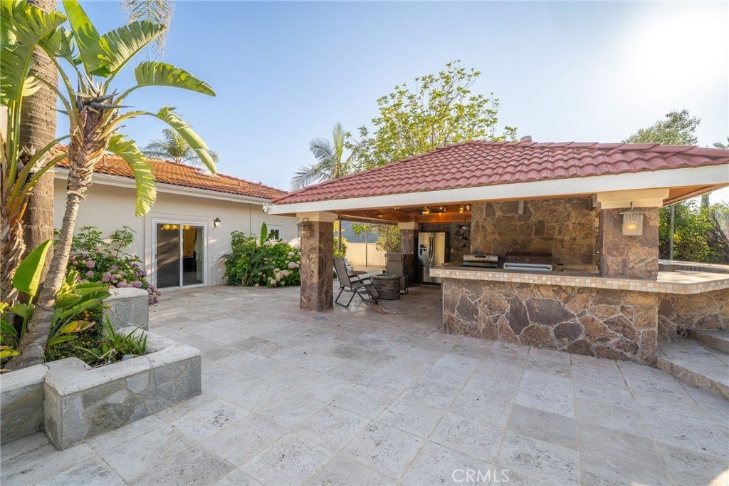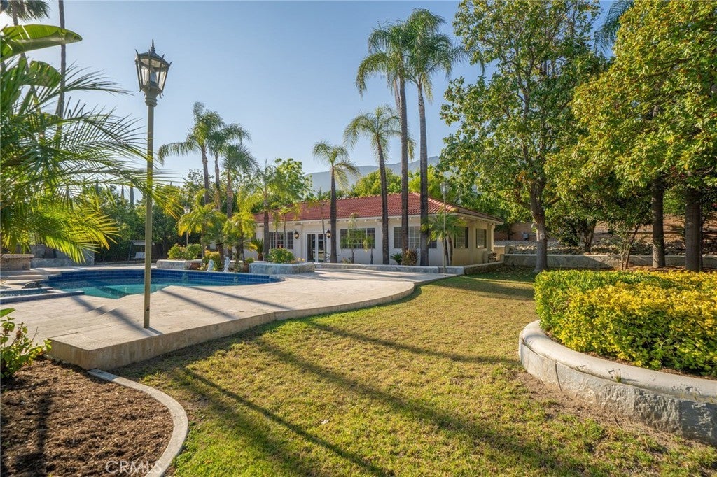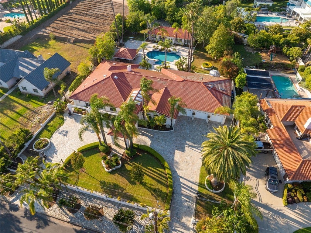 Welcome to 275 E. 24th Street, an exquisite, privately gated Single-Story Mediterranean Villa with Permitted Two Bedroom Guest House nestled in the prestigious San Antonio Heights. This rare estate offers the perfect blend of luxury, comfort, and privacy, situated on an expansive 40,000 SF flat lot framed by lush, mature tropical landscaping. Extensively remodeled in 1990, the main residence boasts 5,534 SF of elegant living space, featuring 5 bedrooms, 6 bathrooms, and a private office. From the moment you arrive, a circular driveway and grand gated entrance welcome you to soaring ceilings with skylights allowing natural light, a formal living room with marble flooring, and panoramic views of the stunning backyard oasis. The chef’s kitchen is a dream with granite countertops, a large center island, stainless steel appliances, custom cabinetry, built-in desk, and direct views of the pool. Entertain with ease in the inviting family room with a built-in bar, sink, and wine fridge, or host formal gatherings in the elegant dining area. The luxurious primary suite offers a serene retreat with a double-door entry, cozy fireplace, walk-in closet, wet bar, and spa-inspired bathroom complete with jetted tub and oversized shower. Additional highlights include multiple ensuite bedrooms, an in-law suite with its own private living area and bathroom, and a dedicated office with built-ins. A major bonus is the Permitted 2012 built Single-Story Guest House, offering 1,182 SF with two bedrooms, one bathroom, living room with built-ins, kitchenette, oversized shower, and a private sauna, perfect for guests, extended family, or rental income. Step outside to your own resort-style paradise, featuring a sparkling pool and spa, expansive patios, manicured lawn areas, tropical gardens, and a covered outdoor kitchen with its own pool bathroom with shower. Additional amenities include an indoor laundry room, circular driveway, 3-car attached garage, and ample off-street parking. This is truly a one-of-a-kind estate offering luxury, versatility, and unforgettable outdoor living. Don’t miss your chance to own a piece of paradise in Upland!
