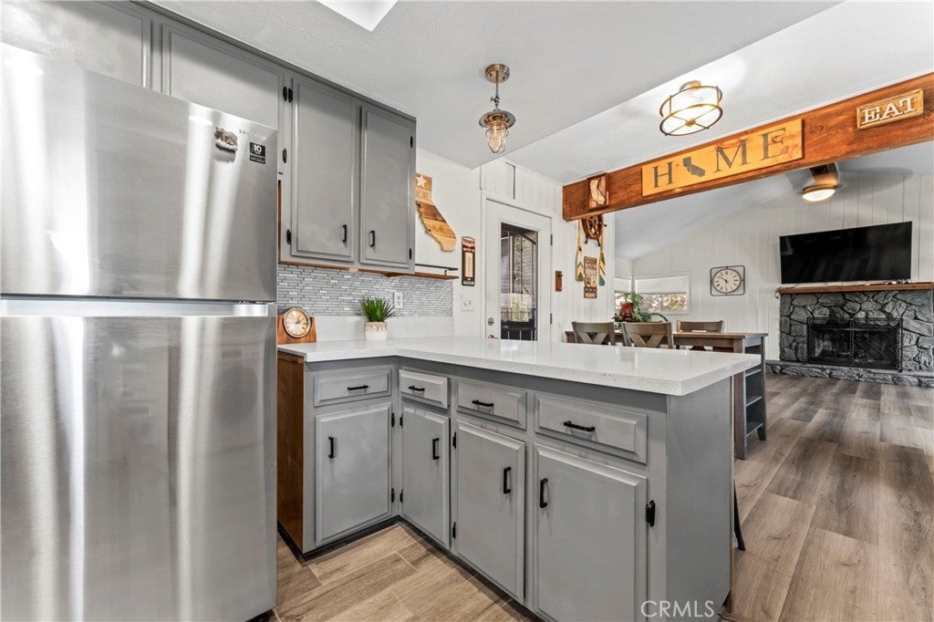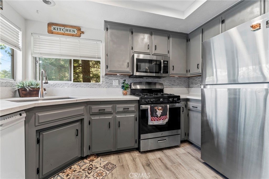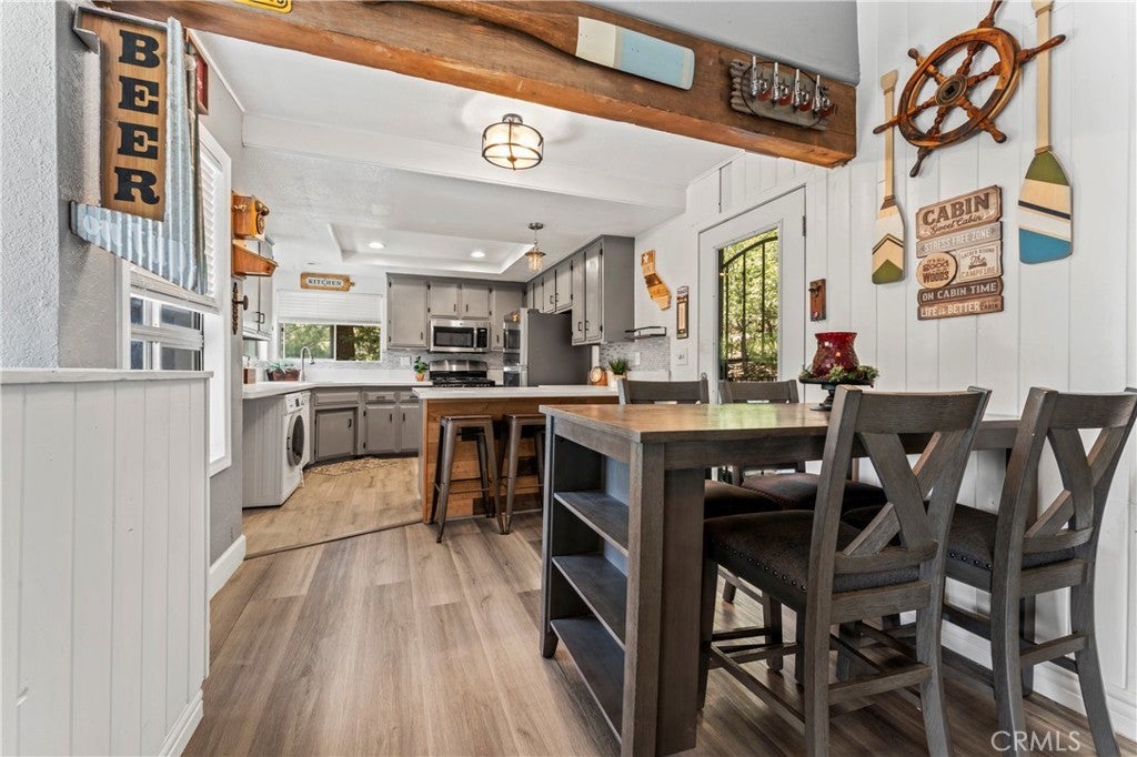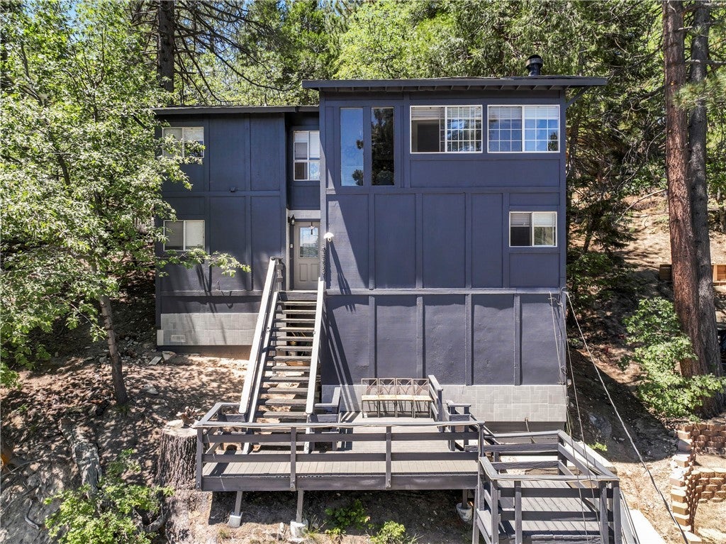 Your mountain dream awaits, nestled in the serene Running Springs area. This charming 3-bedroom, 1.5-bathroom home offers an incredible opportunity whether you're seeking a year-round residence, a relaxing second home for weekend and holiday, or a high-potential rental investment. Step inside to a bright, open living room with a cozy fireplace(wood burning and or gas), and two ceiling fans. Off the living room is a game area where you can enjoy game night with friends and family. The updated kitchen boasts stainless steel appliances ( Gas Range, Microwave and Refrigerator), a dishwasher, and a washer machine, plus ample storage. Each of the three spacious bedrooms features a ceiling fan for comfort, and the primary bedroom includes its own fireplace for ultimate coziness. Laundry is located in kitchen and in closet. Outdoor living is a delight with two updated decks. The back patio, complete with charming hanging lights, is perfect for summer entertaining, while the front deck offers beautiful views of the mountains and great view of the stars. You'll also appreciate the convenient parking spaces next to the property and extra storage in the basement. This home's prime location in the Running Springs puts you moments from local shops, restaurants, and a grocery store. Adventure beckons with easy access to Snow Valley Ski Resort, hiking trails, Snow Drift and tubing. Plus, you're a short drive from Lake Arrowhead and Sky Park at Santa's Village, and Big Bear Lake. Commuting is a breeze, just off HWY 18 and HWY 330. Embrace the beauty and tranquility of the mountains in this versatile retreat! Property may qualify for USDA 100% financing and grants as well.