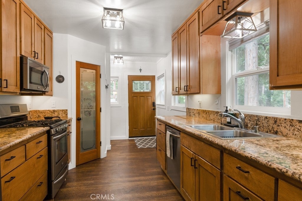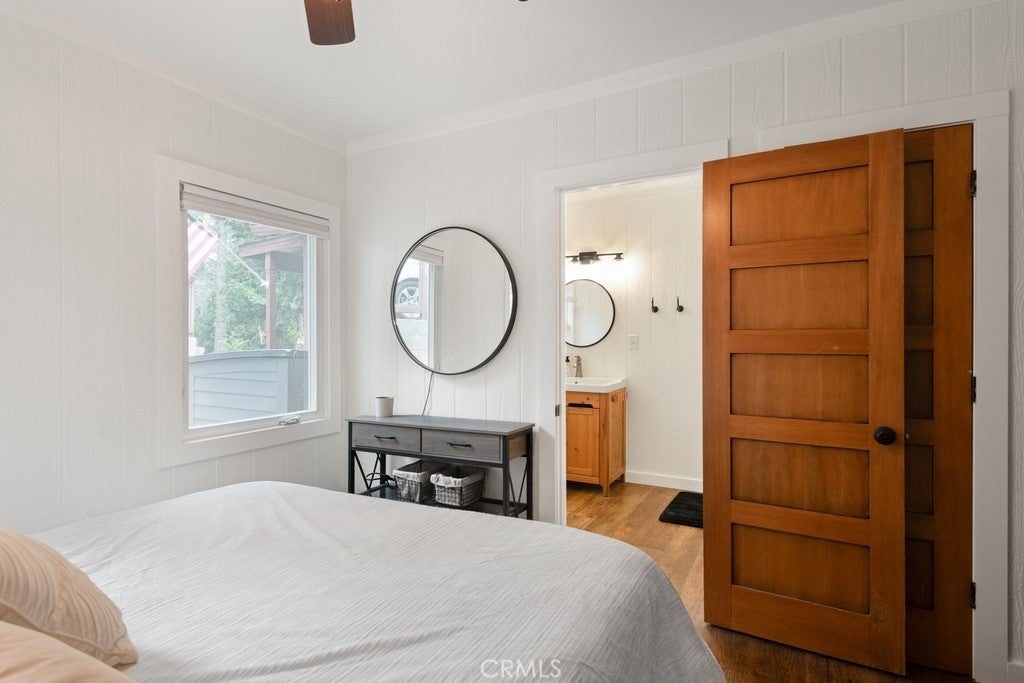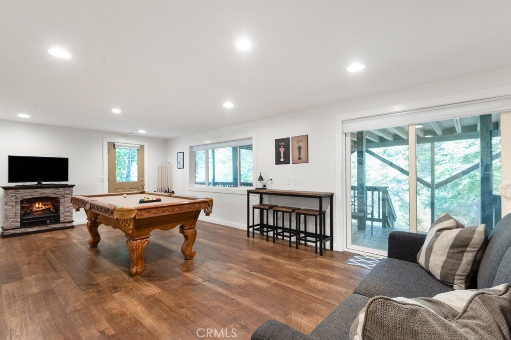 Charming 1927 Cabin in Private Crest Estates Nestled in the highly sought-after and private enclave of Crest Estates in Lake Arrowhead, this timeless 1927 cabin offers the perfect blend of historic charm and modern upgrades. Tucked away in a storybook setting surrounded by towering pines and dogwood trees, this serene retreat is ideal for peaceful vacations or full-time mountain living. Less than a mile away from the village on nearly a 1/2 acre lot. The warm and inviting interior features original hardwood floors and a beautiful stone wood-burning fireplace that anchors the cozy living space. The main level offers a spacious primary suite with its own ensuite bath, a galley-style kitchen, and a convenient laundry space. Go outside onto the large main-level deck to take in the tranquil forest and peekaboo lake views—perfect for entertaining or enjoying quiet mornings. Downstairs, you'll find a generous playroom complete with its own bathroom and direct access to a second expansive deck, offering additional space to relax or host guests. There's parking for 3-4 vehicles, and the low association fee makes ownership easy. Bonus: the pool table is included! Experience the magic of Crest Estates—a hidden gem where nature, privacy, and history come together.