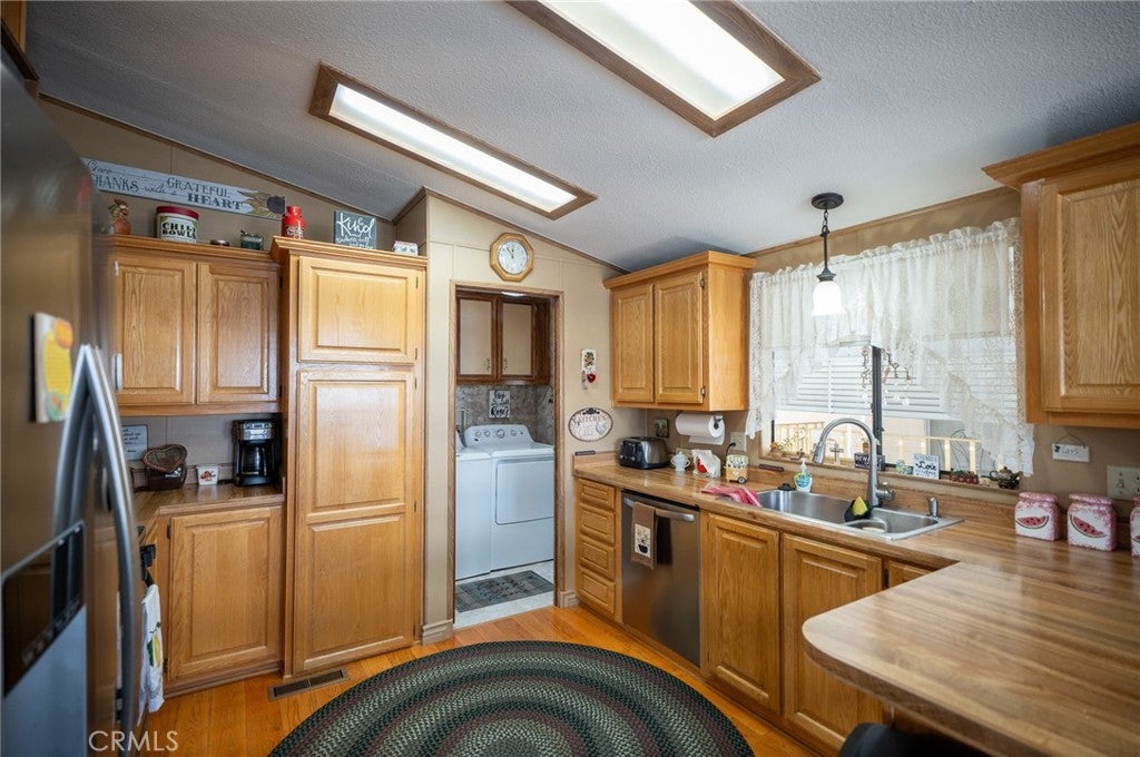 Welcome to this fully upgraded home in the highly desirable 55+ park that is Casitas La Verne! Come on down to the beautiful city of La Verne nestled against the foothills. This gorgeous triple wide home would be a delight to anyone. Included in the park is a swimming pool and a big gathering room with connecting billiard room. It's very well kept park. Walk up a few stairs to the front patio, inside is a huge living space containing a dinning room and living room with space galore. Just on the other side of this formal dining you have a bar into a nice size kitchen. Laundry is just on the other side. Then a door to your outside oasis. Clean drive way and a storage shed next to the inviting backyard. One nice place to relax. Now on the other side of living room you see a connecting french door making your way to the first bedroom. Once to come out of the hall you step in a large bathroom. Next door to that is the large master bedroom and the master bathroom is amazing as well. Across the hall is another bedroom. This is a must see for all those looking for nice park and nice home.