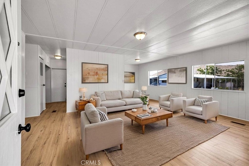 MOVE-IN READY – "Seller Willing To Sell On Payments" Plus 3 Months Free Space Rent for Buyer. This beautifully updated manufactured home in Aztec Estates, a gated 55+ community in Yucca Valley, features brand new flooring, fresh interior paint, a fully updated kitchen with new cabinets and hardware, and updated bathrooms with modern finishes. The exterior has also been refreshed with updated siding and fixtures, enhancing the home’s curb appeal. Aztec Estates offers a peaceful, secure setting with monthly local events and social gatherings, creating a vibrant and connected lifestyle. Conveniently located just minutes from shopping, dining, medical services, and Joshua Tree National Park. Financing is available—don’t miss this turnkey opportunity in one of Yucca Valley’s most desirable 55+ communities. Some photos have been virtually staged.