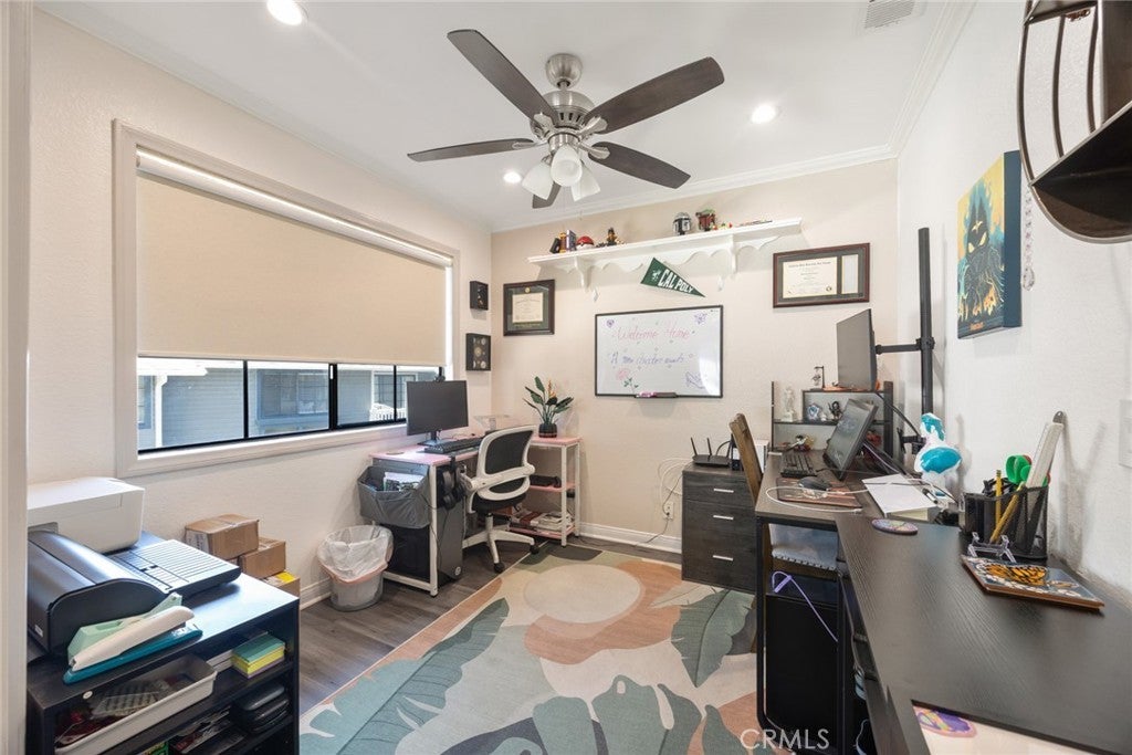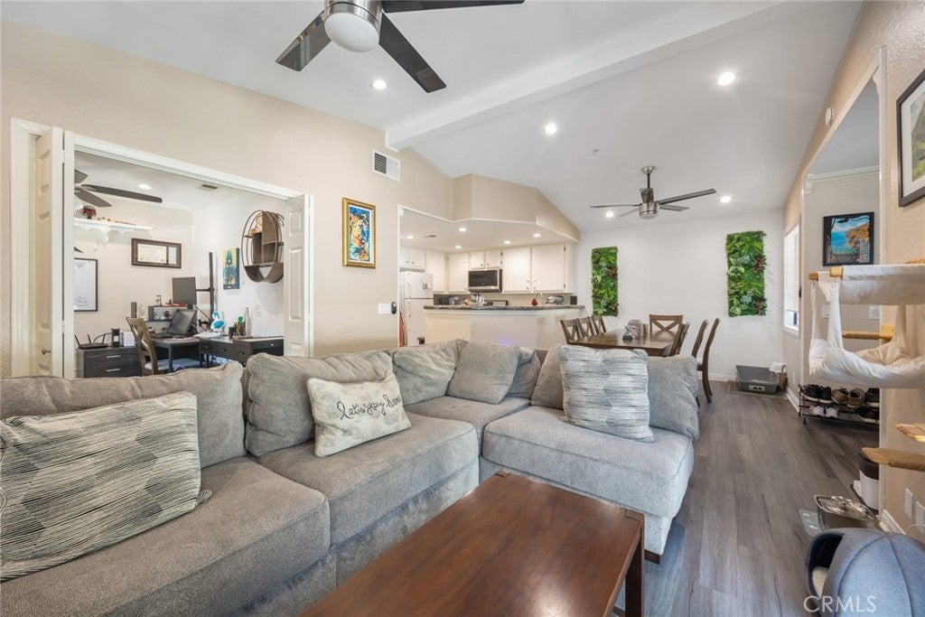 Home is where comfort meets connection—and you’ll instantly feel that at 1760 Shady Oaks Court, nestled in the desirable Crystal Canyon Community of Azusa. This beautifully maintained upper-level residence delivers an ideal combination of seclusion and natural light. Step through the door and you’re welcomed by dramatic vaulted ceilings, expansive windows, stylish ceiling fans, recessed lighting, durable vinyl flooring, and a spacious, open-concept design that feels instantly inviting. The sunlit, updated kitchen strikes a timeless balance with crisp white cabinetry and rich granite countertops, seamlessly flowing into the dining and living areas—perfect for both entertaining and everyday living. Just beyond, a private patio shaded by mature trees invites you to dine al fresco, host friends, or simply enjoy a peaceful moment outdoors. The thoughtful floor plan includes a convenient half-bath for guests, indoor laundry, and a flexible den that easily transforms into a second bedroom, home office, or creative studio. The generous primary suite offers room to unwind, ample closet storage, and a private bathroom complete with a full tub/shower and extended vanity. Residents of Crystal Canyon enjoy access to resort-style amenities including a sparkling pool, relaxing spa, and tennis court—all set against the scenic foothills and located just minutes from the heart of Azusa. This isn’t just a condo—it’s the beginning of something special. Discover everything 1760 Shady Oaks Court has in store for you!