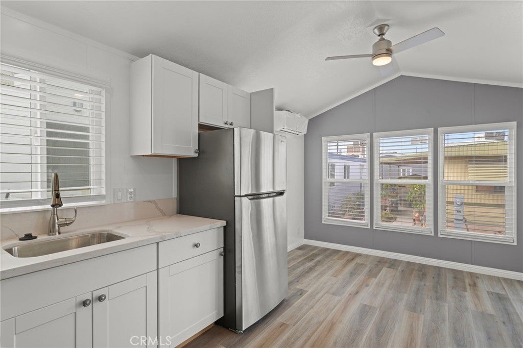 Completely Renovated & Move-In Ready! This beautifully updated 1 bedroom, 1 bathroom home feels brand new from the floors up. Featuring stylish white shaker cabinets, sleek Corian countertops, and a deep single-basin sink with a high-arc faucet. All kitchen appliances are included. Enjoy the convenience of an in-unit washer and dryer. Comfort is covered year-round with a modern mini-split heating and cooling system. Step outside to a cozy covered patio—perfect for relaxing or entertaining. Ideally located near major freeways, shopping centers, and entertainment venues. Community amenities include a sparkling pool and well-maintained grounds. A must-see!
