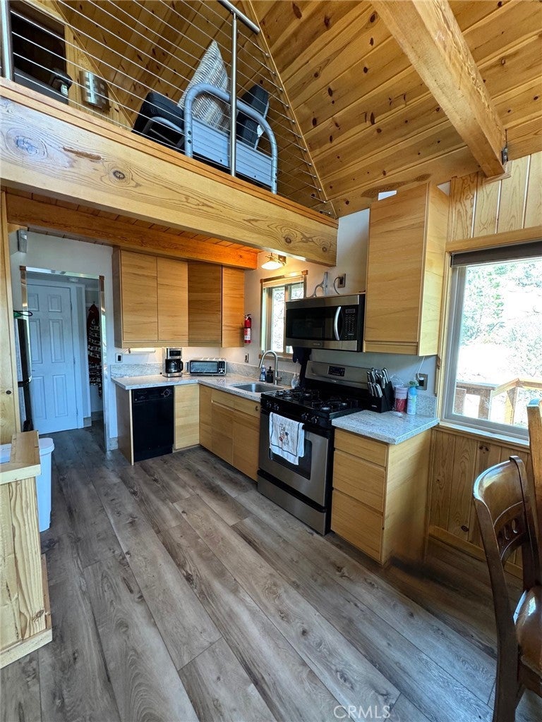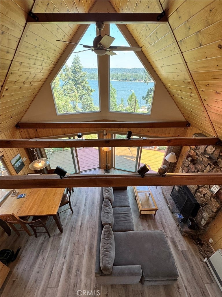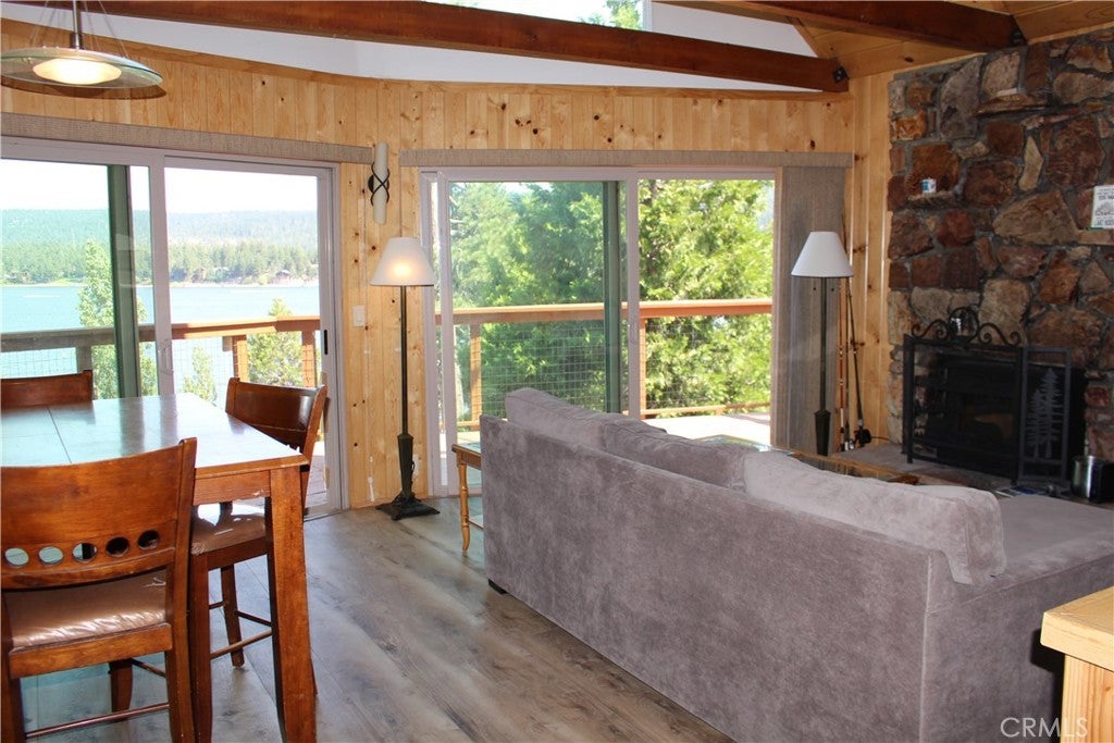 PRICING UPDATE!! Views for Days – And a Dock Rights, Too! Love a good view? You’re going to fall hard for this place! With jaw-dropping 180° views of Big Bear Lake and the National Forest, this updated A-Frame cabin is right across the street from the lake — and yes, it comes with dock rights! Kick back on the huge wrap-around deck and soak up the sun or watch the boats go by. Inside, you’ll find a remodeled kitchen and dining area, a cozy stone fireplace in the living room, and two comfy bedrooms, including an upstairs master suite with a gorgeous private bathroom and loft space. Need extra space? Downstairs has a game room, hangout spot, or third sleeping area — complete with a second fireplace and half-bath. There’s even a workshop and extra storage out back. .
