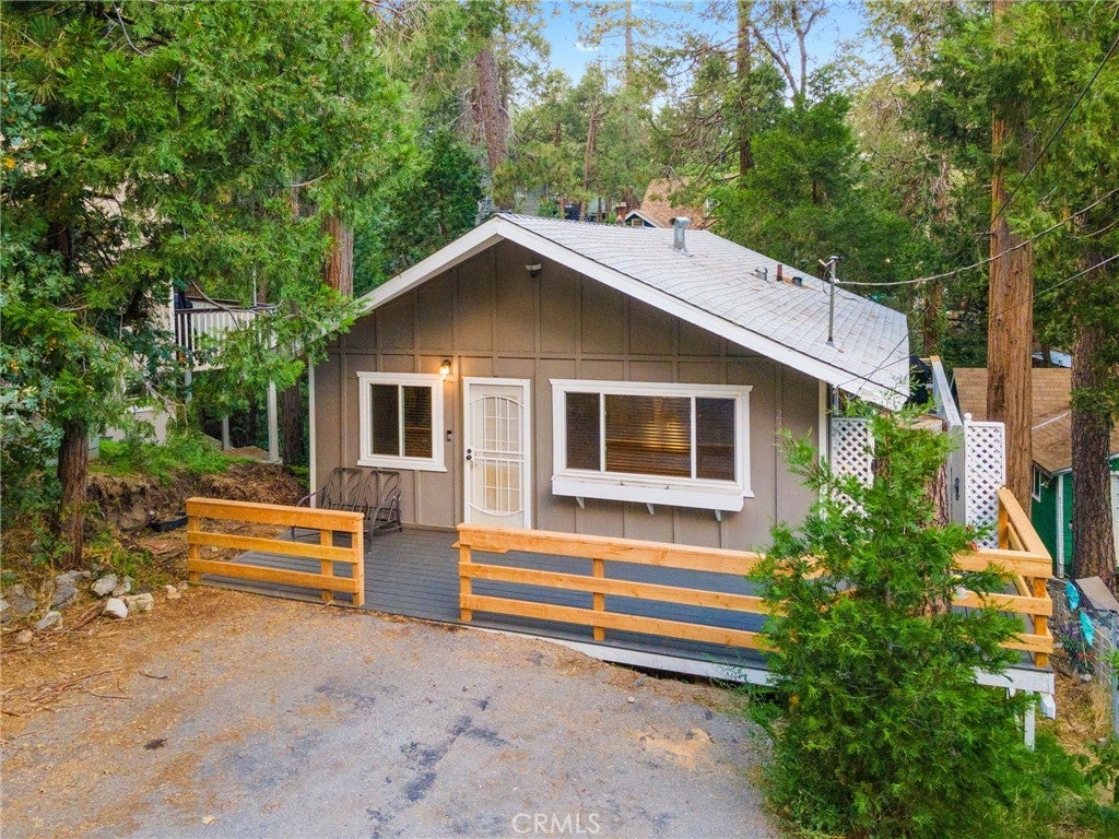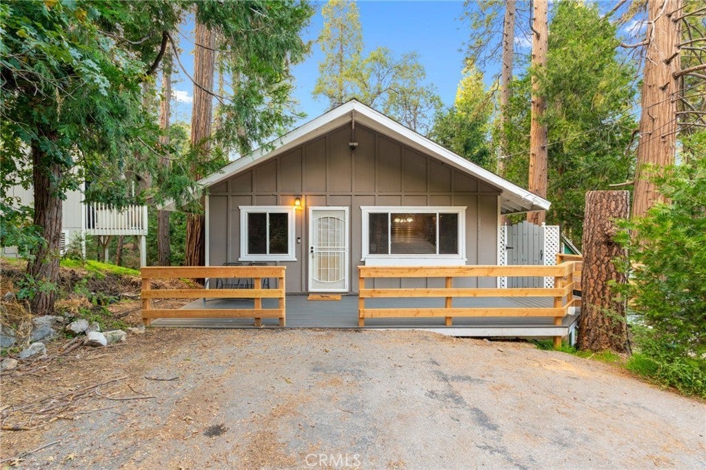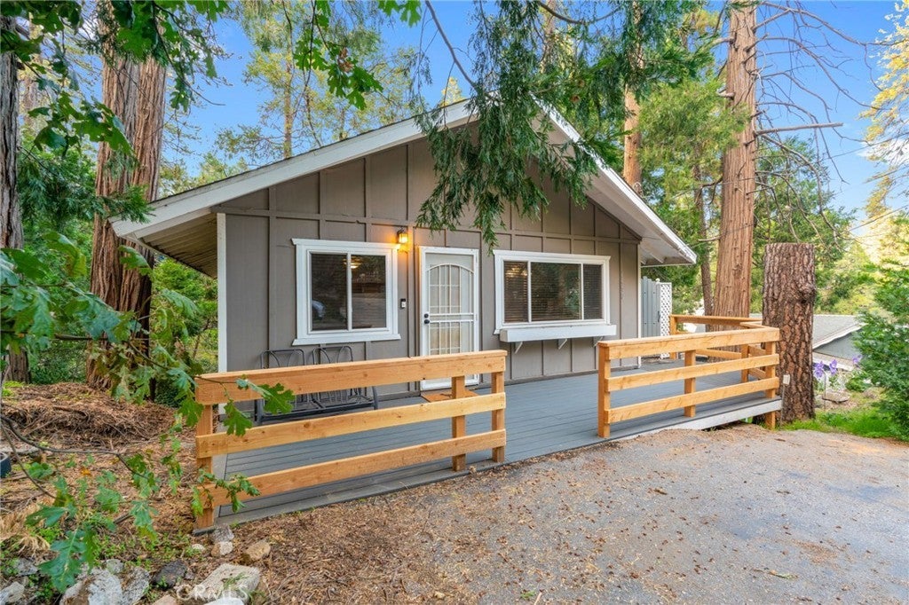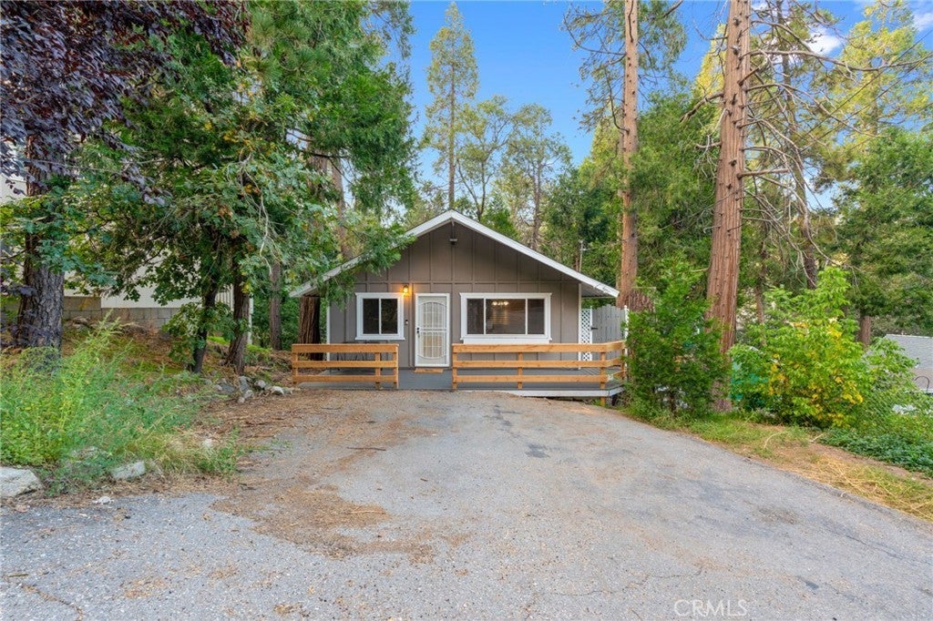 Exquisite single-family residence, blending the allure of a cabin with modern renovations! This home boasts 3 bedrooms (one on the main level and two on the lower level), along with a fully renovated bathroom on the main floor. The open layout showcases hardwood flooring and a cozy wood- burning fireplace. The interior has a fresh coat of paint, and the exterior displays all-wood finishing. The kitchen gleams with brand new cabinets, granite countertops, and state-of-the-art stainless steel appliances. This gem is a must-visit, perfectly situated close to a lake. Additional features include: Brand new water heater, Double-glazed windows from Anlin, complete with a transferable warranty, freshly installed deck featuring Trex waterproof decking. Enjoy a short stroll to the lake or neighboring stores. Relish the breathtaking views of the mountains and the stream. This home won't let you down!