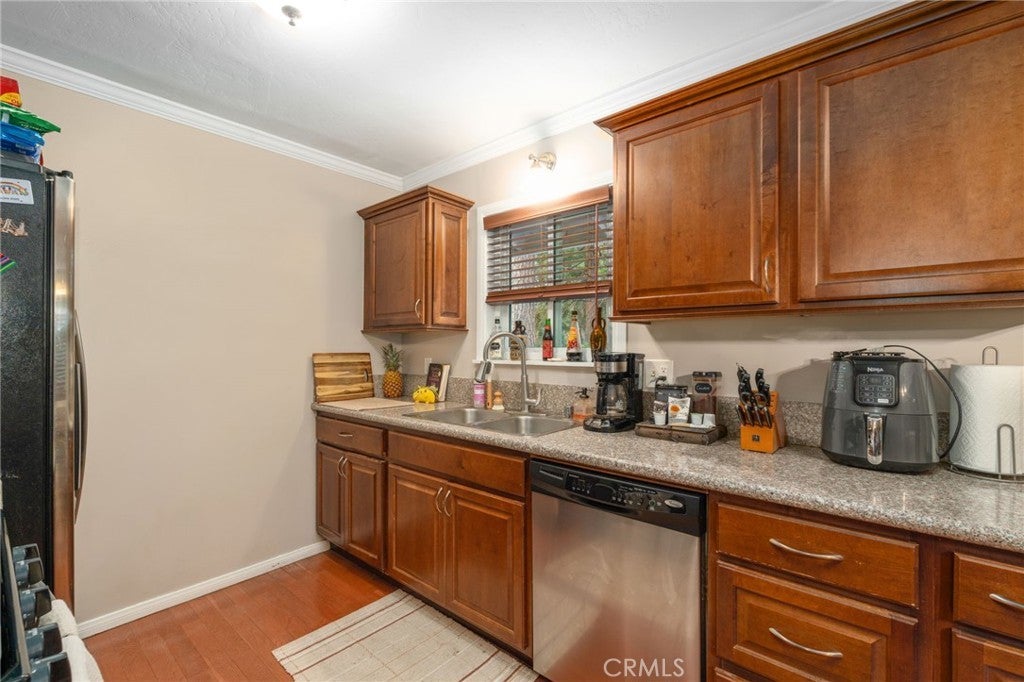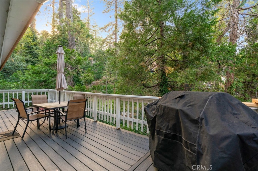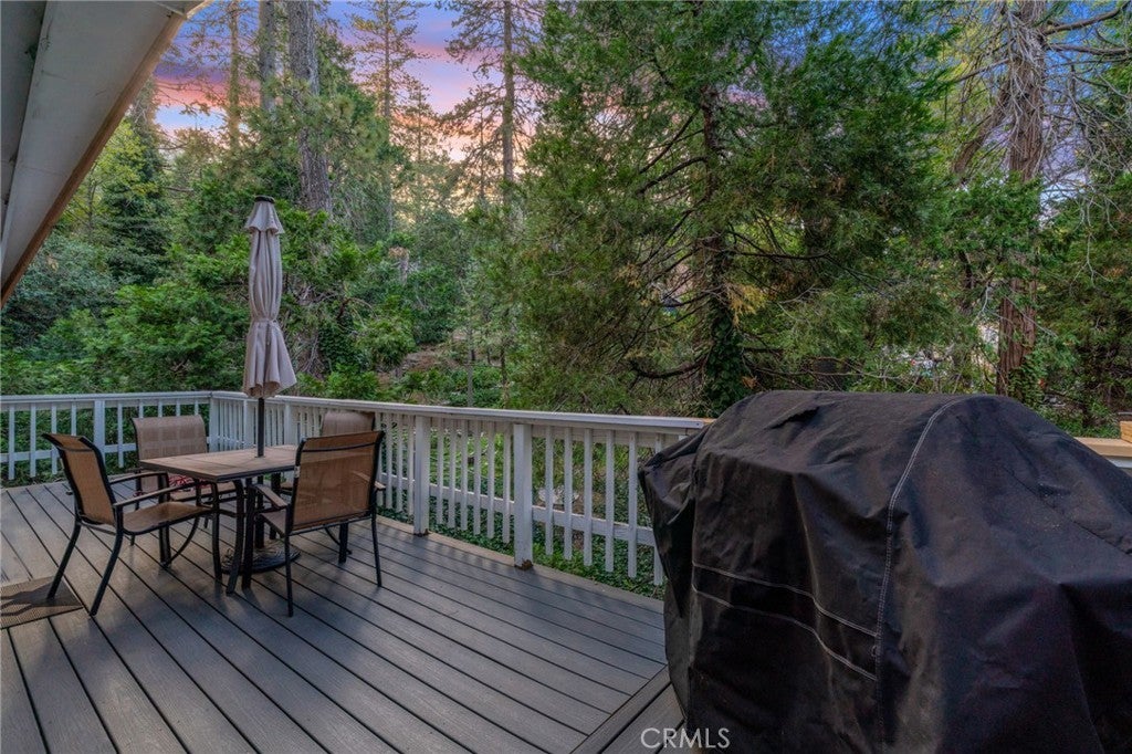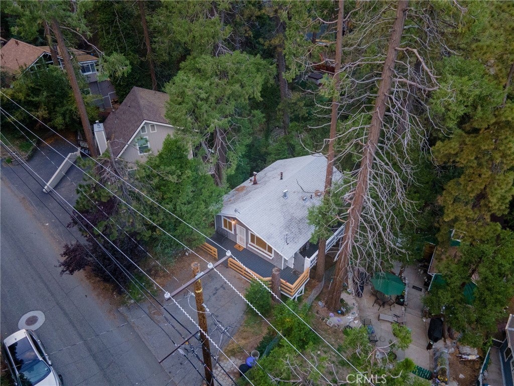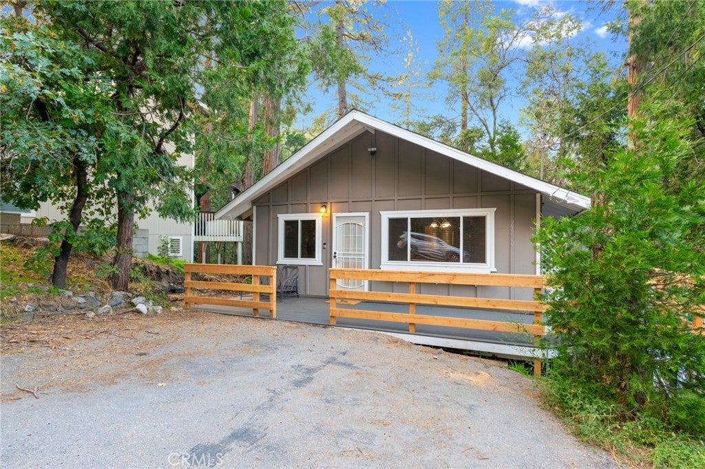 Exquisite single-family residence, blending the allure of a cabin with modern renovations! This home boasts 3 bedrooms (one on the main level and two on the lower level), along with a fully renovated bathroom on the main floor. The open layout showcases hardwood flooring and a cozy wood- burning fireplace. The interior has a fresh coat of paint, and the exterior displays all-wood finishing. The kitchen gleams with brand new cabinets, granite countertops, and state-of-the-art stainless steel appliances. This gem is a must-visit, perfectly situated close to a lake. Additional features include: Brand new water heater, Double-glazed windows from Anlin, complete with a transferable warranty, freshly installed deck featuring Trex waterproof decking. Enjoy a short stroll to the lake or neighboring stores. Relish the breathtaking views of the mountains and the stream. This home won't let you down!