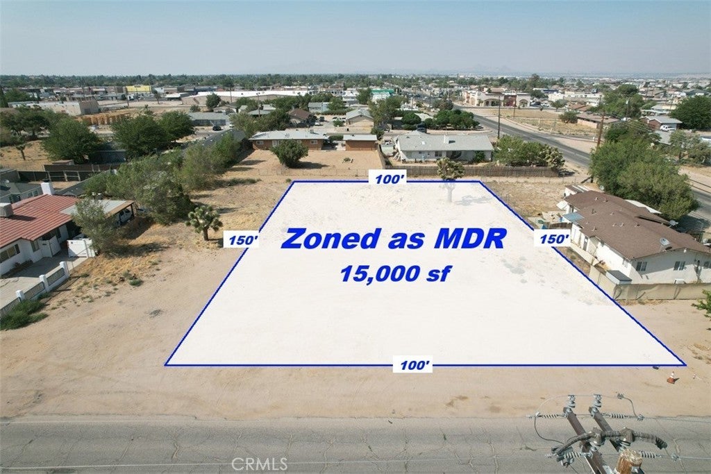 Prime Residential Lot Opportunity! 15,000sf flat property, zoned MDR - (Medium Density Residential) per owner, you can be approved to build up to 4 units in this lot, opportunity awaits. Amenities: public Access paved road, Ideally located near the 15 Freeway and surrounded by highly-rated schools, popular restaurants, shopping, and community amenities surrounded by other homes, utilities adjacent to site, (electricity, gas & water), sewer line is about 100+/-ft from lot, or septic will be permitted if preferred, as per seller investigations, Lines demarcating boundaries are approximate, not surveyed, buyer and buyer’s agent are highly recommended to verify exact boundary lines and all aspects of the property: buildability, local utility companies, zoning and land usage with the city of Hesperia, Planning and Building Department.
