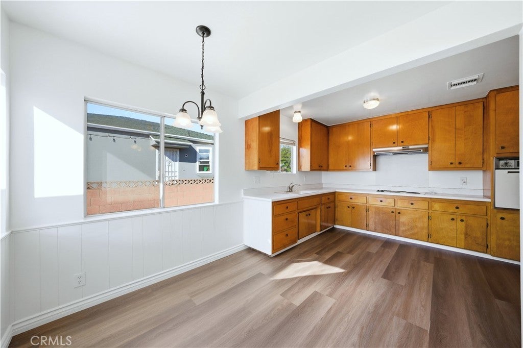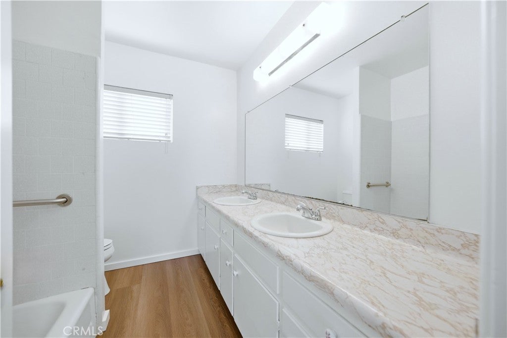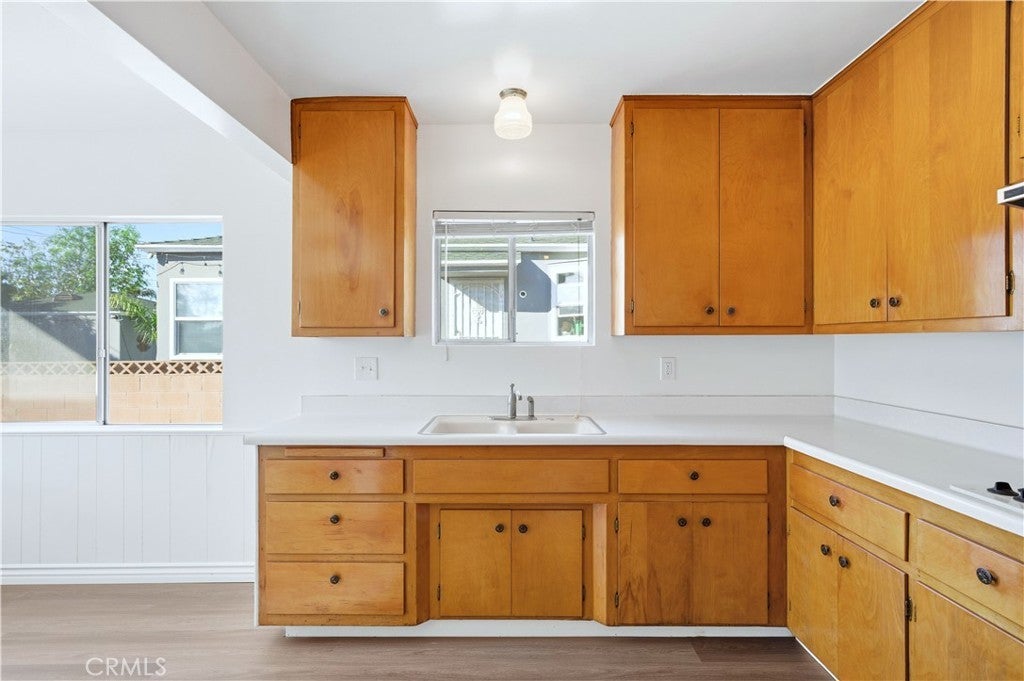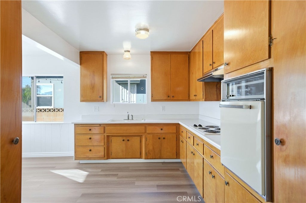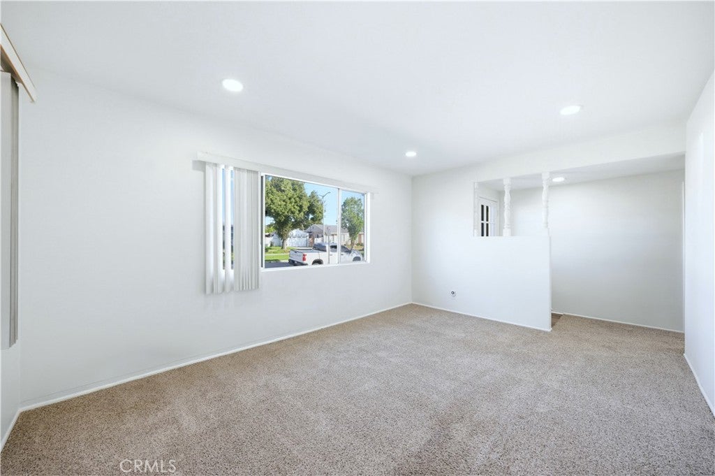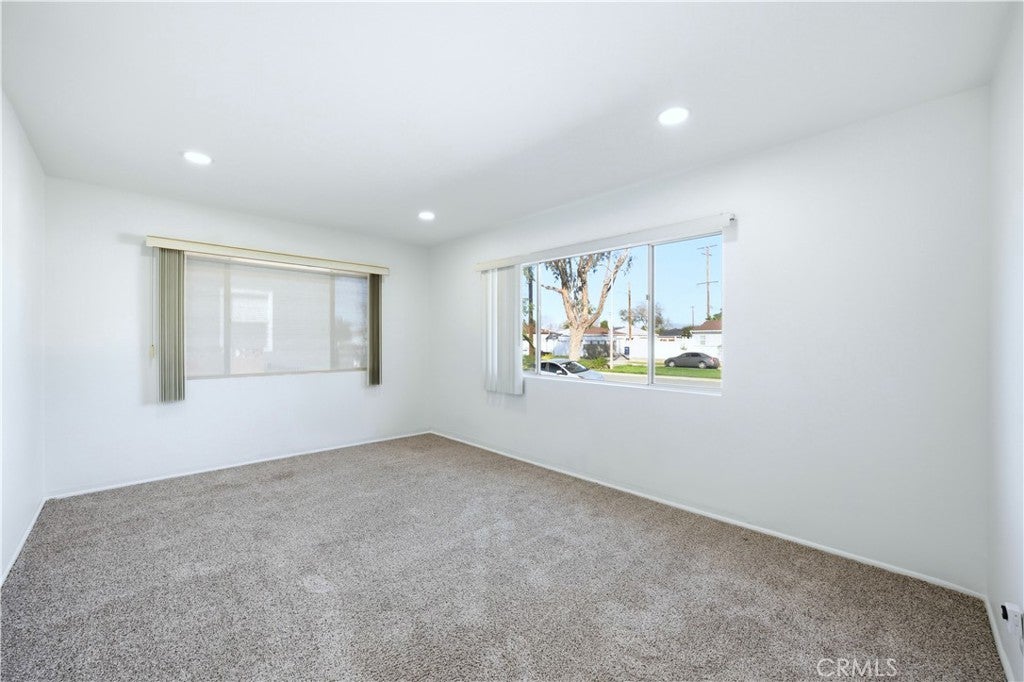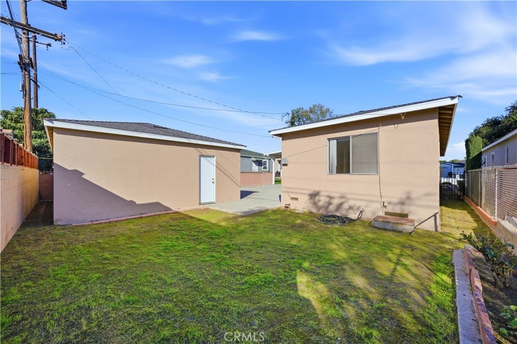 This single-story 3-bedroom, 2-bath home offers 1,349 sq ft of living space on a 5,002 sq ft lot with a detached 2-car garage and long driveway. Recent updates include fresh interior and exterior paint, recessed lighting in the hallway, new luxury flooring in the kitchen, dining area, laundry room, and bathrooms, and a newer roof. The interior features a functional floor plan with a living room accented by recessed lighting and natural light from multiple windows. The kitchen includes an eating area, wood cabinetry, electric cooktop, and direct access to the backyard. The primary bedroom includes mirrored closet doors and a private three-quarter bathroom with walk-in shower. Two additional bedrooms are served by a full hall bathroom with dual-sink vanity and tub/shower combination. An individual laundry room with built-in shelving adds convenience. Additional features include central air conditioning, neutral interior finishes, a mix of carpet and hard-surface flooring, and multiple windows throughout. The backyard offers a concrete patio area, lawn space, and block wall fencing, providing separation from neighboring properties. The detached garage is positioned at the rear of the lot. Conveniently located near major surface streets, parks, dining, and shopping, with access to surrounding areas of Montebello and nearby communities.