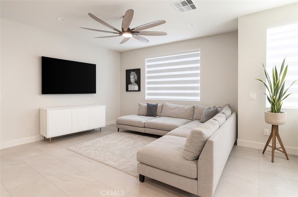 Stylish Modern Farmhouse Townhome in Ontario! Beautifully designed with a stylish farmhouse exterior, this 2022 Shea Homes townhome offers an inviting open-concept floor plan perfect for modern living. The main level features luxurious tile flooring throughout the living, dining, and kitchen areas, creating an elegant and seamless entertaining space and custom window coverings throughout. A gourmet kitchen with quartz countertops, crisp white cabinetry, and stainless-steel appliances is ideal for gathering with family and friends. Upgraded carpet enhances the stairs, upper hallway, and bedrooms. The spacious primary suite boasts soaring ceilings, recessed lighting, a ceiling fan, and an oversized walk-in closet. Its spa-like ensuite includes a dual vanity, a beautifully tiled walk-in shower, and a private water closet. Two additional bedrooms, a hall bath with dual sinks and a separate wet area, plus a convenient upstairs laundry room complete the second level. This home also includes: MyCommand smart home technology for seamless living, a two-car direct access garage with an insulated roll-up door and EV charger, adding comfort and convenience. Paid-off solar panels and a tankless water heater maximize energy efficiency, while a low-maintenance front patio provides the perfect spot to relax outdoors. The community itself is thoughtfully designed with private amenities to enrich the Southern California lifestyle. Enjoy a sparkling pool, spa, splash pad, fire pit, BBQ and picnic areas, and a tot lot for little ones. Ideally located near excellent shopping, dining, recreation, and healthcare in Ontario, with the added convenience of Irvine’s metropolitan amenities just a short drive away.