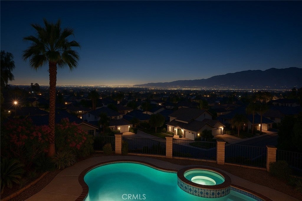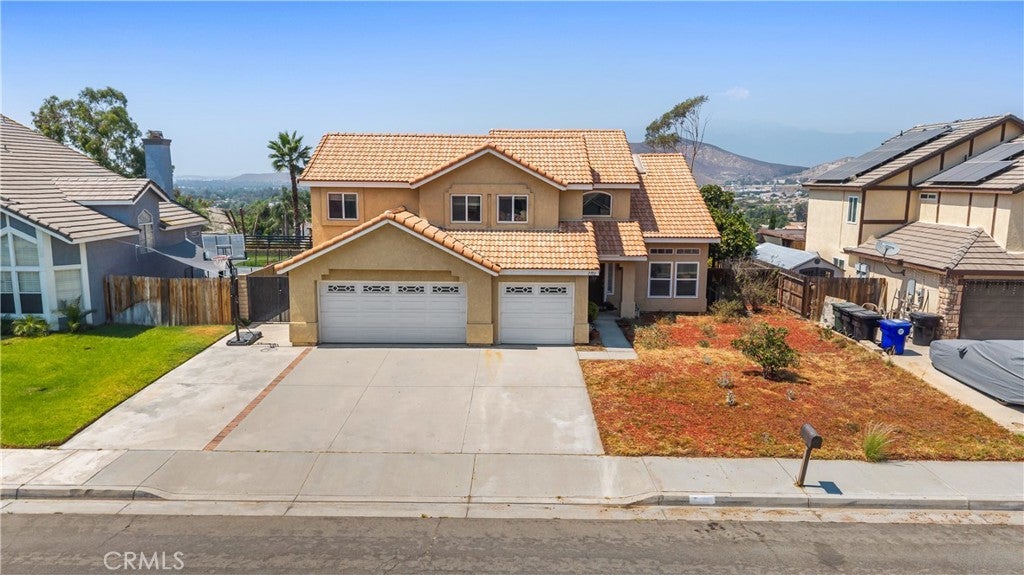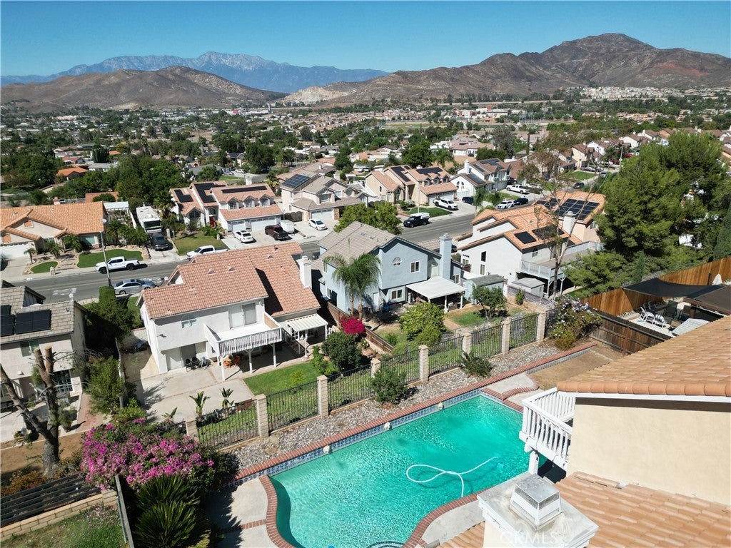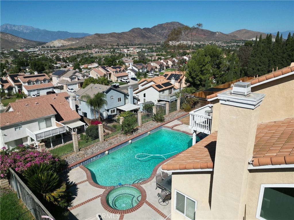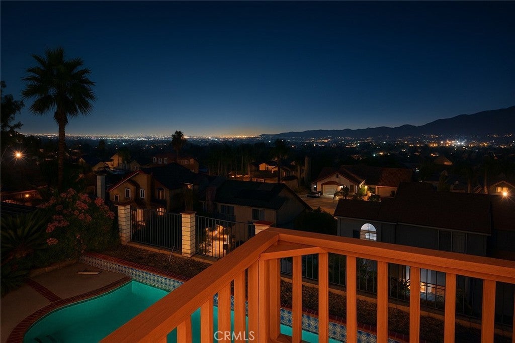 Stunning City, Mountain & Night Light Views – Heated Pool & Spa – Impeccably Maintained Introducing 7701 Longs Peak Drive, a meticulously cared-for two-story home in Jurupa Valley that perfectly blends style, comfort, and breathtaking scenery. From the moment you arrive, its exceptional upkeep and inviting curb appeal set the tone. Inside, soaring ceilings and abundant natural light create an open, welcoming atmosphere. The layout features elegant formal living and dining areas, a cozy family room with a brick fireplace, and a chef’s kitchen with granite countertops, rich cabinetry, and quality finishes. The upstairs primary suite offers a private balcony showcasing sweeping views of the city, surrounding mountains, and twinkling evening lights. The spa-like ensuite includes dual sinks, a soaking tub, and a separate glass shower for ultimate relaxation. The backyard is designed for both entertainment and tranquility, complete with lush landscaping, a heated pool, a soothing spa, and multiple spots to enjoy the panoramic vistas. Additional features include an indoor laundry room, a three-car garage, and a convenient location near shopping, dining, and freeway access. This is a rare opportunity to own a home with unmatched views, premium amenities, and undeniable pride of ownership.