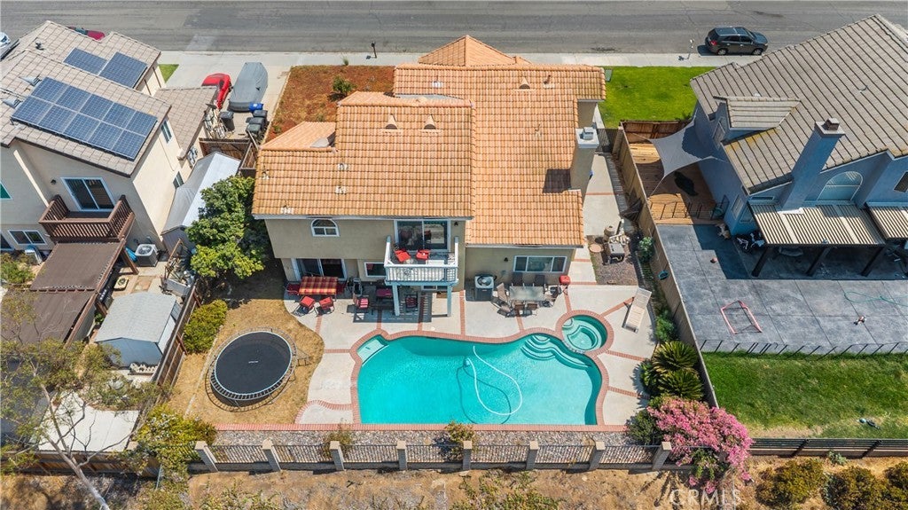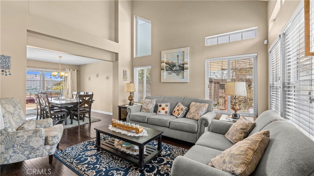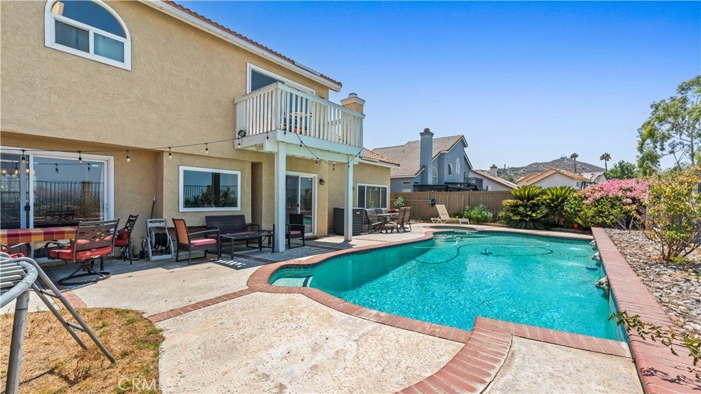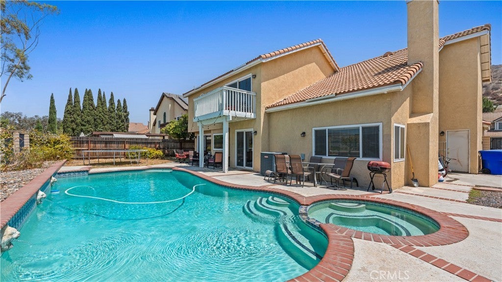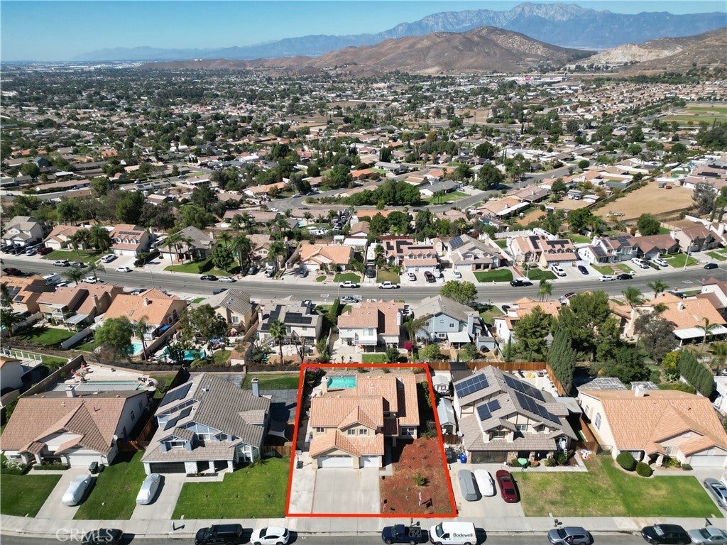 Stunning City, Mountain & Night Light Views – Heated Pool & Spa – Impeccably Maintained Introducing 7701 Longs Peak Drive, a meticulously cared-for two-story home in Jurupa Valley that perfectly blends style, comfort, and breathtaking scenery. From the moment you arrive, its exceptional upkeep and inviting curb appeal set the tone. Inside, soaring ceilings and abundant natural light create an open, welcoming atmosphere. The layout features elegant formal living and dining areas, a cozy family room with a brick fireplace, and a chef’s kitchen with granite countertops, rich cabinetry, and quality finishes. The upstairs primary suite offers a private balcony showcasing sweeping views of the city, surrounding mountains, and twinkling evening lights. The spa-like ensuite includes dual sinks, a soaking tub, and a separate glass shower for ultimate relaxation. The backyard is designed for both entertainment and tranquility, complete with lush landscaping, a heated pool, a soothing spa, and multiple spots to enjoy the panoramic vistas. Additional features include an indoor laundry room, a three-car garage, and a convenient location near shopping, dining, and freeway access. This is a rare opportunity to own a home with unmatched views, premium amenities, and undeniable pride of ownership.