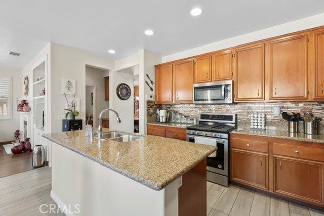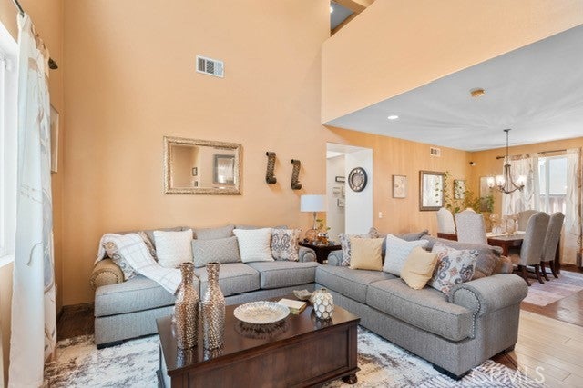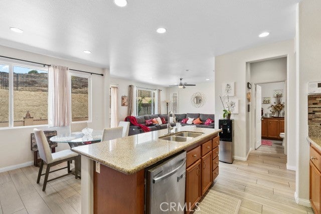 Honey, stop the car! This stunning 2,432 square foot home in Beaumont's desirable Fairway Canyon community is exactly what you've been searching for. Built in 2008 and meticulously maintained, this 4-bedroom, 2.5-bathroom gem features fresh exterior paint and updated interior finishes throughout. Step inside to welcome home comfort with a spacious living room featuring soaring vaulted ceilings - perfect for family gatherings and entertainment. The thoughtful layout includes a separate formal dining room complete with elegant chandelier, and laminate wood flooring, creating the ideal space for special occasions. The heart of this home is the chef's dream kitchen, showcasing beautiful granite countertops, sleek glass backsplash, and a convenient center island. You'll love the abundant cabinet storage and includes stainless steel appliances, while the adjoining breakfast nook provides a cozy spot for casual dining and the adjacent family room with fireplace offers the perfect place to unwind. Comfort and convenience define the main level with updated flooring and a convenient half-bath featuring upgraded fixtures and linen storage. An attractive laminate wood staircase leads to the second floor, where you'll find an open overlook that provides lovely views of the living spaces below. All four bedrooms are generously sized with fresh paint and upgraded plantation shutters and ceiling fans throughout. The secondary bathroom serves bedrooms one and two, while a long hallway leads to bedroom three and the magnificent master suite. The oversized master bedroom is a true sanctuary, featuring a spacious walk-in closet and luxurious en-suite bathroom. Upstairs laundry room. Enjoy outdoor living and an exceptional location as you relax on the backyard patio while taking in peaceful mountain views. The 2-car garage with direct access adds convenience to daily life. Located in the sought-after Fairway Canyon community with easy access to I-10 freeway and Cherry Valley, you'll enjoy close proximity to parks, top-rated schools, and shopping. This is California living at its finest! Seller is motivated - don't let this opportunity pass you by!