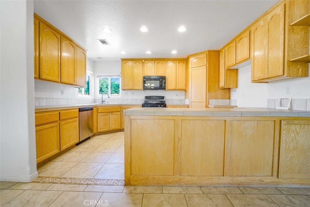 Ceiling Fan(s), Pantry, Recessed Lighting, Tile Counters, All Bedrooms Down