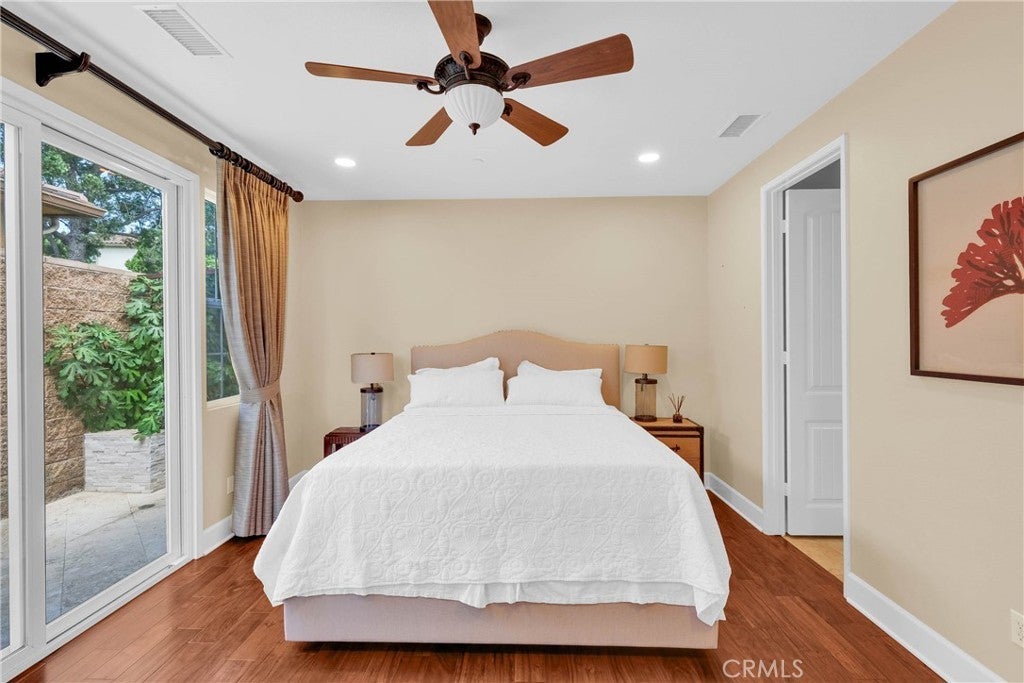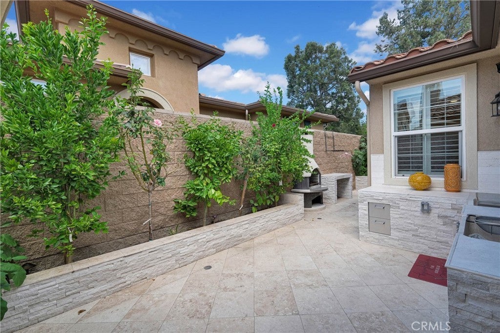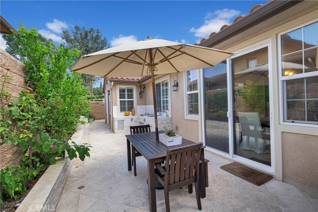 Immaculate Single-Story Home in Prestigious Villagio Community. Welcome to this beautifully maintained, private, single-story town home located in the heart of Yorba Linda’s sought-after Villagio community. Surrounded by top-rated schools and miles of scenic horse and walking trails, this 1,714 sq. ft. residence combines elegance, comfort, and convenience. Step inside to soaring ceilings, crown molding, and gorgeous hardwood flooring throughout. The versatile floorplan offers 3 bedrooms (one currently used as a den/office without a closet) and 2 bathrooms. The chef’s kitchen is a showstopper, featuring granite countertops with full backsplash, center island with bar seating, tremendous cabinet space, and premium stainless-steel appliances—including Samsung refrigerator, double ovens, gas cooktop, microwave, and dishwasher. Entertain with ease in the formal living room with fireplace, adjoining dining area, and optional den/office that could easily serve as a third bedroom. The primary suite offers a walk-in closet, private sliding glass door to the backyard, and a spa-like bathroom with dual vanities, soaking tub, and separate shower. Additional highlights include a convenient inside laundry room with sink and cabinetry, a newly upgrades include: AC system, Engineered hardwood flooring throughout, wolfer stove and range hood, along with California Faucets fixtures in the kitchen and bathrooms including shower heads, Custom rolling pull-out kitchen cabinet drawers, Custom closet organizer in each bathroom, water softener and more. Enjoy the functionality of two single-car garages, both upgraded with epoxy flooring—one with direct home access and the other with a private door to the backyard. The outdoor living space is newly custom built for both entertaining and everyday relaxation, featuring a custom outdoor kitchen with sink, prep counter, stainless-steel storage and fireplace. Stone accents, tiled flooring, raised planters with fruit trees, and a spacious dining area with umbrella create a seamless extension of the home. Community HOA dues include use of the sparkling pool and spa, plus exterior home maintenance—including roof, paint, and termite coverage. With no Mello-Roos and award-winning Placentia-Yorba Linda schools (Mabel Paine Elementary, Yorba Linda Middle, and walking distance to Yorba Linda High), this home truly has it all.