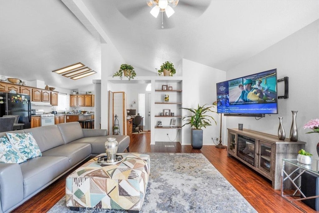 Welcome to Your Dream Home in this Beautifully upgraded land lease home, in a Guard-Gated Family Community! Step into this beautifully remodeled 2-bedroom, 2-bathroom contemporary home; offering 1,752 square feet of light, open living space designed for comfort and style. Built in 1993 and thoughtfully updated, this home boasts a spacious, airy floor plan filled with natural light and modern touches throughout. The heart of the home is the stylish kitchen, complete with a central island—perfect for meal prep, casual dining, or gathering with loved ones. The inviting dining and living areas flow seamlessly for entertaining or relaxing, while the dedicated laundry room adds everyday convenience. The oversized primary suite is a true retreat, opening directly to the beautifully landscaped backyard. Enjoy a spa-like experience in the deep sunken tub, where you can unwind while gazing out the window at your private outdoor oasis. Nestled within a guard-gated, family-friendly community, this home offers access to resort-style amenities including a community center ideal for gatherings, a sparkling pool, and basketball courts—perfect for active, social living. With its modern updates, spacious layout, and vibrant neighborhood offerings, this home is more than just a place to live—it’s a place to thrive.