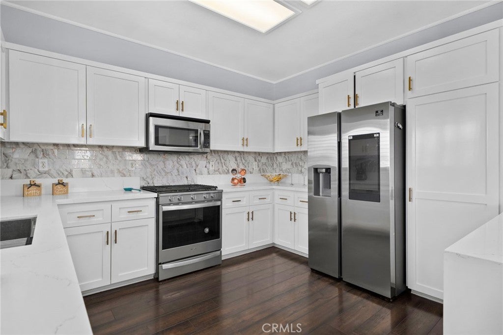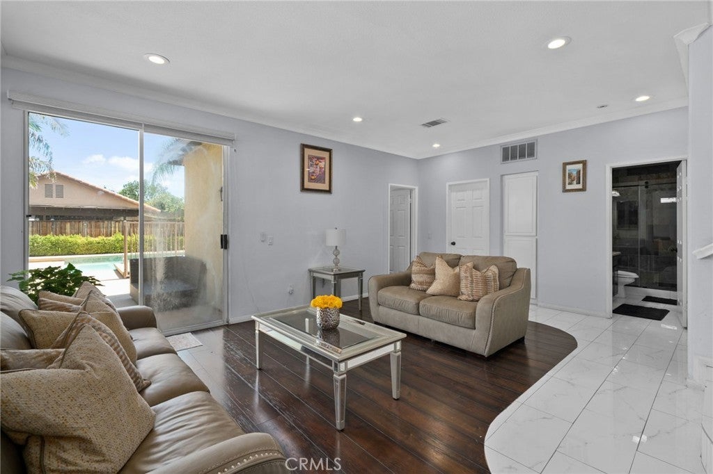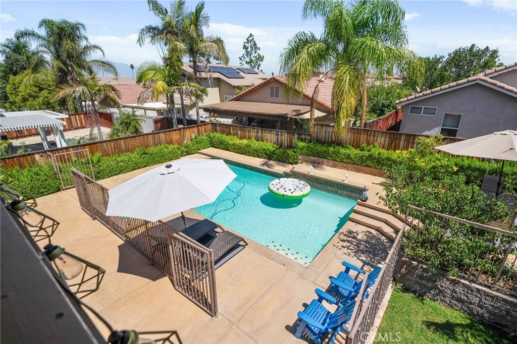 Incredible Tri-Level Pool Home in the Prestigious Westport Community! Welcome to this beautifully maintained 3-level home in one of Corona’s most sought-after and safest neighborhoods - Westport. Featuring a private gated pool and spa, lush landscaping, and a spacious floor plan, this home is truly move-in ready! This incredible tri-level home offers immaculate attention to detail across all levels. The main entrance is located on the second level, where you'll find a full bedroom on the right and access to both the upper and lower levels. Heading upstairs to the third level, you'll discover the spacious master suite featuring a large walk-in closet and a beautifully updated bathroom. The third floor also boasts a newly remodeled kitchen with quartz countertops, modern cabinetry, and an open-concept layout that flows seamlessly into the family room. A guest half-bath, cozy breakfast nook/dining area, and a walk-out balcony overlooking the pool and lush backyard complete this floor. The first level includes a 3-car tandem garage with direct access into the home. From the garage, step into a welcoming living room with glossy ceramic tile flooring, and a sliding glass door that opens to a beautifully landscaped backyard—perfect for entertaining. Enjoy a private, gated pool and jacuzzi area, along with two generously sized bedrooms, a full bathroom, and a dedicated laundry room on this level. Enjoy California living at its finest with a beautifully landscaped backyard, perfect for entertaining, and a private gated pool and jacuzzi for ultimate privacy and relaxation. Don’t miss your chance to own this one-of-a-kind pool home — schedule your private tour today!