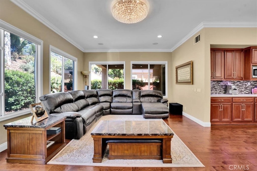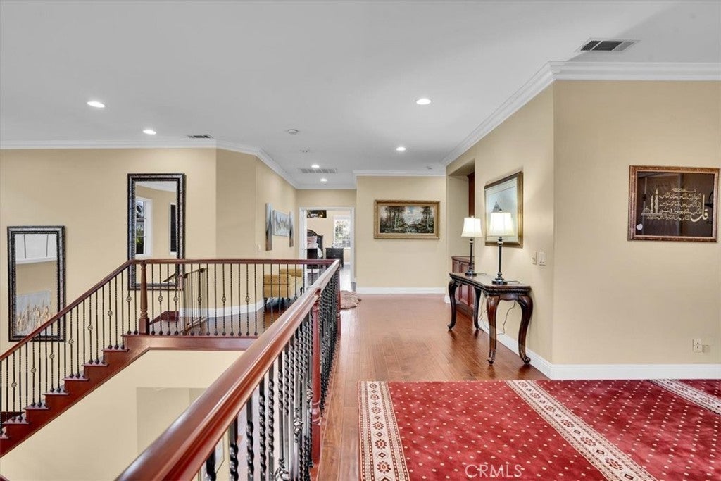 Introducing a fantastic well-maintained high end luxury home located within the exclusive gated community of The Terraces at Bixby Ridge in Signal hill. The beautiful home is meticulously designed to cater to executive living, featuring 4 bedrooms, each with its own full bathroom, including a downstairs bedroom and bathroom. The residence boasts a spacious formal living room and dining room, a family room, a large kitchen with a granite island, wine fridge, in-built speakers throughout the house, tinted front widows & partial primary bedroom windows and stainless-steel appliances, crown molding and wood flooring throughout the home and a three-car garage. Additional amenities include three fireplaces, a loft with a balcony, a covered patio, a high-end outdoor water fountain, and beautifully thought-out landscaped private, secluded backyard and surroundings. Upon entering, you are greeted by cathedral ceilings in the formal living room, complemented by hardwood floors throughout the downstairs area. The kitchen is equipped with granite countertops, stainless steel appliances, maple cabinets, and ample counter space, opening to a large family room with a fireplace. The downstairs bedroom is generously sized and situated across from a full bathroom. The covered back patio is surrounded by trees and fantastic landscaping, providing a serene resort-like outdoor space. The second-level features 3 bedrooms, each with its own bathroom, including a massive master/primary suite with a private balcony, an elegant fireplace, a large bathroom with a separate tub and glass shower, dual sinks, a dressing area, and an oversized custom walk-in closet. This small, gated community of 21 homes is private, quiet and close-knit, offering walking trails that surround Signal Hill parks and residential complexes. The home is conveniently situated just a few miles from the beach, fine dining, shopping centers, CSULB, Costco and freeways.