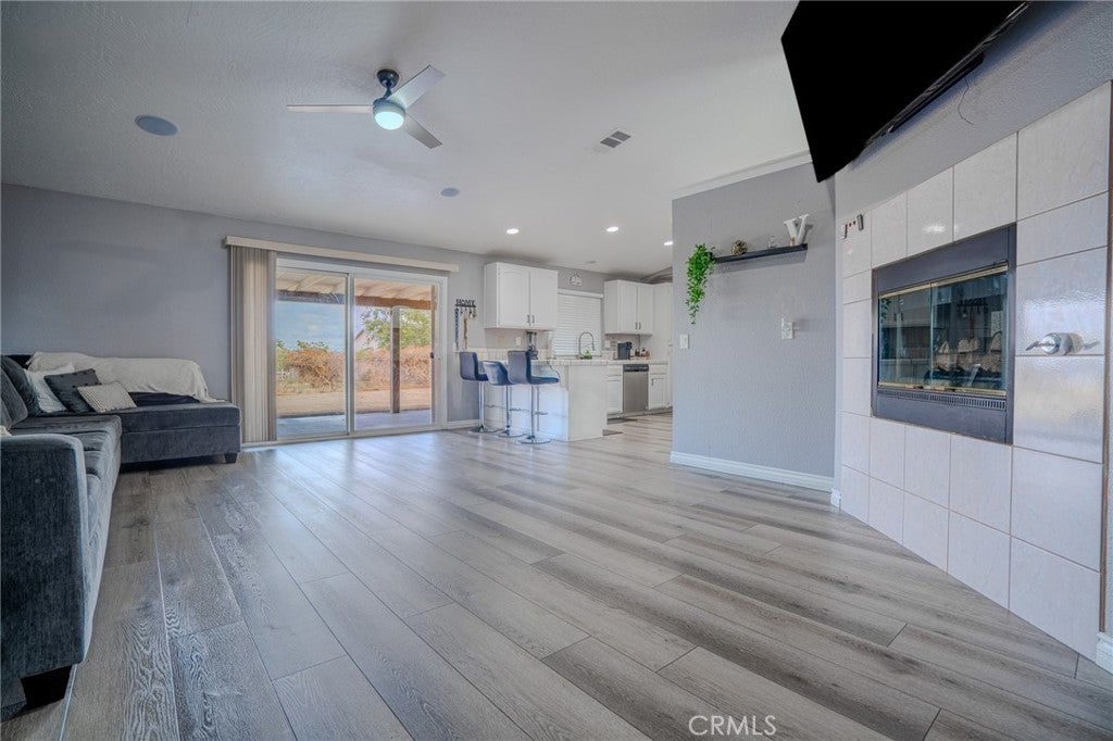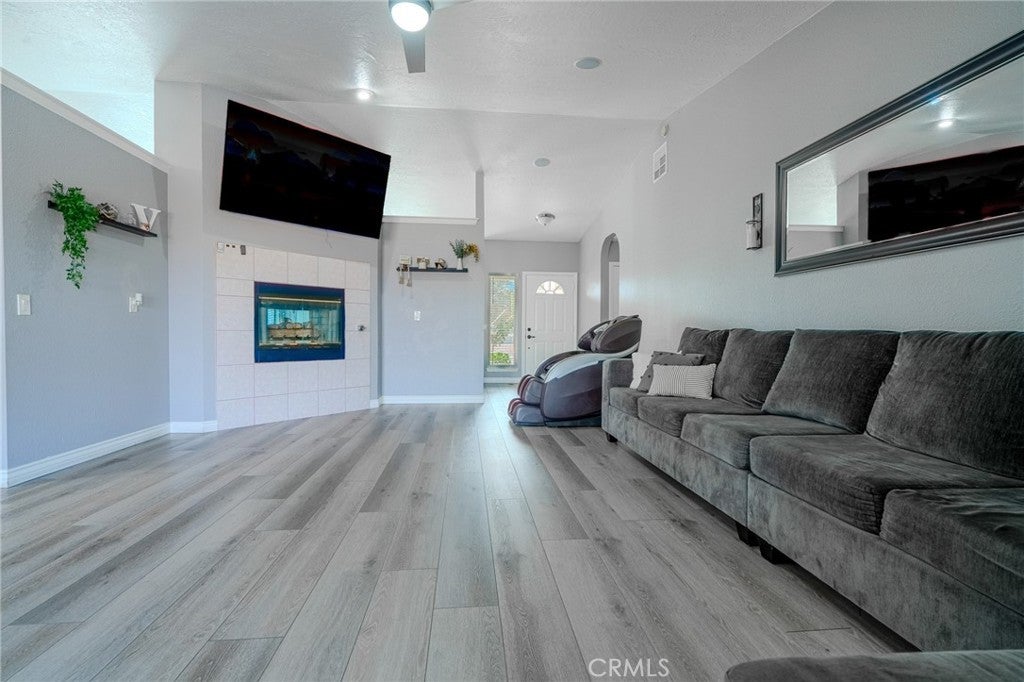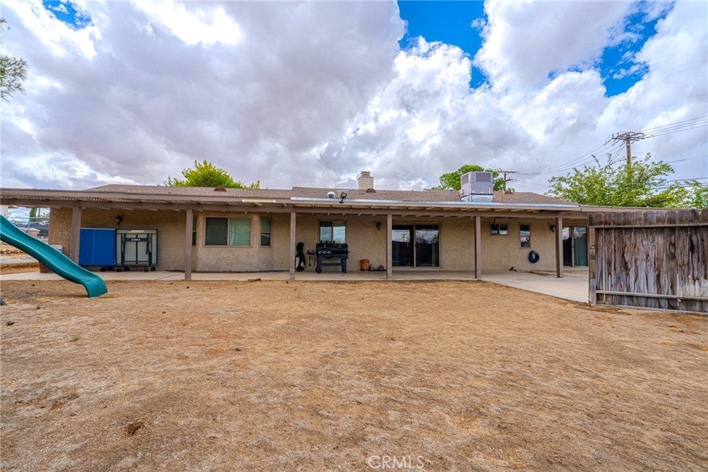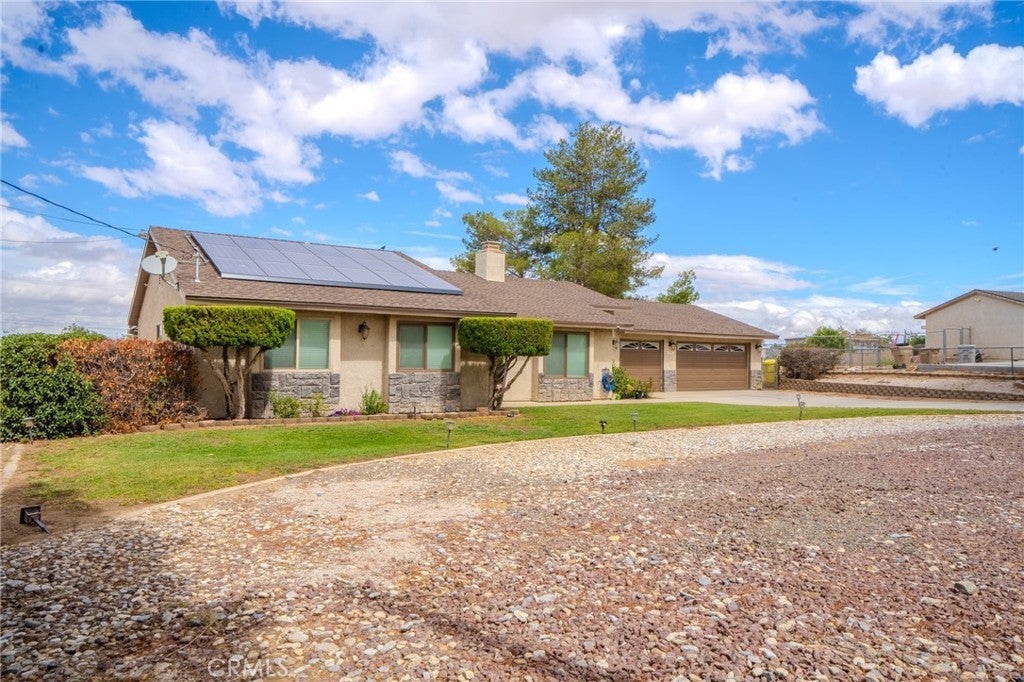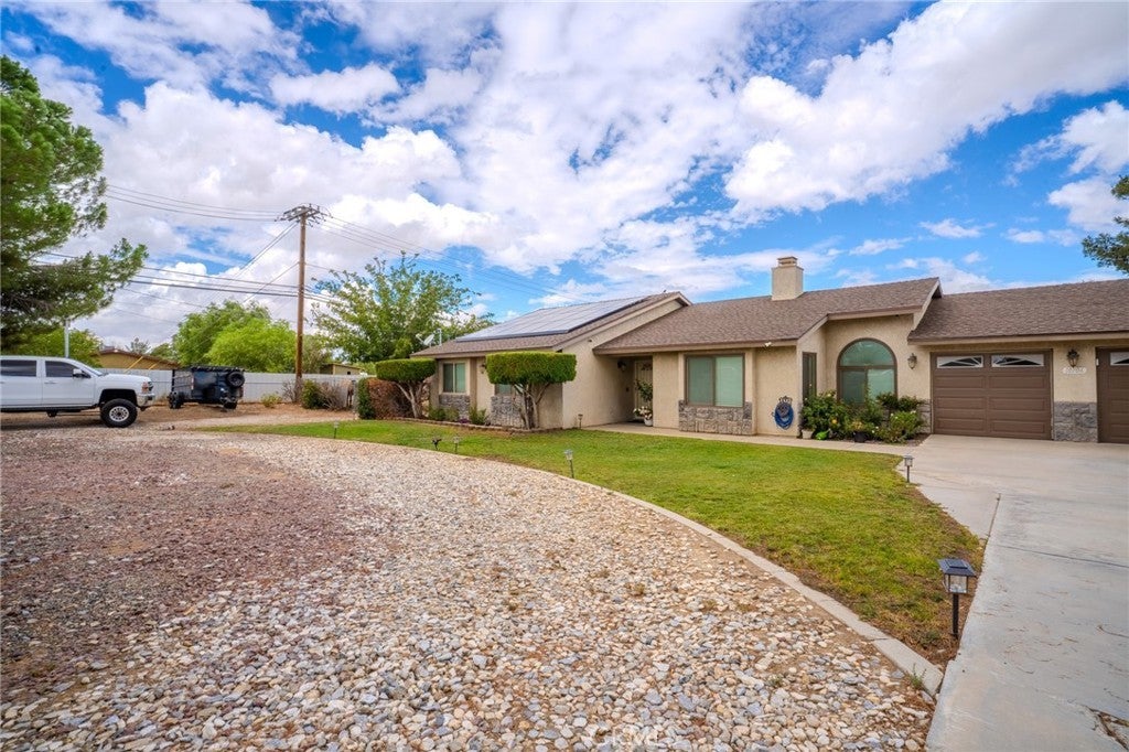 Welcome to this charming single-story home in Hesperia, set on a spacious .65 acre horse property lot. The property is fully fenced with wrought iron and block wall, surrounded by mature shade trees, lush landscaping, and features leased solar panels to help you save for years to come, all paired with a convenient 3-car garage. Step inside and you’ll immediately notice the tall ceilings and open layout. The home offers a large living room with a double-sided fireplace, a cozy family room, a formal dining area, and a spacious kitchen with tile counters, stainless steel dishwasher and stove, recessed lighting, and multiple skylights for natural brightness. There’s also a breakfast nook with bay windows, an indoor laundry room with storage, and a guest-friendly half bath. The bedrooms are generously sized, each with ceiling fans, while the primary suite boasts direct access through a sliding glass door to the huge covered patio, perfect for enjoying desert sunsets, morning coffee, or weekend BBQs. The backyard features plenty of room to entertain all year long. This home checks all the boxes and won’t last long in today’s market. Don’t wait, make it yours before it’s gone!
