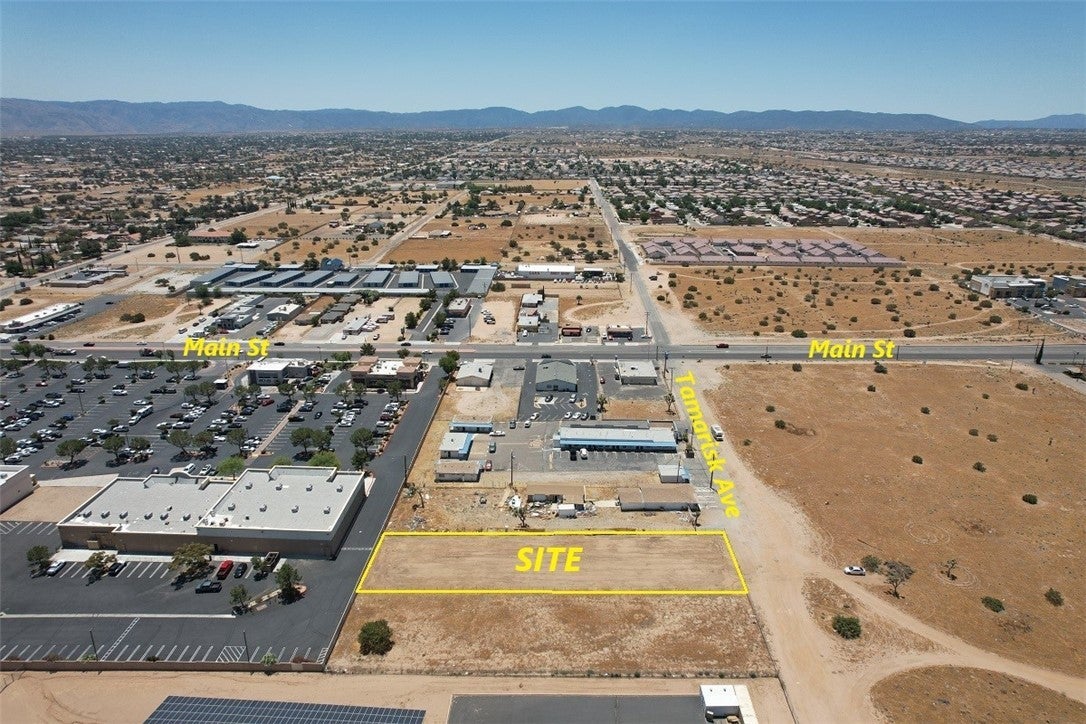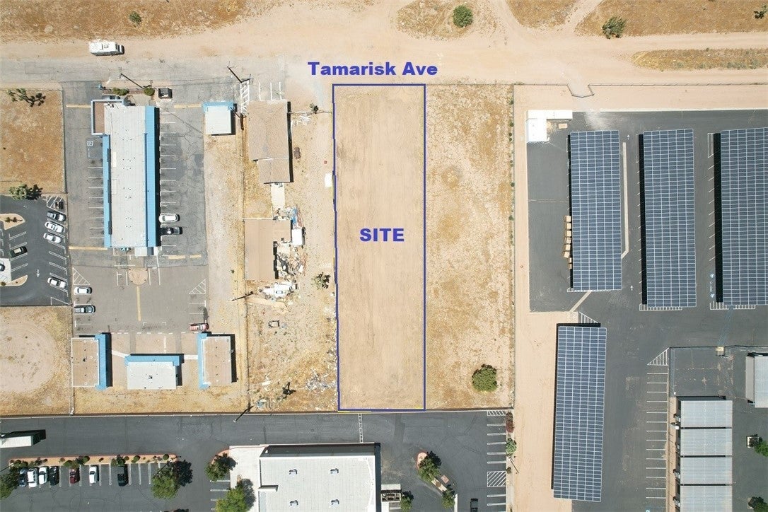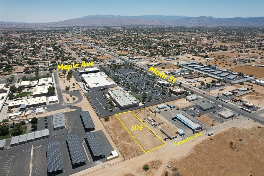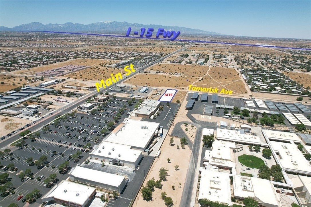 Great location!!! ready to build your retail or office building, zoned Neighborhood Commercial, Just off of Main St behind the Commercial Center by Main St and Maple Ave, completely fenced and level lot, water behind site, electricity on the street, sewer on Main Street and Desert Shadow Ln at corner with Tamarisk Ave. land location is behind of stater Bros Market. by Maple Ave and Main Ave and near of all mayor conveniences and the I -15 Fwy, don't miss this opportunity to own this well-located land, GOOGLE MAP CORDNATES ARE: 34.428278, -117.350444, BRING YOUR OFFER.
