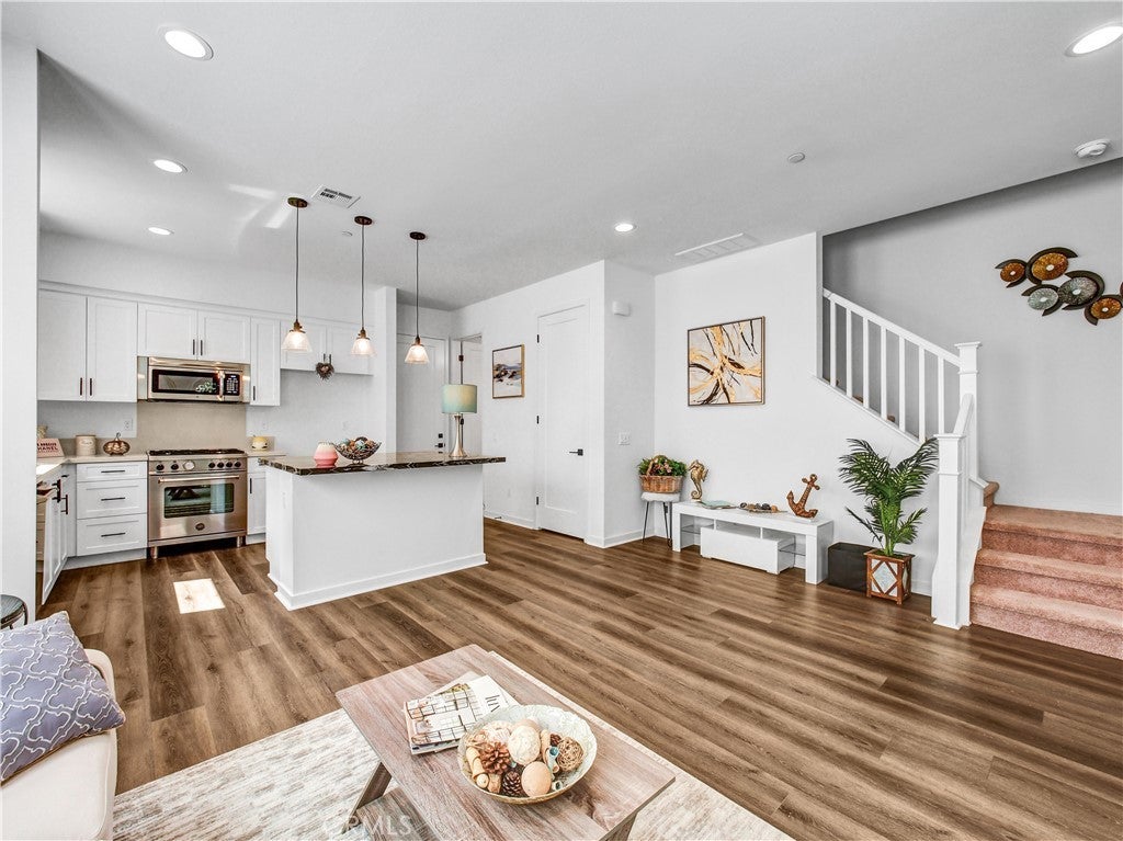 Built in recent years, this stylish end-unit condo offers the perfect blend of contemporary design and privacy. The open-concept layout features abundant natural light, sleek finishes, and a spacious great room that flows seamlessly into the kitchen and dining areas—ideal for both entertaining and everyday living. Rare to find a newer construction with only two stories in the area. First floor features an open living area, sleek kitchen, and convenient half bath. Upstairs offers three bedrooms, two full baths, a dedicated laundry area, and a spacious primary suite. Upgraded with custom high-end shutters, extra windows and high ceiling. Enjoy the rare bonus of a private side yard, perfect for outdoor dining, gardening, or a play space for kids and pets. As an end unit, you’ll appreciate enhanced privacy, and only one shared wall. The home is close to shopping, dining, parks, and convenient commuter routes. Move-in ready and thoughtfully designed, this property combines low-maintenance living with the comfort of a single-family feel.