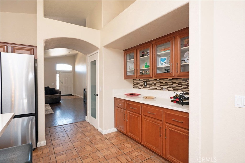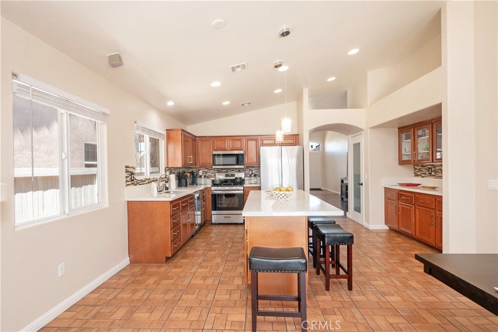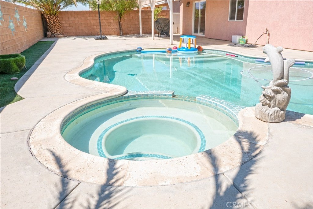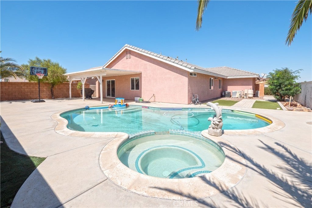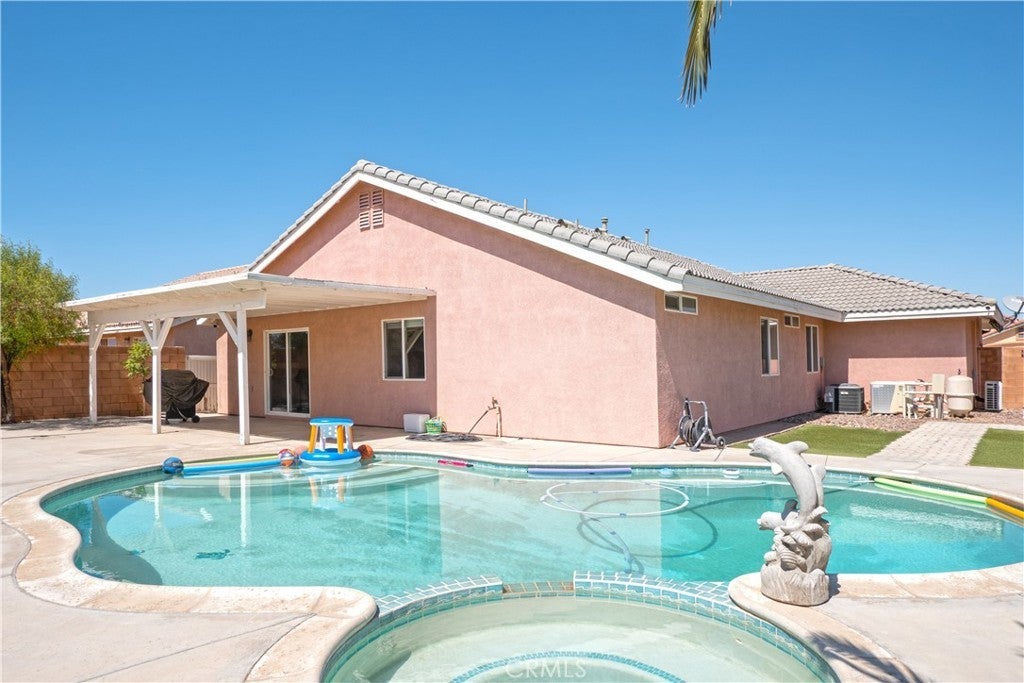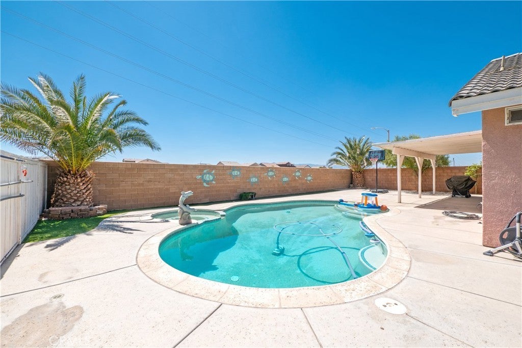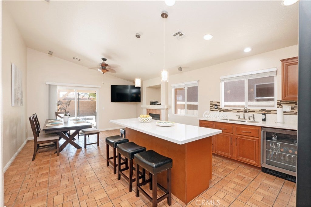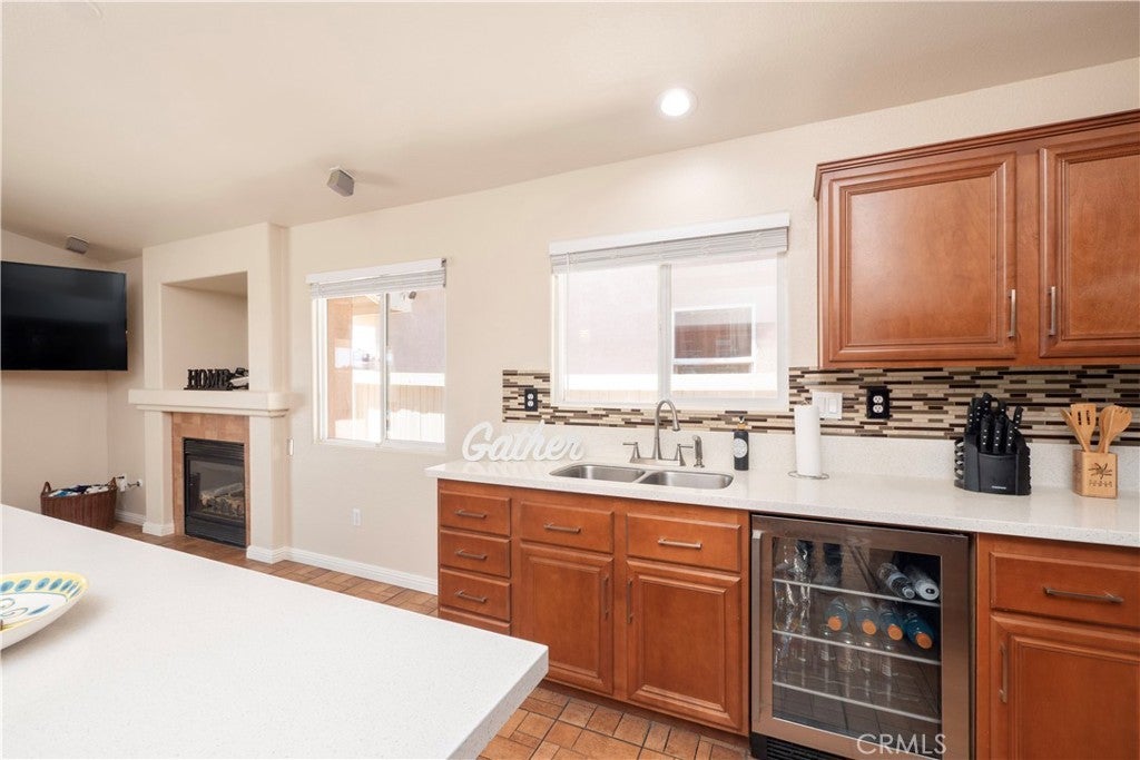 Beautifully Maintained Single-Story Oasis with Pool & Private Backyard!! Welcome to this spacious and meticulously maintained single-story home, offering the perfect blend of comfort, style, and functionality. From the moment you arrive, you'll notice the fresh exterior paint and pristine curb appeal that set the tone for what’s inside. Step into a bright and open-concept floorplan ideal for everyday living and entertaining. The heart of the home is the stunning kitchen, featuring a massive custom-built island with gorgeous pendant light fixtures above, wine fridge, and seamless flow into the dining area—complete with a cozy fireplace perfect for family gatherings or dinner parties. Enjoy indoor-outdoor living with a gorgeous backyard retreat that boasts a sparkling pool, relaxing jacuzzi, and privacy with no rear neighbors. Whether you're hosting guests or enjoying a quiet evening, this outdoor space is truly special. The primary suite offers a peaceful escape, featuring a large walk-in closet with what could be his-and-her sections and a luxurious en-suite bathroom with a beautiful double vanity and stone counters and a perfectly sized linen closet. A separate fourth bedroom, thoughtfully positioned away from the others, provides ideal flexibility as a home office, guest suite, or private retreat. Additional highlights include: Fresh interior and exterior paint, Newer AC and water heater, three-car garage with dedicated A/C unit — perfect for hobbyists or storing big toys. Spacious layout designed for modern living. Every inch of this home has been lovingly cared for and is move-in ready. Don't miss the chance to make this stunning property your own.
