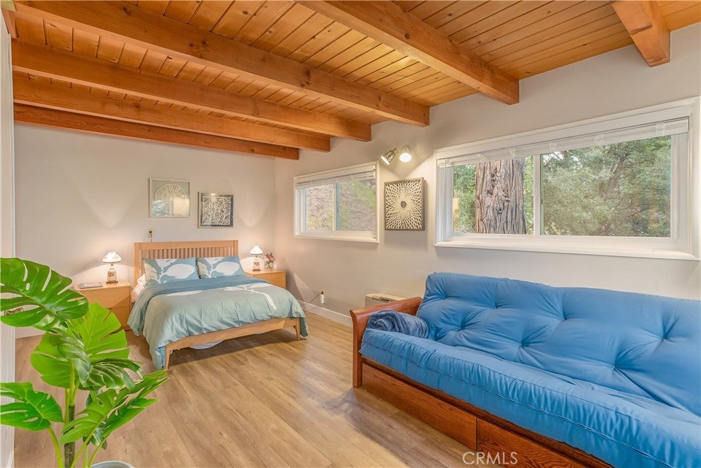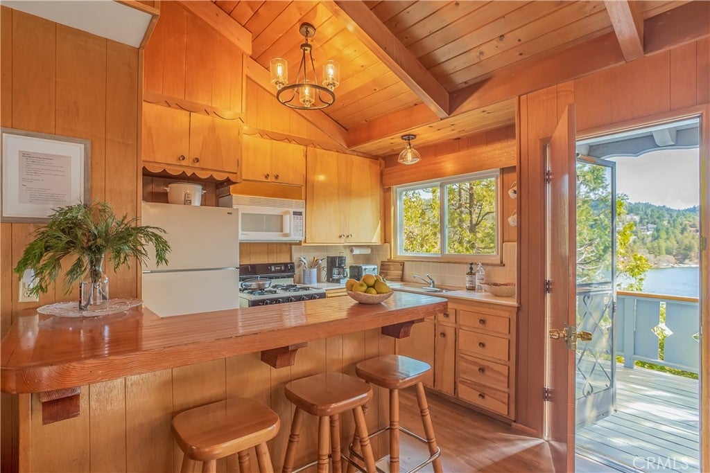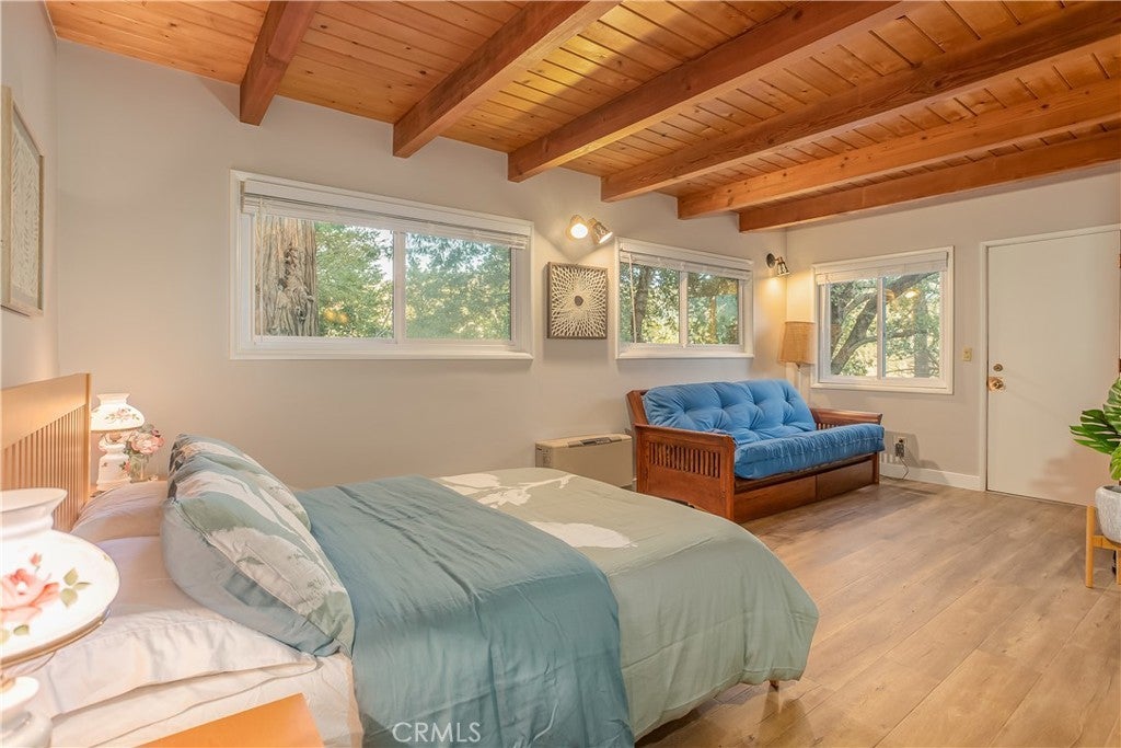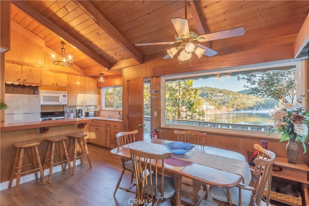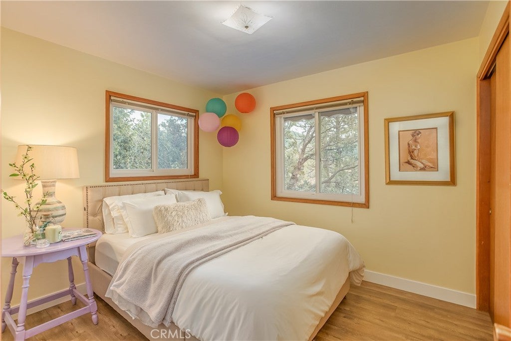 The best LAKE VIEW home in Crestline. It has FULLY FURNISHED with incredible LAKE and mountains VIEW. It offers 2 bedrooms, 2 baths plus a HUGE bonus room. The living room is warm and inviting with vaulted wood beams ceiling, and a wood-burning cozy fireplace. The open-concept kitchen with a bar counter flows seamlessly into the spacious dining area, where large picture windows frame the spectacular lake views. The deck is overlooking 180-degree views of Lake Gregory and mountain. Downstairs, a large bonus/game room and half bath provides excellent potential for guest or it can be use as 3rd bedroom. washer/dryer inside the house. This property is sold fully furnished and is a turn-key, mountain retreat package. Just a minutes from the lake and walking distance to Goodwin & sons’ supermarket, crestline village, shopping, and restaurants. This is the perfect vacation getaway home with year-round mountain sanctuary.