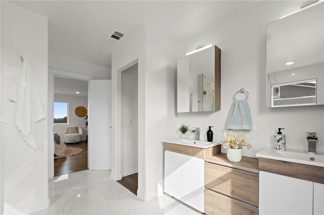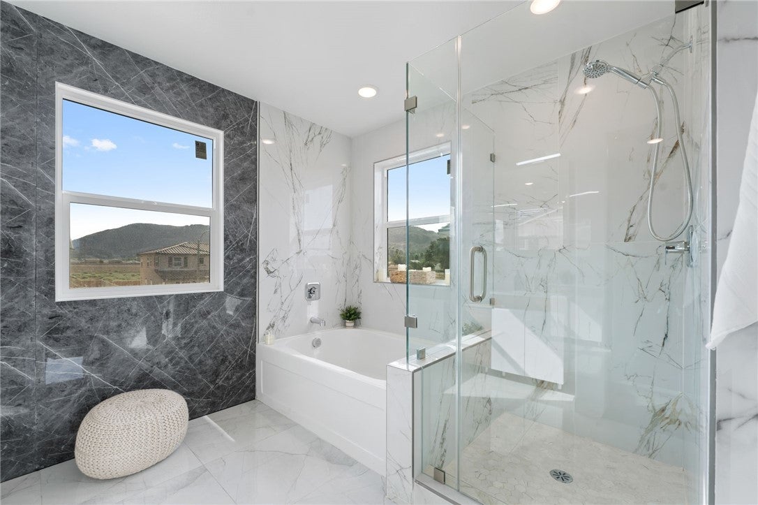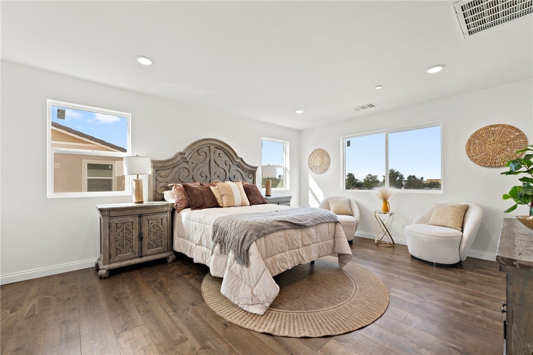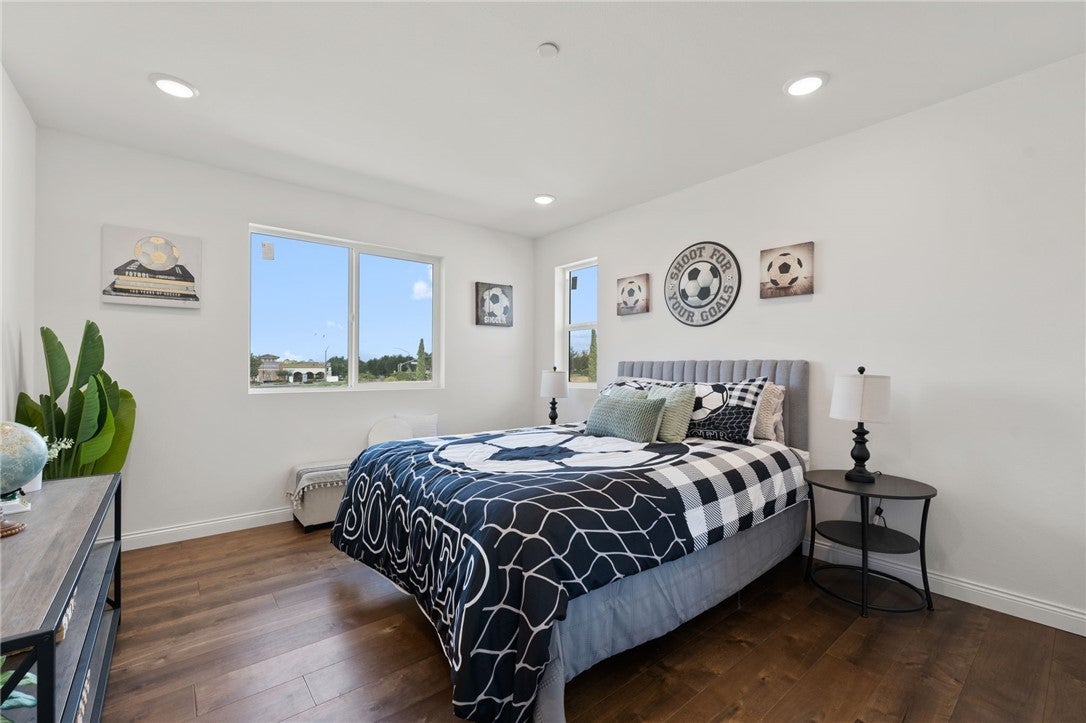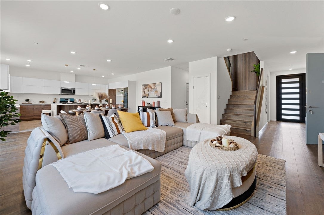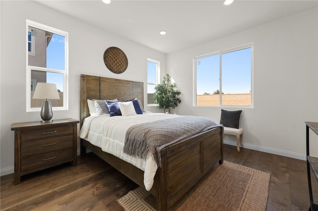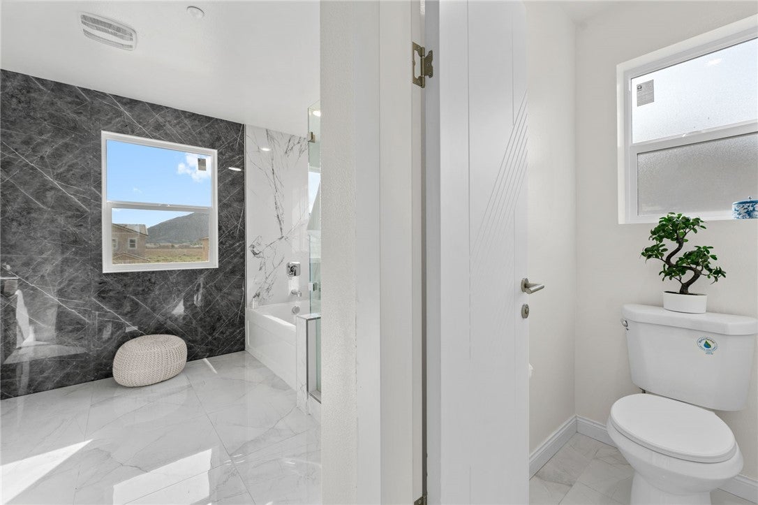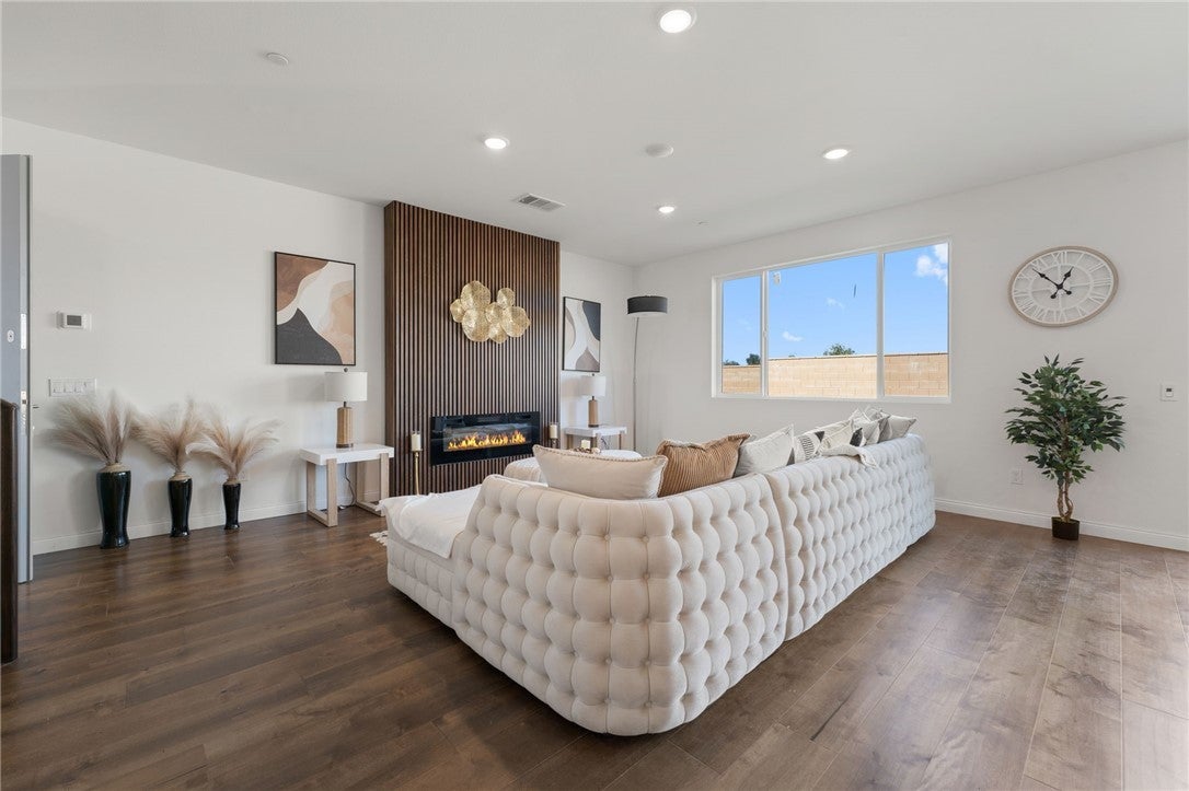 Welcome to Luxury Living at 14417 Buvan Court, Moreno Valley, CA 92555. Discover this newly constructed luxury home nestled in a cul-de-sac, designed for both elegance and functionality. ***PAID-OFF SOLAR PANELS*** make this home energy-efficient and cost-effective. As you step inside, you'll immediately notice the open floor plan bathed in natural light, creating a warm and inviting atmosphere. The spacious living room features a cozy fireplace, seamlessly flowing into the dining area and a chef-inspired European-style kitchen—perfect for entertaining. A convenient half-bath is also available for guests. This home boasts beautiful wood flooring throughout and elegant tile in wet areas. A standout feature is the attached 2-bedroom, 1-bath ADU with its own private entrance, ideal for rental income or accommodating family members. Upstairs, sleek glass railings lead you to three additional bedrooms, including a primary suite with a spacious walk-in closet, built-in shelving, and a custom-designed European-style bathroom featuring a luxurious walk-in shower. A dedicated laundry room adds to the home's convenience. Step outside to a versatile backyard, perfect for relaxation, entertaining guests, or hosting barbecues. You’ll have the opportunity to customize the landscaping to suit your style. The home also includes a custom-designed two-car garage. Situated in a highly desirable community, this property offers easy access to shopping centers, restaurants, and Freeway 60. This isn’t just a home—it’s THE home.