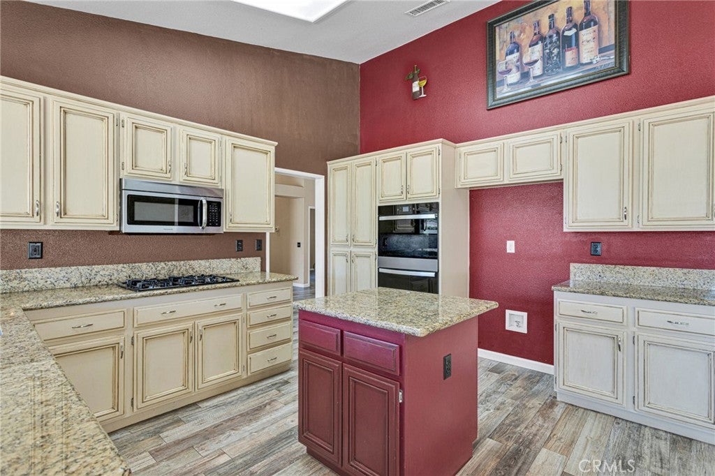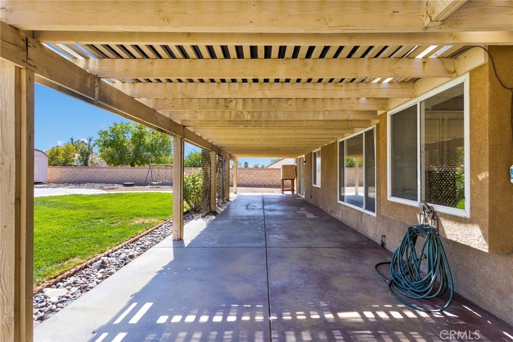 If your heart is set on gathering, entertaining, and creating lasting memories, this beautiful home in Apple Valley’s Skyline Ranch neighborhood is calling your name! With 3,024 sq. ft., 5 bedrooms, and 2.5 baths on nearly a half-acre, there’s room for everyone to relax, connect, and enjoy life together. Step inside to find a welcoming family room with a cozy woodstove insert, a flexible den/office, and a fun-filled game room complete with pool table and bar—perfect for lively nights with family and friends. At the center of it all, the gourmet kitchen shines with newer stainless-steel appliances, double oven, cooktop, microwave, dishwasher, and a powered island—an entertainer’s dream for cooking, hosting, and celebrating. The primary suite is your private retreat, featuring a bonus room ideal for a nursery, office, or gym. The remodeled bath impresses with barn door entry, dual sinks, and a luxurious walk-in shower with dual shower heads. Step outside to your backyard oasis—a sparkling pool with waterfall and slide, peaceful koi pond, lush lawn, and an extended covered patio built for BBQs, birthdays, and sunset gatherings. Practical features include a 14’ x 100’ RV driveway, 4-car garage, two large storage sheds, indoor laundry with storage, whole-house water softener, dual HVAC units, dual evaporative coolers, and paid-off solar for energy efficiency. With low-maintenance desert landscaping, charming curb appeal, and even a chicken coop for your inner homesteader, this home truly has it all! Located near Sitting Bull Academy and new shopping and dining options, this is where comfort, convenience, and community come together. More than a house—it’s where memories are made, laughter is shared, and dreams take root.