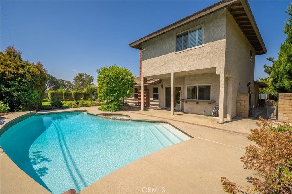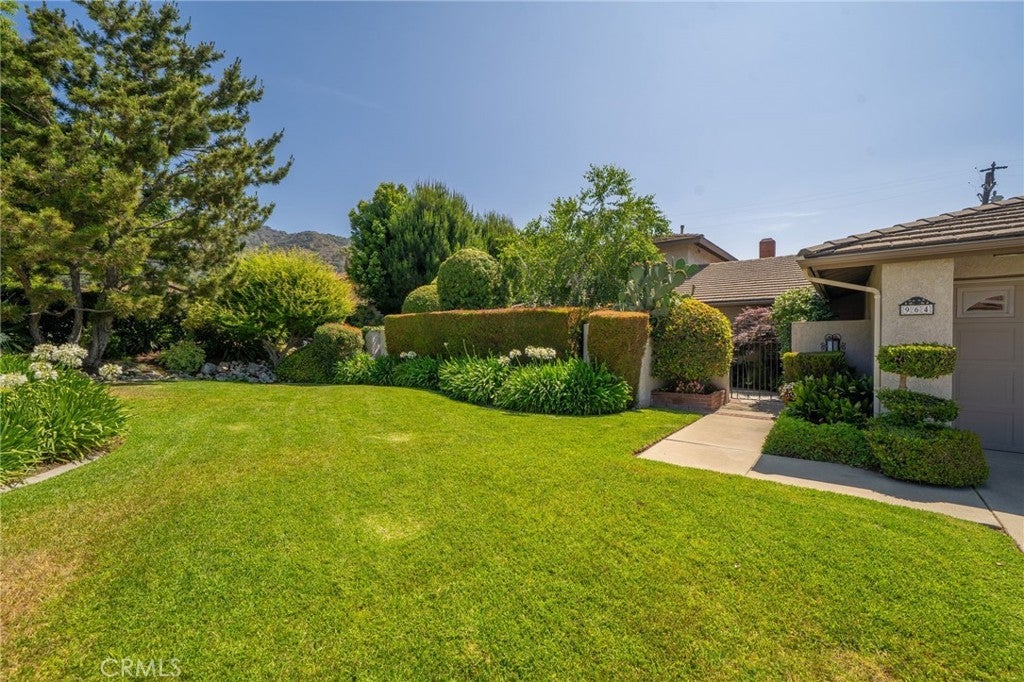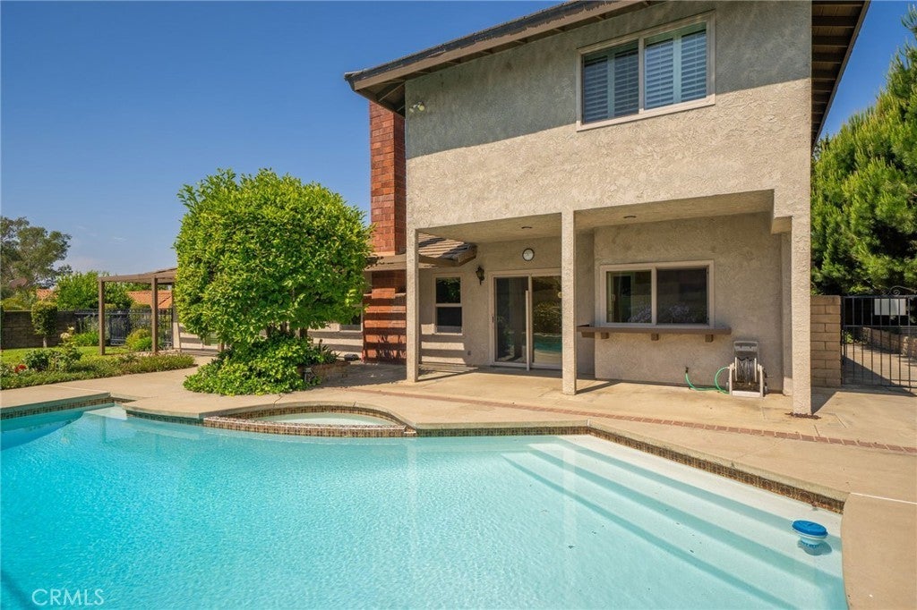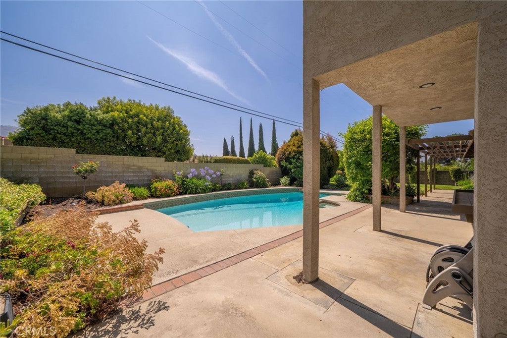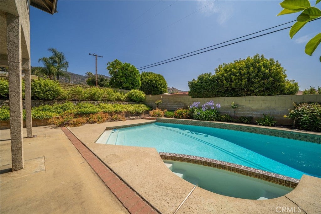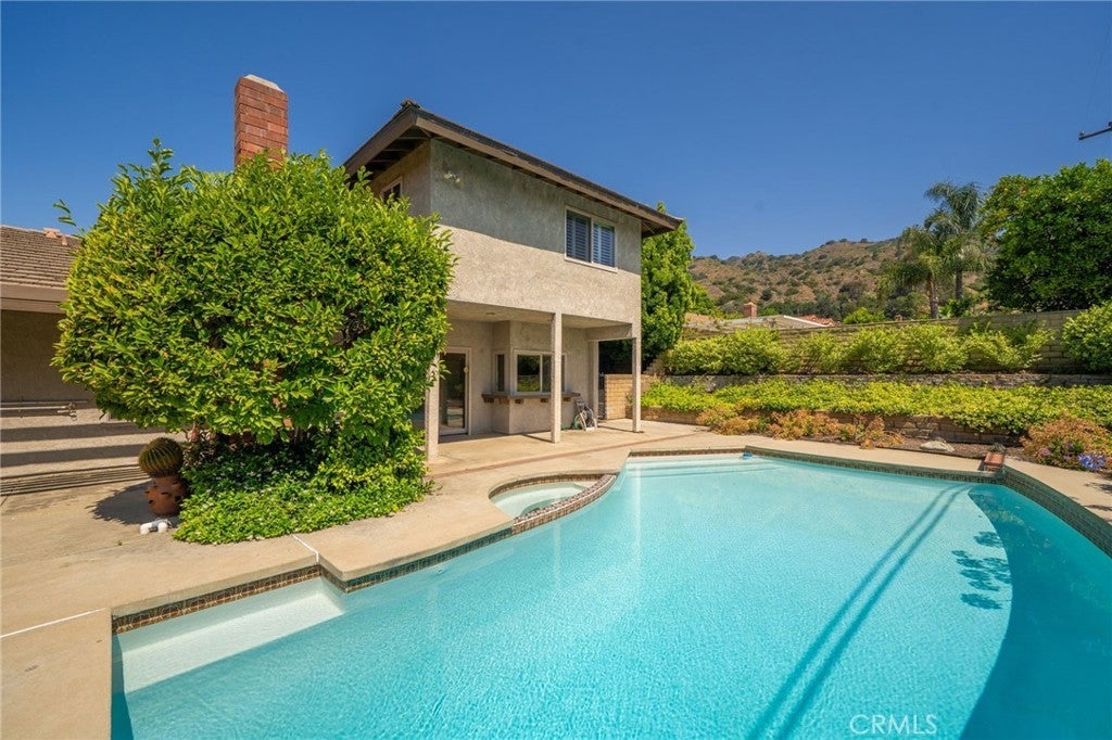 Located in one of North Glendora’s most desirable neighborhoods, this six bedroom three bathroom pool home is within walking distance to award-winning Glendora schools, hiking trails, and parks. Enter this beautiful home through double doors off the private courtyard. The large open living room has views to the courtyard, plantation shutters, and offers a perfect place for entertaining or relaxing with a book. The formal dining room has a sliding door with plantation shutters out to a large side patio that is ideal for private outdoor dining or summer entertaining. Adjacent to the dining room is the kitchen with custom oak cabinetry and Corian counters, breakfast area with sliding door to backyard, built-in desk space, and views to the backyard and the foothills. The breakfast area opens to an inviting family room with floor-to-ceiling brick fireplace, skylights for ample natural light, and vaulted, wood beamed, ceilings. Down the hallway is a full bathroom with dual sink vanity with quartz counters and custom oak cabinetry. The first of four bedrooms makes for a perfect office or study while another offers two closets and plenty of extra space. The third bedroom has a door into the master suite and makes for a perfect nursery. All three bedrooms have plantation shutters. The spacious master suite has a sliding door with shutters to the back patio and an ensuite ¾ bathroom with two closets. At the end of the hallway you’ll find a laundry room adjacent to the three car attached garage with a water softener and workbench. Upstairs you will find two very spacious bedrooms and a ¾ bathroom with their own HVAC system offering a retreat for guests, older children, or those seeking privacy. This wonderful home sits on a 12,170 sqft lot with a newly replastered pool and spa, lush grass and landscaping, and plenty of privacy. Upgrades include dual pane windows and sliding doors, a whole house fan, water softener, two HVAC systems, upgraded oak cabinetry, plantation shutters, and fire resistant concrete tile roof. This home is a true gem.