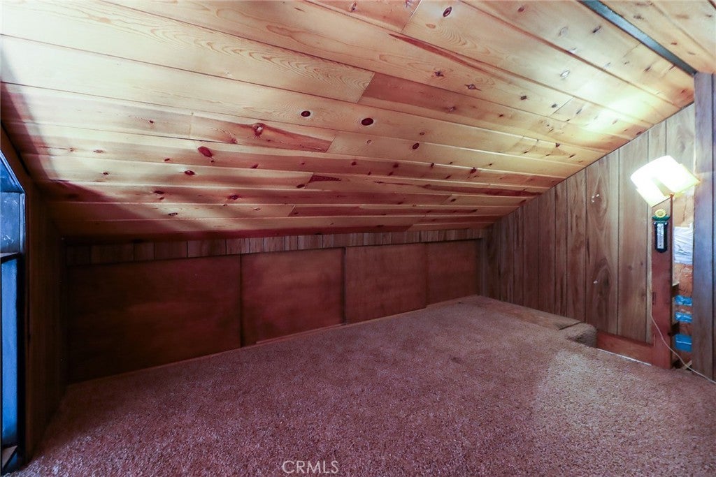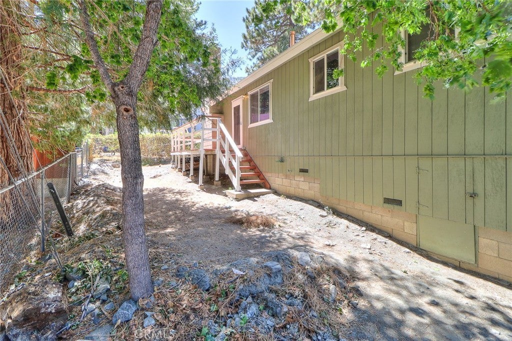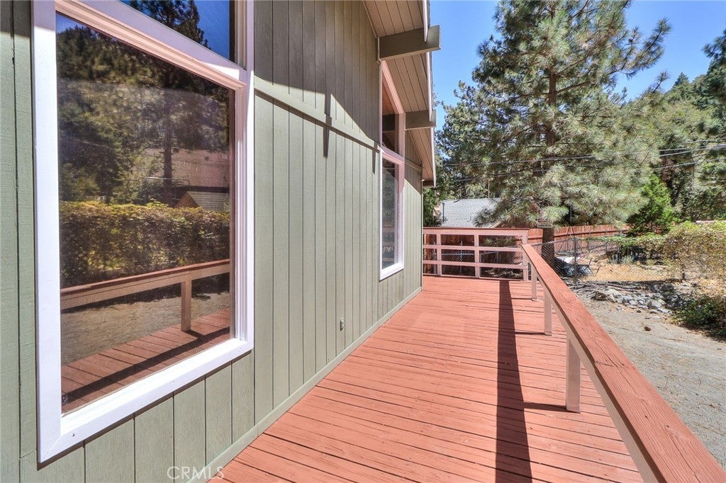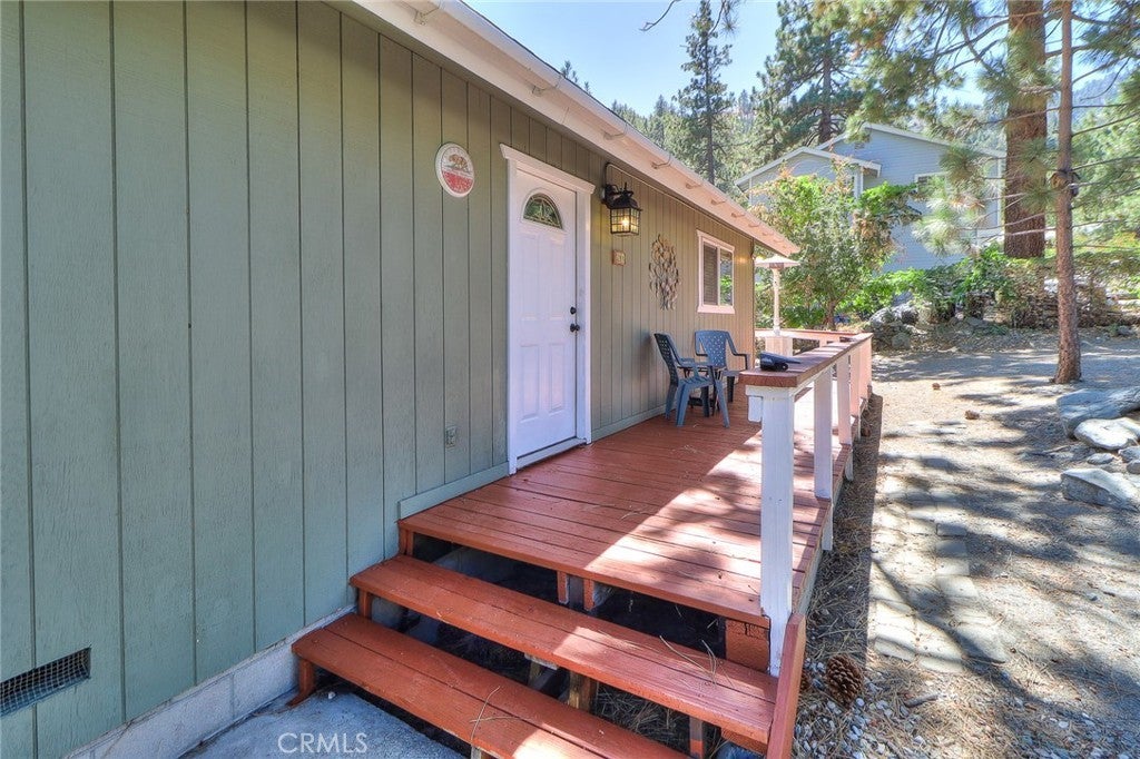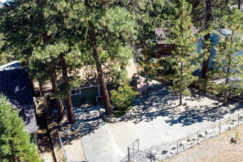 JUST IN TIME FOR THE WINTER!!! Peaceful 2 Bed + Loft, 1 Bath Mountain home on large lot with mountain views! This well-maintained, beautiful home shows true pride of ownership and is ready for you to make it your own! Set back from the street on an over 7,500 square foot lot, this home provides a tranquil getaway with plenty of room to add on, build an ADU, or trailer/ RV parking. Souring old growth trees provide privacy, and the freshly re-stained oversized wrap-around deck is perfect for enjoying the outdoors morning, noon and night. Entering through the front door and a few steps down the hall, the family room stuns with soaring vaulted, beamed ceiling and nearly floor to ceiling south facing windows featuring a wonderful tree-lined mountain view. Warm yourself by the crackling wood burning fireplace after a day on the slopes at nearby Mountain High resort. The thoughtfully designed kitchen has open sight lines to the family room with stone countertops, two-tone cabinetry with hardware, dishwasher, stove and oven. Down the hall are two good sized bedrooms and a full bathroom with shower and tub, clean and well maintained. Up the ladder is a bonus loft, with open peek-a-boo terrace view of the family room and built in storage. The hall contains a laundry closet with additional storage. Conveniently located near Wrightwood Village and Mountain High, this amazing mountain retreat is ready for you! Do not delay, schedule a showing today!