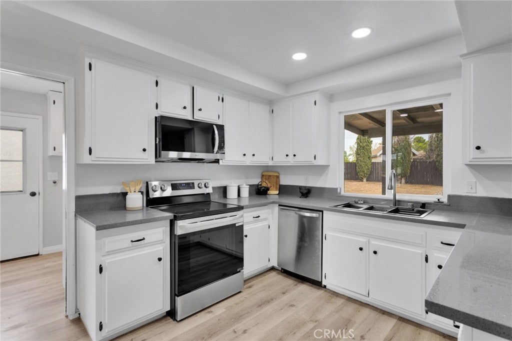 Welcome to 13901 Iroquois Rd., Apple Valley, CA — A Stunning Desert Retreat with Modern Upgrades and a Backyard Oasis Discover comfort, style, and exceptional value in this beautifully updated 4 bedroom and 2.5 bath home nestled in the heart of Apple Valley on an acre lot. Boasting a fresh, modern look and an impressive list of upgrades, this property is move-in ready and designed for easy living and effortless entertaining. Step inside to find brand-new vinyl plank flooring that stretches throughout the home, offering both durability and contemporary appeal. The spacious living area is filled with natural light thanks to new energy-efficient windows, which also enhance insulation and help maintain a comfortable indoor climate year-round. The kitchen is a true showstopper, featuring sleek new stainless steel appliances, ample cabinet space, and a layout that connects seamlessly to the dining and living areas — perfect for gathering and everyday functionality. Fresh interior and exterior paint give the home a crisp, clean feel and reflect pride of ownership throughout. Outside, the property transforms into a private retreat. Enjoy sunny Apple Valley days in the sparkling pool, and unwind in the attached spa as you take in mountain views and open skies. Whether you’re hosting weekend get-togethers or relaxing in peace, the backyard offers the ideal setting. Additional value is found in the new roof, providing long-term peace of mind and protection. The generous acre lot allows for plenty of parking, room for gardening, storage, or simply space to enjoy the wide-open desert beauty that Apple Valley is known for. Conveniently located near local shopping, dining, and commuter routes, this home combines the serenity of the high desert with the practical features and upgrades today’s homeowners appreciate. Don’t miss the opportunity to own a beautifully refreshed property with all the right touches — inside and out.