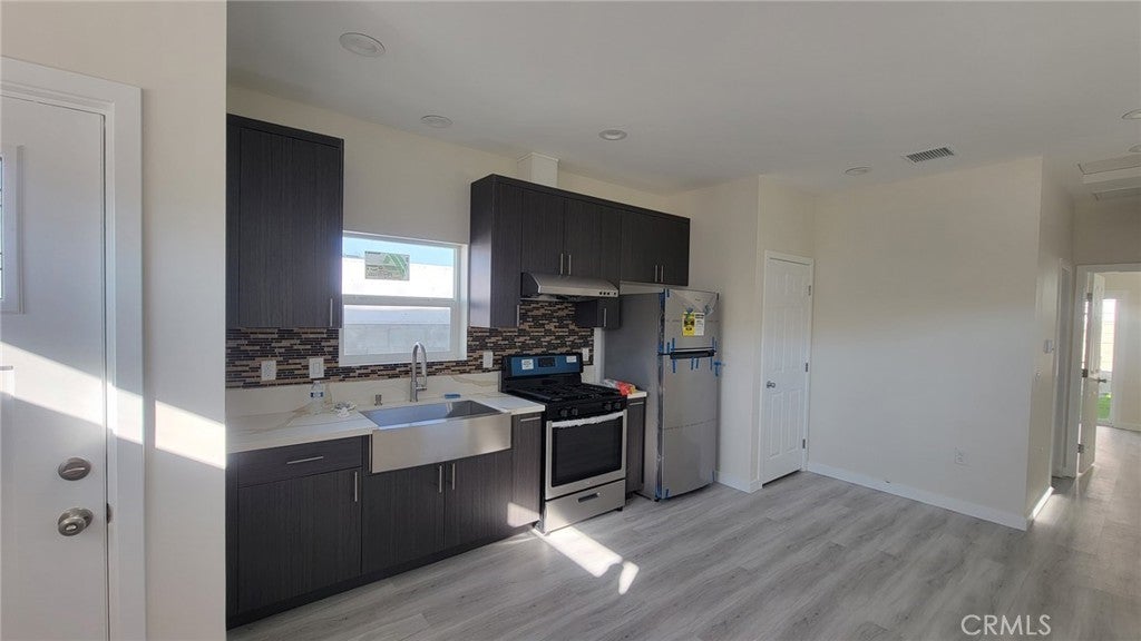 This Listing is a ADU property (Accessors Dwelling Unit) It is NOT the main house on the property. The ADU is completely separate property from the main house NO common walls. This property is newly built in 2023 (per the property owner). The front door of this property provides a nice breeze flowing throughout the home. This home offers an open living area and kitchen with stainless steel appliances, also offered is a stackable washer and dryer. There is wood flooring throughout the entire home. The bathroom has beautiful tile work and an enclosed glass shower. The bedroom has lots of closet space and a sliding glass door for even more air flow. The glass door opens to a private (tenant only) backyard space for the tenant to enjoy and relax maybe use your BBQ. This home has central air conditioning and comes with its own mailing address and private separate mailbox. Owner pays for water. Tenant to pay all other utilities and internet. There is a huge savings for the tenant's electric bill because this home comes with solar (property owner to explain). Property owner may consider a small pet. To view this 600 sq ft property please call the listing office to schedule a showing. Thank you