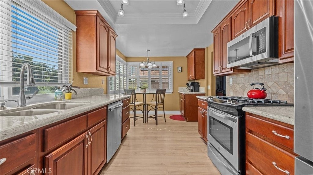 Welcome to your dream home! This impeccably maintained 2,119-square-foot residence offers the perfect blend of modern luxury, comfort, and convenience—truly a rare find in the heart of Alta Loma. You’ll be captivated by this home’s charming curb appeal and inviting atmosphere from the moment you arrive. Step inside to discover a bright, open floor plan that was designed for both easy living and stylish entertaining. There are lots of windows that let in an abundance of natural light. The updated kitchen is a showstopper. It features elegant countertops, premium cabinetry, and stainless steel appliances that make every curating every meal a pleasure. The renovated bathrooms echo the same attention to detail, offering a fresh, spa-like experience. Every inch of this home reflects genuine pride of ownership. Move right in and start living the lifestyle you’ve been dreaming of. The fresh paint, new carpet, and newer luxury vinyl make this home move-in ready. The backyard oasis is beautiful and practical, featuring easy-care landscaping, mature fruit trees, and square-foot garden beds, perfect for growing fresh herbs and vegetables. Enjoy outdoor dining under the stars or simply relax and take in the peaceful surroundings. Ideally located north of the 210 freeway, with no freeway influence, you are near shopping, schools, and restaurants. Victoria Gardens is less than 10 minutes away. You are also at the base of the foothills and close to parks for outdoor activities. This home provides the best of suburban living with unmatched convenience. Don’t miss your chance to own this turn-key treasure in one of Rancho Cucamonga’s most desirable communities. Call now to schedule your private showing today and experience the perfect blend of comfort, style, and California living!