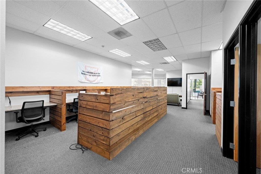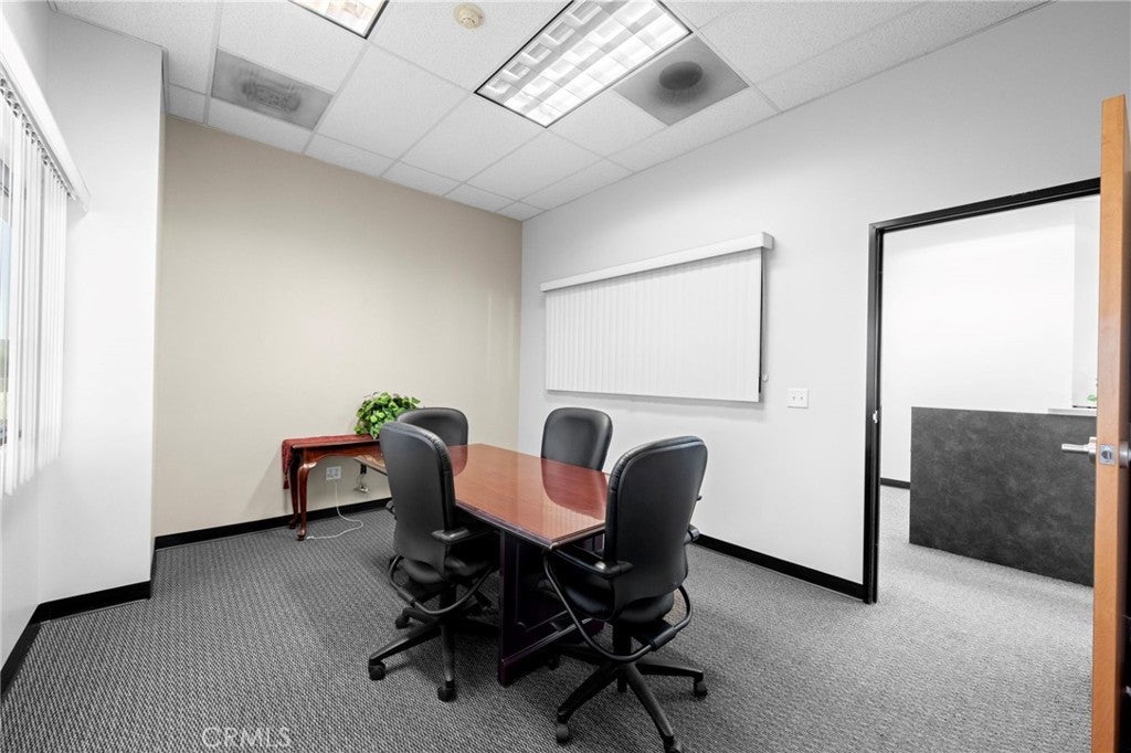 Modern Office setting offers secure, convenient first-floor entry with reception area and reception desk, multiple desk/work stations, 2 separate private offices, 2 conference rooms, a kitchen and a cozy common area. Employees & clients will have plenty of parking, easy freeway access with anchor tenant. Carpet will be replaced by landlord at tenant move-in.