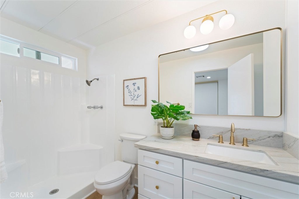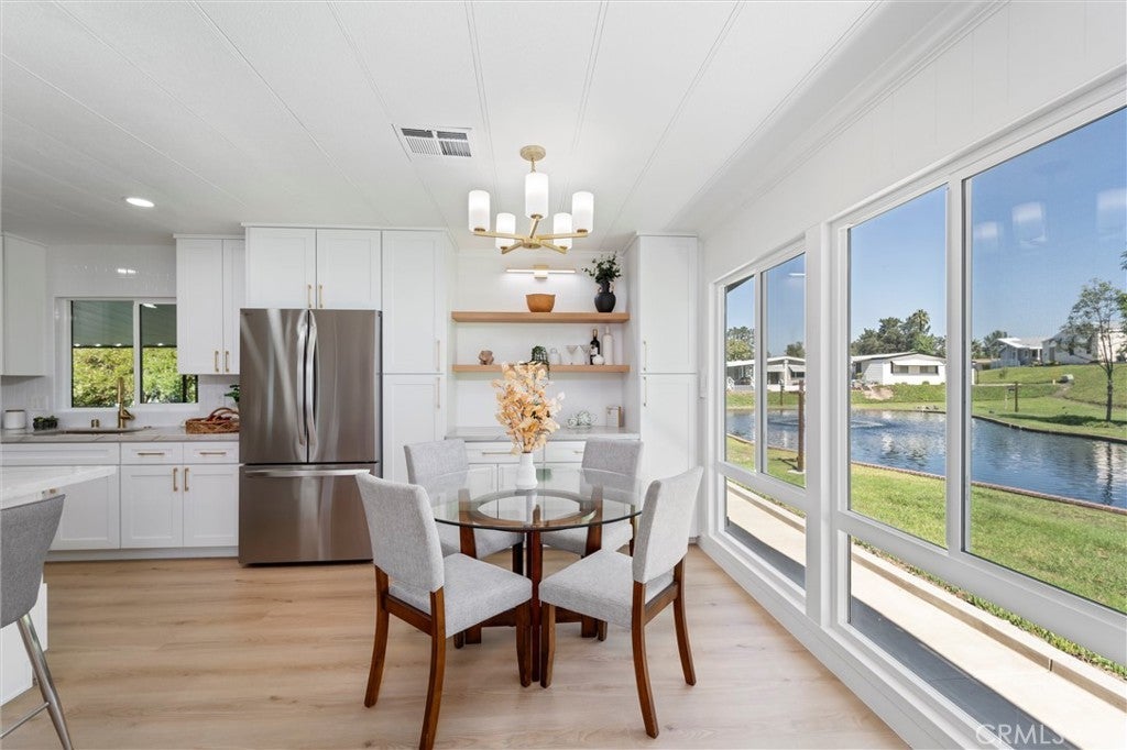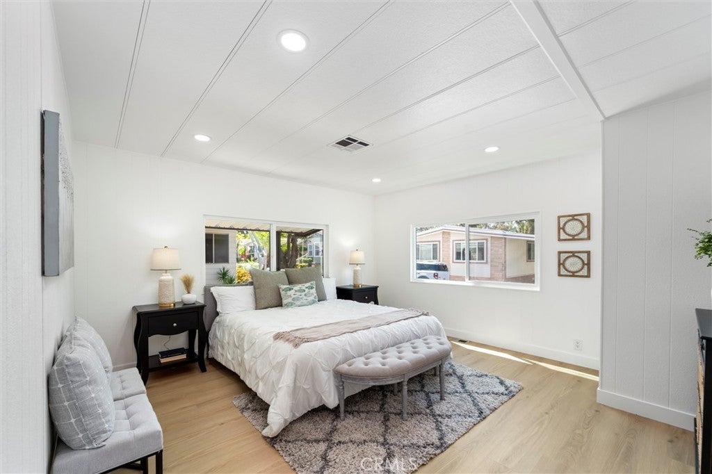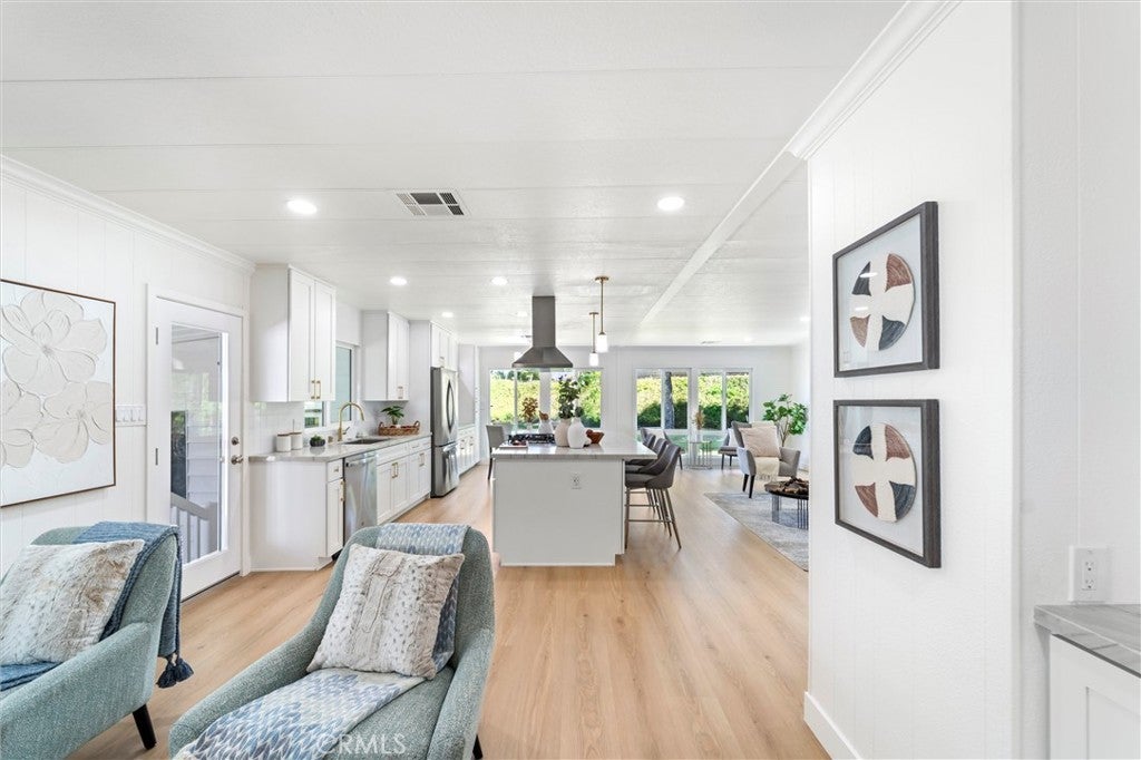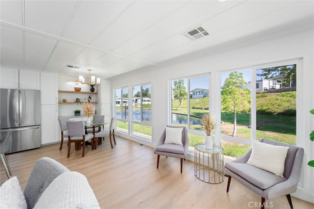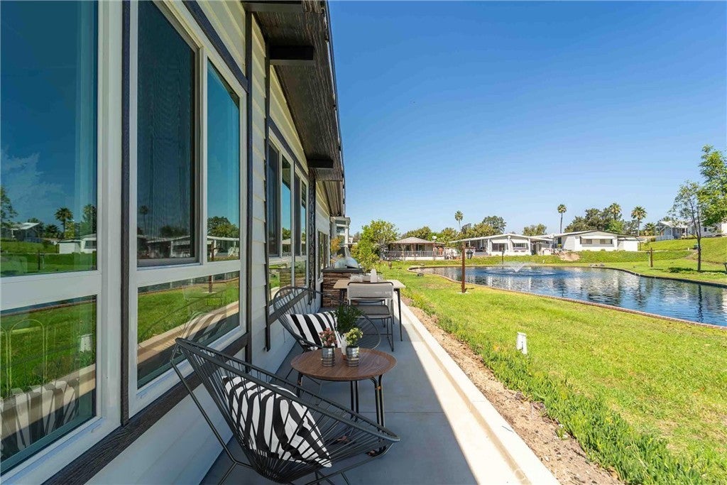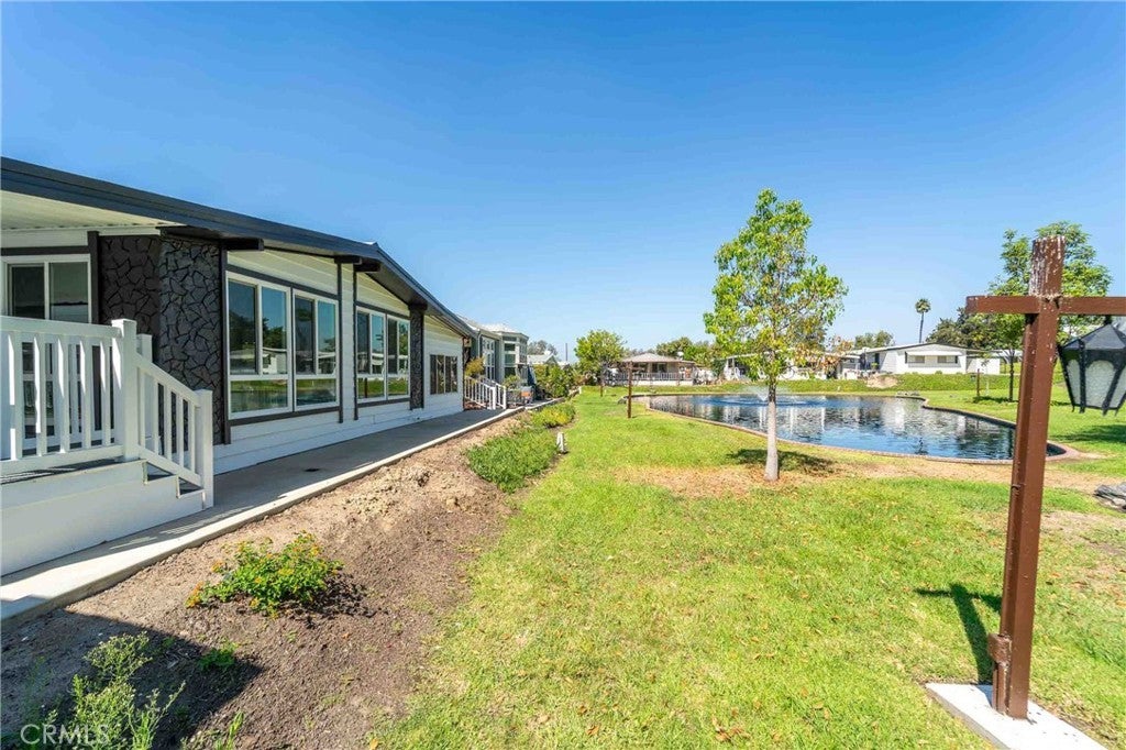 Completely Remodeled Lakeside Living in Lake Forest 55 Community Welcome to this beautifully remodeled two-bedroom, two-bath manufactured home in the highly sought-after Lake Forest 55 community. Designed with an open floor plan, the home is filled with light and warmth, creating a welcoming space for both everyday living and entertaining. The kitchen is a true showpiece, featuring white shaker-style cabinetry with soft-close doors, elegant gold hardware, quartz countertops, and custom oakwood shelving. A large island anchors the space, making it a chef’s dream and the perfect gathering spot. The living area is enhanced with brand-new floor-to-ceiling double-pane windows that capture stunning views of the water , while recessed lighting with dimmer controls adds the perfect ambiance. Luxury vinyl flooring flows seamlessly throughout, tying the modern design together. The primary suite offers a peaceful retreat with a beautifully finished bathroom featuring a walk-in shower, quartz countertops, dual sinks, and a stylish vanity. Need extra space? The enclosed shed is a versatile bonus- ideal for a work area, craft studio or storing all your holiday decor and more. Outdoors, a completely refurbished deck leads to a private sitting area where you can sip your morning coffee or unwind by the water at sunset. Living in Lake Forest means more than just a beautiful home — it’s a vibrant lifestyle. The community offers an activity calendar stunning entertainment hall, library, swimming pool, and fitness center, all designed for your enjoyment. With a warm, welcoming atmosphere and a prime location just minutes from major freeways and the Irvine Spectrum, you’ll have the perfect balance of relaxation and convenience. This home combines modern elegance, thoughtful design, and water features serenity — truly a must-see.