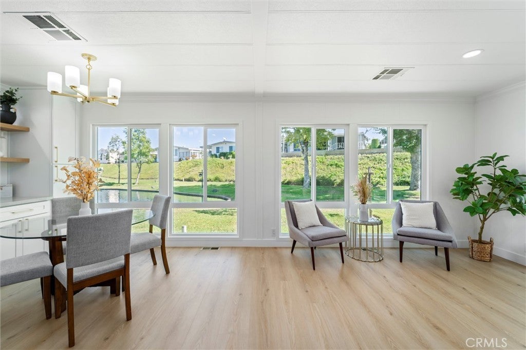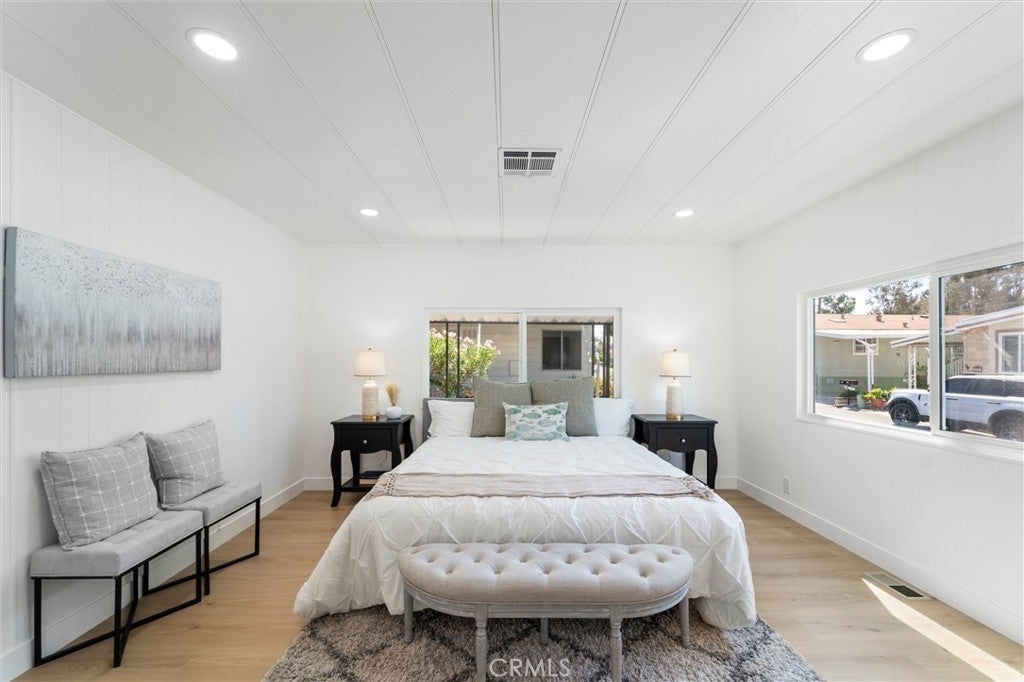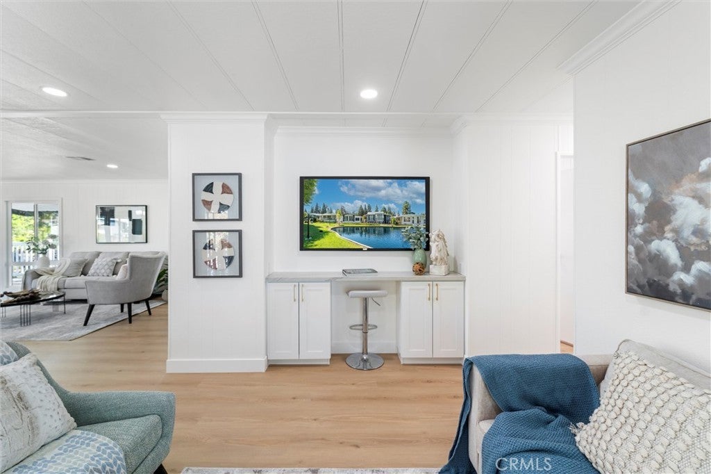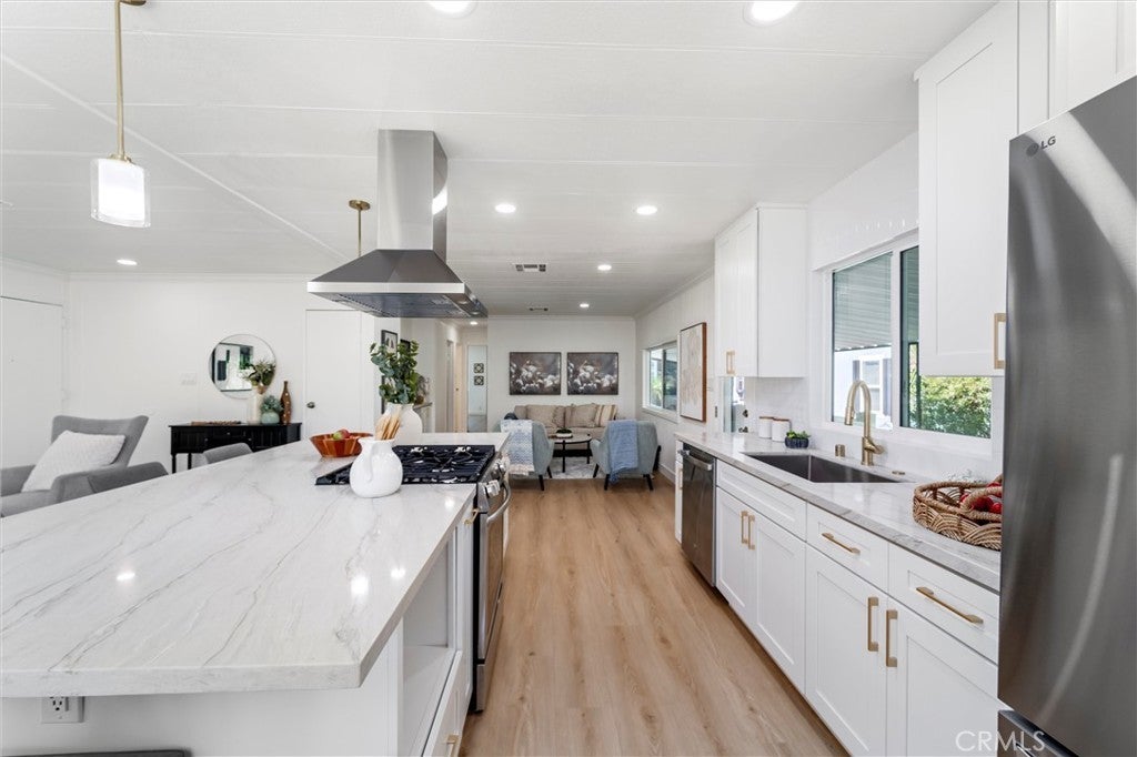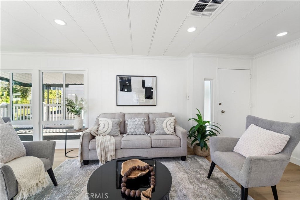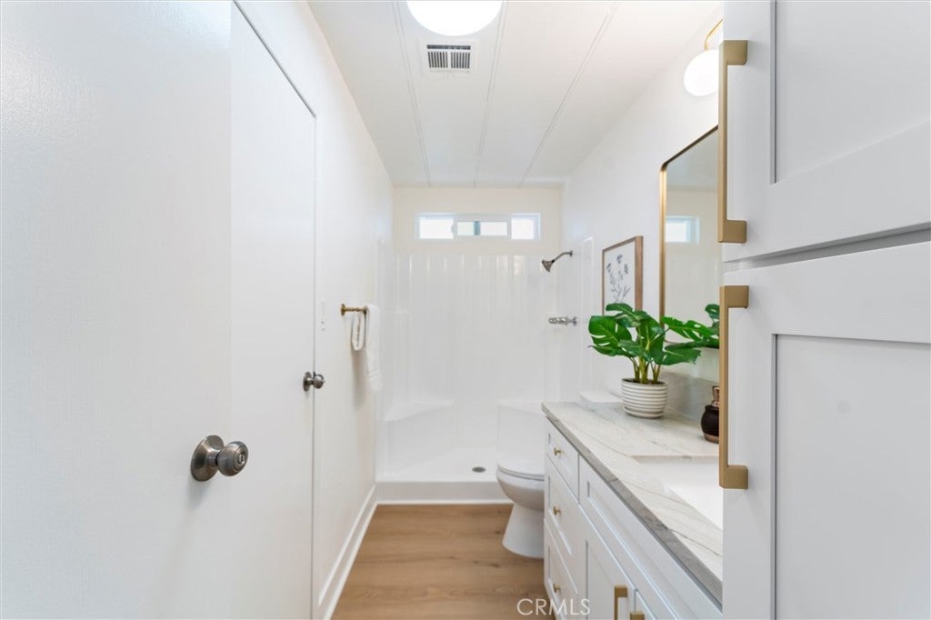 Completely Remodeled Lakeside Living in Lake Forest 55 Community Welcome to this beautifully remodeled two-bedroom, two-bath manufactured home in the highly sought-after Lake Forest 55 community. Designed with an open floor plan, the home is filled with light and warmth, creating a welcoming space for both everyday living and entertaining. The kitchen is a true showpiece, featuring white shaker-style cabinetry with soft-close doors, elegant gold hardware, quartz countertops, and custom oakwood shelving. A large island anchors the space, making it a chef’s dream and the perfect gathering spot. The living area is enhanced with brand-new floor-to-ceiling double-pane windows that capture stunning views of the water , while recessed lighting with dimmer controls adds the perfect ambiance. Luxury vinyl flooring flows seamlessly throughout, tying the modern design together. The primary suite offers a peaceful retreat with a beautifully finished bathroom featuring a walk-in shower, quartz countertops, dual sinks, and a stylish vanity. Need extra space? The enclosed shed is a versatile bonus- ideal for a work area, craft studio or storing all your holiday decor and more. Outdoors, a completely refurbished deck leads to a private sitting area where you can sip your morning coffee or unwind by the water at sunset. Living in Lake Forest means more than just a beautiful home — it’s a vibrant lifestyle. The community offers an activity calendar stunning entertainment hall, library, swimming pool, and fitness center, all designed for your enjoyment. With a warm, welcoming atmosphere and a prime location just minutes from major freeways and the Irvine Spectrum, you’ll have the perfect balance of relaxation and convenience. This home combines modern elegance, thoughtful design, and water features serenity — truly a must-see.