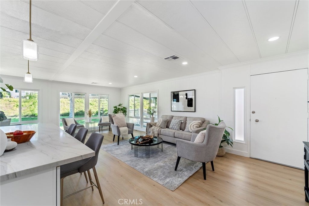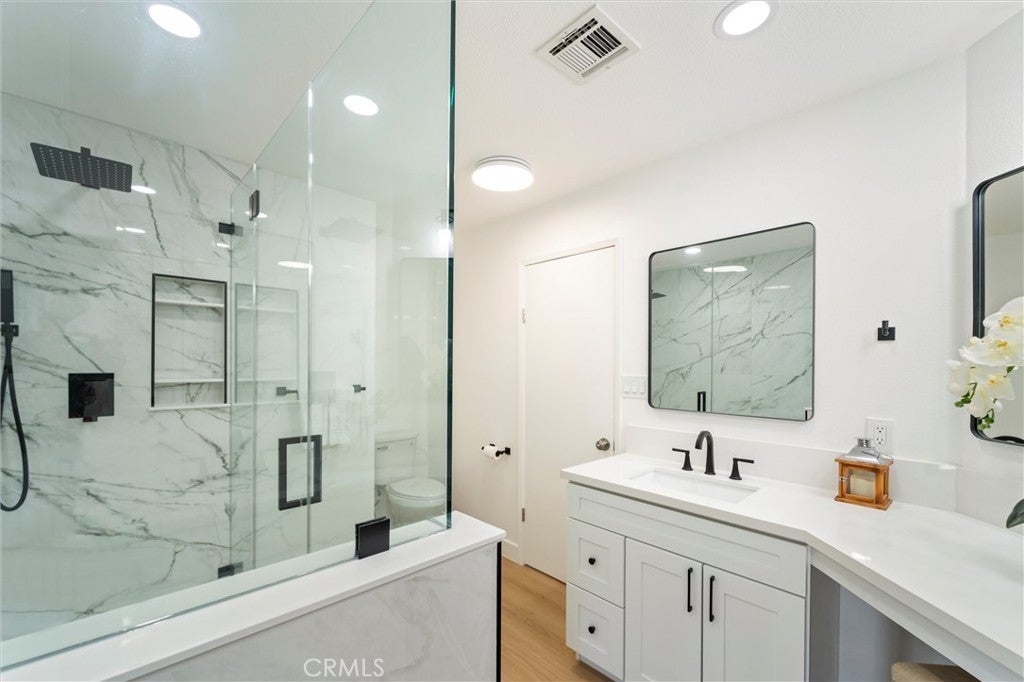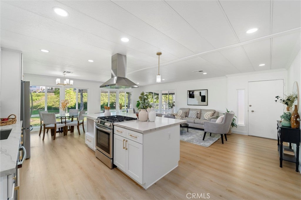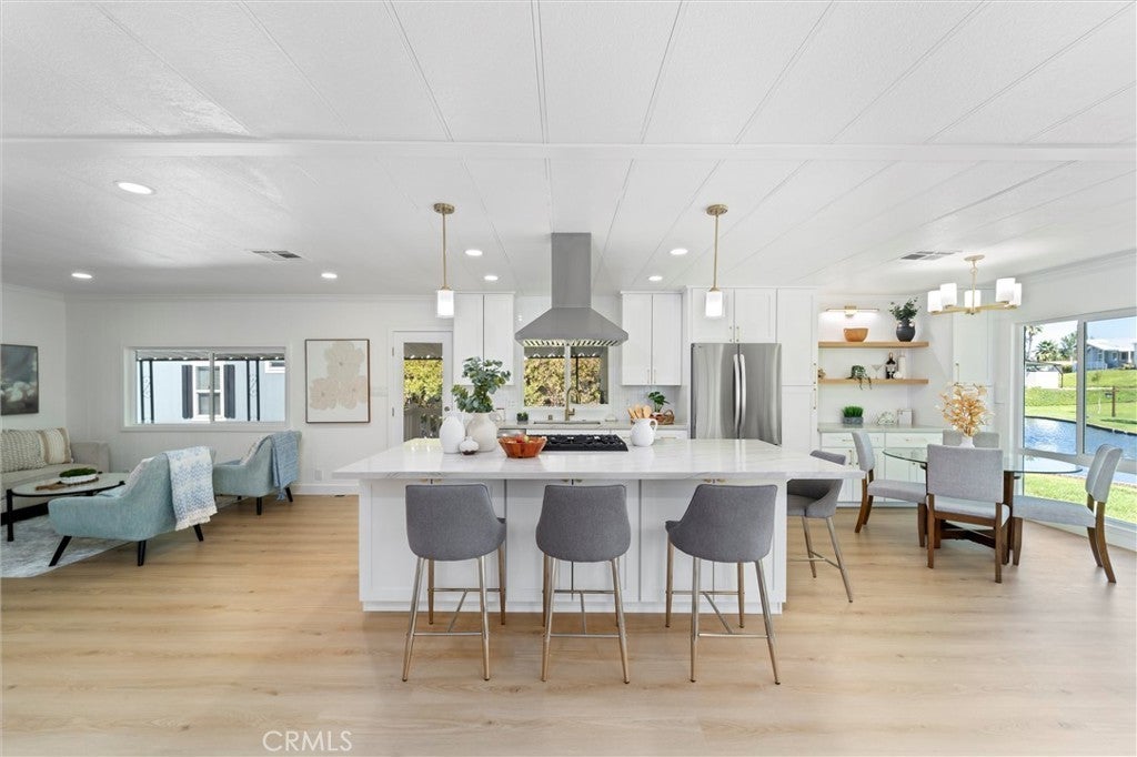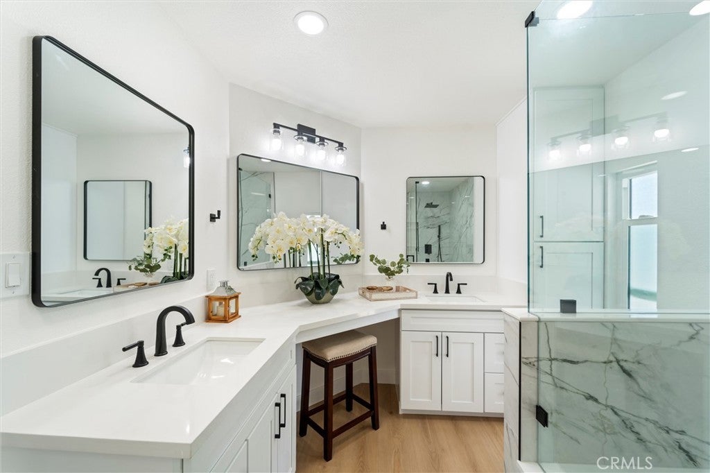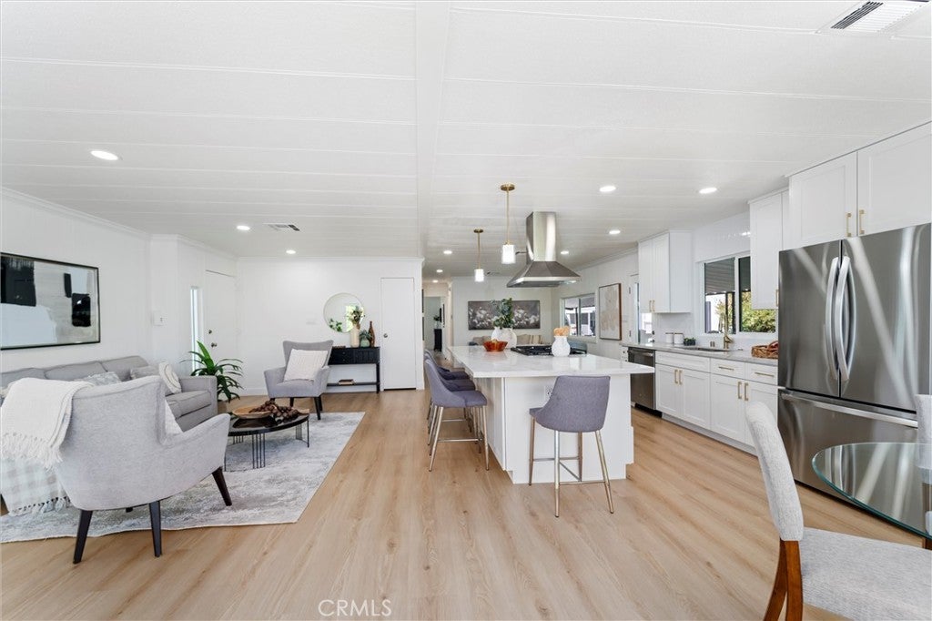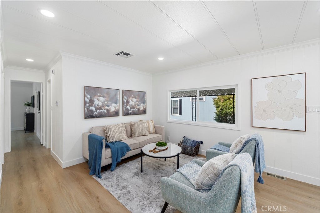 Completely Remodeled Lakeside Living in Lake Forest 55 Community Welcome to this beautifully remodeled two-bedroom, two-bath manufactured home in the highly sought-after Lake Forest 55 community. Designed with an open floor plan, the home is filled with light and warmth, creating a welcoming space for both everyday living and entertaining. The kitchen is a true showpiece, featuring white shaker-style cabinetry with soft-close doors, elegant gold hardware, quartz countertops, and custom oakwood shelving. A large island anchors the space, making it a chef’s dream and the perfect gathering spot. The living area is enhanced with brand-new floor-to-ceiling double-pane windows that capture stunning views of the water , while recessed lighting with dimmer controls adds the perfect ambiance. Luxury vinyl flooring flows seamlessly throughout, tying the modern design together. The primary suite offers a peaceful retreat with a beautifully finished bathroom featuring a walk-in shower, quartz countertops, dual sinks, and a stylish vanity. Need extra space? The enclosed shed is a versatile bonus- ideal for a work area, craft studio or storing all your holiday decor and more. Outdoors, a completely refurbished deck leads to a private sitting area where you can sip your morning coffee or unwind by the water at sunset. Living in Lake Forest means more than just a beautiful home — it’s a vibrant lifestyle. The community offers an activity calendar stunning entertainment hall, library, swimming pool, and fitness center, all designed for your enjoyment. With a warm, welcoming atmosphere and a prime location just minutes from major freeways and the Irvine Spectrum, you’ll have the perfect balance of relaxation and convenience. This home combines modern elegance, thoughtful design, and water features serenity — truly a must-see.