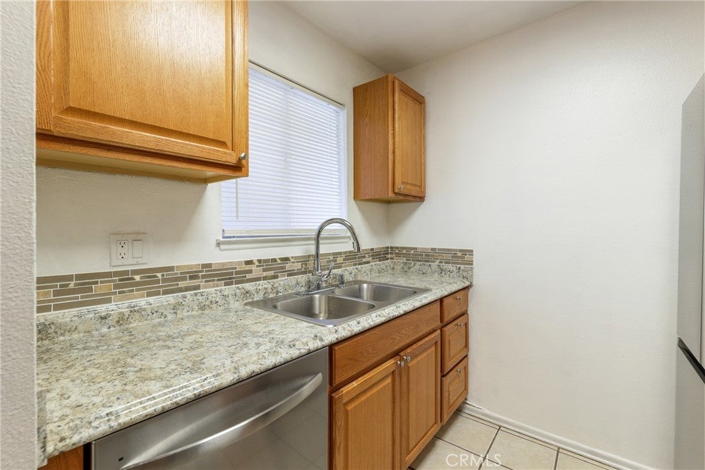 Beautiful, move-in ready condo located in the desirable Sunscape Condominiums in the lovely City of Rancho Cucamonga. Top/second level condo with approximately 675 square feet of living space, 1 bedroom & 1 full remodeled bathroom with dual-sink vanity & shower/bath tub combo. This lovely condo is ready for your personal touch. Features: open floor plan, ceramic tile in the entry way & kitchen/dining area, fresh interior paint, new wood looking flooring throughout, new window blinds, new thermostat for HVAC, new ceiling fans & balcony with a storage closet. Lovely living/family room with a slider that leads to the balcony. Remodeled kitchen boasts plenty of cabinetry, Corian counter tops with subway tile backsplash, new faucet plus new stainless steel appliances: refrigerator, built-in microwave, gas stove/oven & dishwasher. Dining/nook area off the kitchen and opens to the living/family room. Nice size bedroom with a walk-in closet with attic access. Assigned carport plus extra plenty of guest parking. Association community amenities include: 2 sparkling swimming pools, spas, tennis courts, BBQ area, club house, water & trash included in your dues, pet friendly community with a dog park, guest parking, on-site laundry room & maintenance of this beautiful community greenbelts grounds with some picnic area & lovely walkways. Lovely view of the mountains to the North. Award winning Alta Loma school district. Another added bonus is the property is conveniently located close to parks, schools, shopping centers, grocery stores, Victoria Gardens shopping mall + Colonies Crossroad center that also offers ample shopping & restaurants. Plus commuter friendly with 210 freeway near-by. Hurry, this condo will not last long!