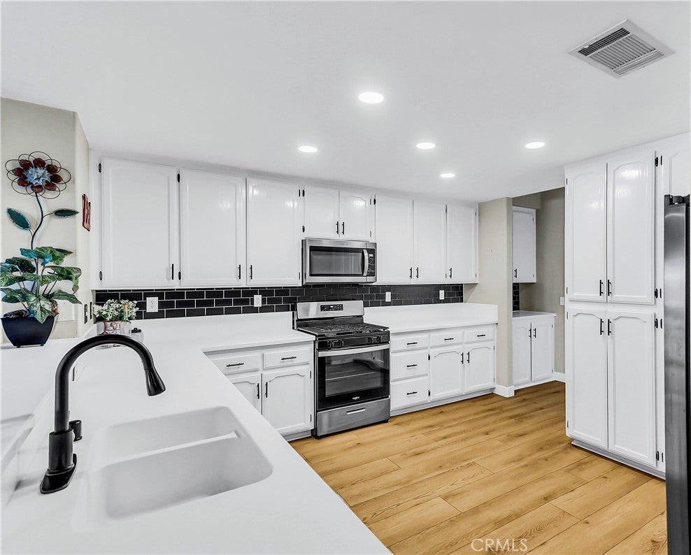 Welcome to 27220 Strawberry Lane in the highly desirable Silver Lakes community! Built in 2007 and situated on a spacious corner lot, this 3-bedroom, 2-bath residence offers 1,934 sq ft of thoughtfully designed living space — the perfect blend of comfort, modern convenience, and resort-style living. Step inside to an open, split-floor plan that ensures privacy and function. The primary suite is generously sized and tucked away from the secondary bedrooms, complete with an oversized bathroom featuring dual sinks, a soaking tub, and a large walk-in closet. Throughout the home, vinyl plank flooring, adding both style and durability. This home is not only stylish — it’s energy efficient and future-ready. A solar panel system keeps energy bills low, and a Tesla EV charger in the garage makes it easy to power your drive. So schedule a showing today and make this Dream Home your reality!