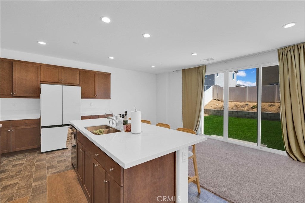 REDUCED PRICE! Gorgeous 4-bedroom, 3-bathroom home built in 2023 with a spacious loft that can be converted into a 5th bedroom. The open-concept kitchen features a large center island with quartz countertops, with refrigerator, washer, and dryer included. Convenient floor plan with 1 bedroom and 1 full bathroom located downstairs. Large backyard, ideal for outdoor living. Turf grass and cemented for party. Located in a gated community offering resort-style amenities including pool and spa. Close to shopping, dining, schools, and easy access to Freeways 10 and 60.