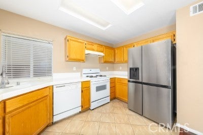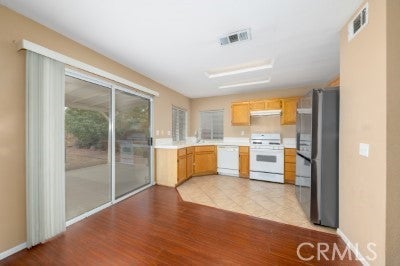 Welcome to 15475 Brasa Lane. Located in the desirable Moreno Valley Ranch community, this cozy 3-bedroom, 3-bathroom home offers a clean and bright atmosphere that will immediately make you feel at home. Situated on a spacious lot, this property features a large backyard with drought-tolerant landscaping, and a large concrete are perfect for family get togethers, BBQs & bonfires. As an added bonus the home comes with PAID SOLAR and two TESLA power walls significantly reducing electricity costs. Home is equipped with a NEMA plug to accommodate a Level 2 EV charger. Inside you'll find laminate wood flooring & tile throughout for easy cleaning and maintenance. Enjoy access to resort-style community amenities including pool, spa, and fitness center. The HOA also organizes fun activities throughout the year. Located near schools, shopping, hospital, and freeway access, this move-in ready home offers comfort, space, and convenience.