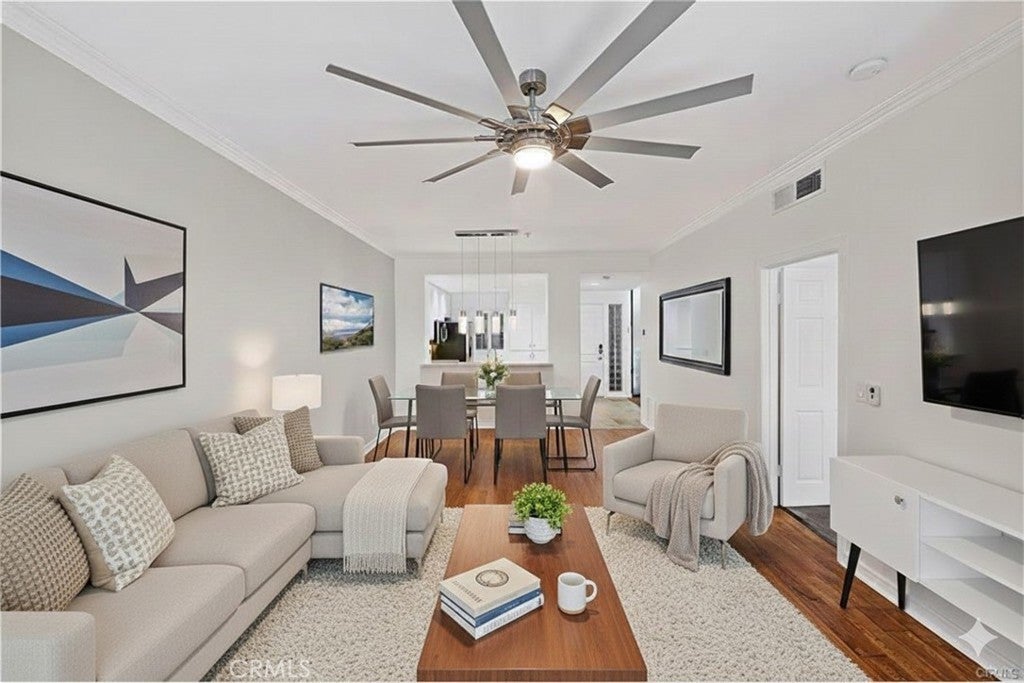 UPGRADES***UPGRADES**FIRST FLOOR**1 BED WITH ADDITIONAL OFFICE WITH CUSTOM CLOSET CABINETS SO CAN BE CONVERTED TO A 2 BED or REMAIN OFFICE*Experience luxury living in one of the safest places to live in Irvine! Welcome to 2243 Martin, Unit 107, located in the highly desirable Metropolitan community, just a short walk to John Wayne Airport. This stunning end-unit condo offers privacy with only one shared wall and an open layout designed for modern living. Inside, you’ll find upgraded quartz countertops in both the kitchen and bathroom, Mohawk carpet, refinished balcony floor, & extra storage in the unit to custom Elfa shelving in the den/office or turn into 2nd bedroom, elegant crown molding, and a designer bedroom chandelier. The spacious den features custom 10-ft closet doors with extra storage, while the home is enhanced with motorized LED lighting with remotes and plantation shutters throughout and NEST thermostat. The Garage is parking step away from stairs and elevator Relax on your private balcony overlooking the tranquil greenbelt or enjoy the resort-style amenities at The Metropolitan: a sparkling heated pool, spa, fitness center, elegant clubhouse, and lush landscaped grounds perfect for an evening stroll. The community also offers 24/7 gated security, underground parking, and HOA coverage of water, gas, and trash for peace of mind. Nestled in the heart of Irvine, you’ll be minutes from top-rated parks, recreation, world-class shopping, dining, and beaches. Don’t miss the chance to own this beautifully upgraded home in one of Irvine’s most sought-after communities!