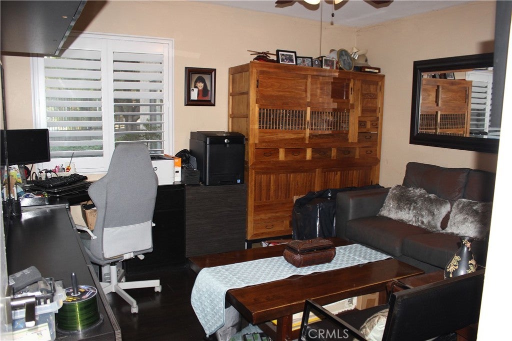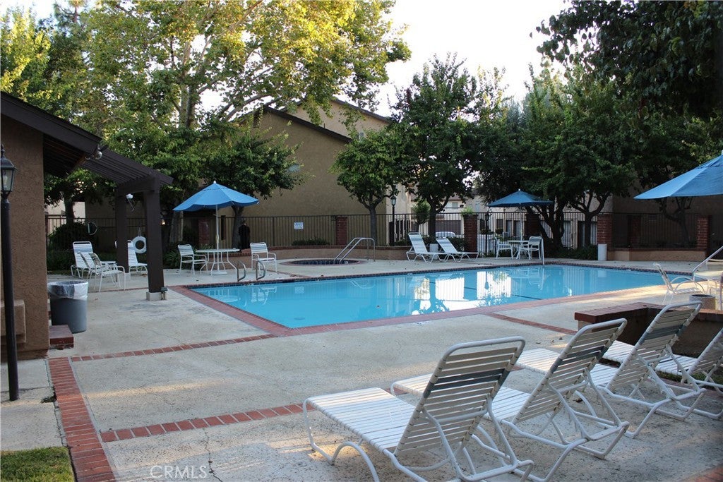 Spacious and move-in ready, this beautifully updated single-level end unit offers 2 bedrooms, 2 bathrooms, an indoor laundry room, and an attached 2-car garage. Enjoy a large primary suite with two generous closets, upgraded bathrooms and kitchen, and wood flooring throughout. The living room features a cozy gas fireplace, and plantation shutters add a touch of elegance throughout the home. Additional highlights include a covered patio, newer HVAC (approx. 3 years old), and abundant natural light thanks to its end-unit location. Community amenities include multiple pools, guest parking, and serene park-like grounds. A rare blend of privacy, style, and convenience! The HOA covers water, trash, sewer, roof, termite, gardening, pool maintenance, insurance, and more—making this home both low-maintenance and high-value. Located just minutes from Freeways 60 and 10, shopping, restaurants, and public transportation.