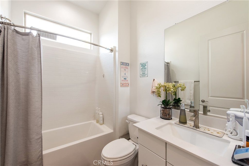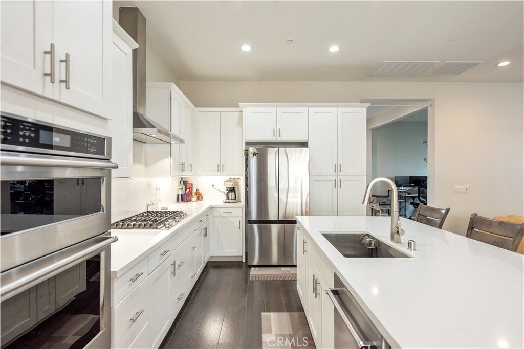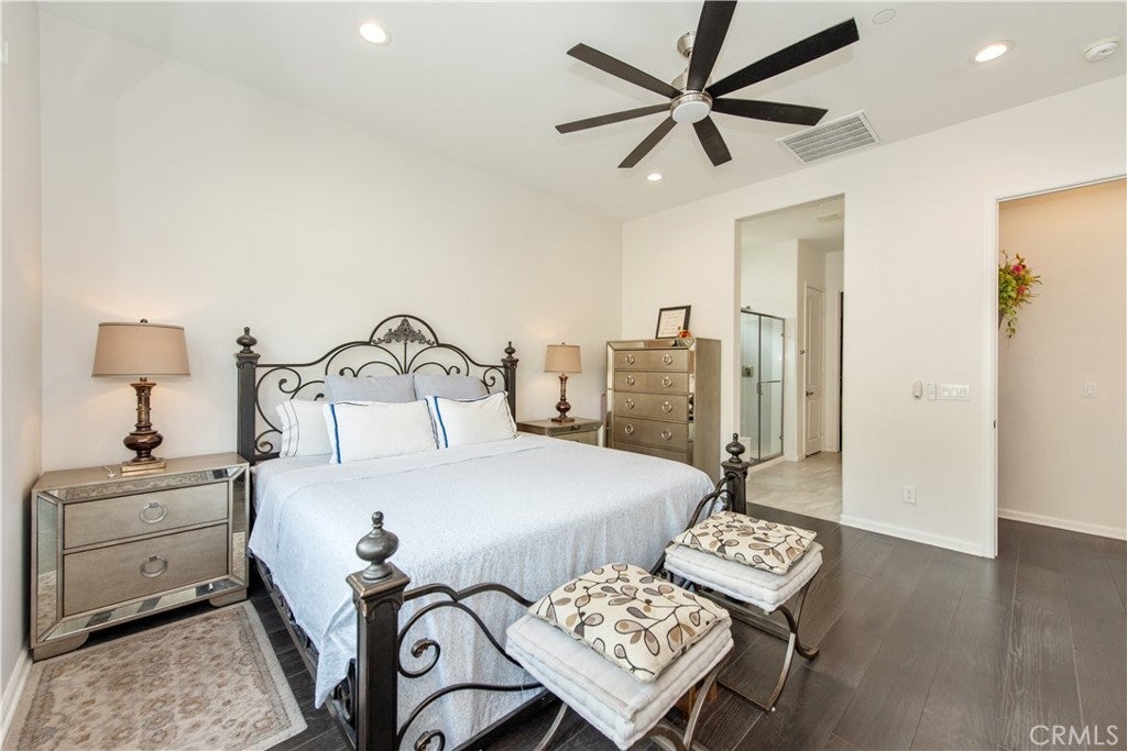 Turnkey! Enjoy effortless living earned at Terramor, a highly sought-after 24/7 guard-attended gated 55+ community. Located on a desirable corner lot, this cozy single-story home is designed for likeminded residents seeking peaceful well-being. The fully paid-off solar system locks in low electricity costs, providing immediate comfort and a lasting energy advantage. As you step into the home, it greets with an open, cozy living room filled with abundant natural light that flows seamlessly into the kitchen and dining area. Visualize preparing meals at the central island, where the kitchen elevates daily necessity with upgraded Quartz countertops, a sensor faucet, and an upgraded KitchenAid stainless appliance suite featuring a 6-burner range and a dedicated ventilation system that allows you to fully immerse in the gourmet experience to share with family. The interiors soothe senses with upgraded earthy tone paints and modern remote-controlled window blinds, complemented by a water softener for quality water and continuous upgraded wood flooring throughout the living space, all illuminated by recessed lighting and an upgraded dining room chandelier. Comfort is further enhanced by ceiling fans in the living room and both bedrooms. The master bedroom offers a good-sized walk-in closet with sensored lighting, while a second bedroom, currently used as an in-home office, demonstrates flexible living. Step through the sliding door from the dining room onto a private patio to entertain—the center of a tranquil, fully landscaped, low-maintenance backyard oasis, secured and ready for a genuinely relaxed life. Additional features include an upgraded glass-insert front door, upgraded tile at foyer, sensored lighting system in both bathrooms and walking closet, patio, and foyer, an individual laundry room, tankless water heater, 2-car attached garage, and a smart water conserve sprinkler system. Your fulfilled quality living is supported by HOA amenities including indoor/outdoor pools, a gym, clubhouse, sauna, gated access, pickleball/tennis/sports courts, a dog park, and banquet facilities.