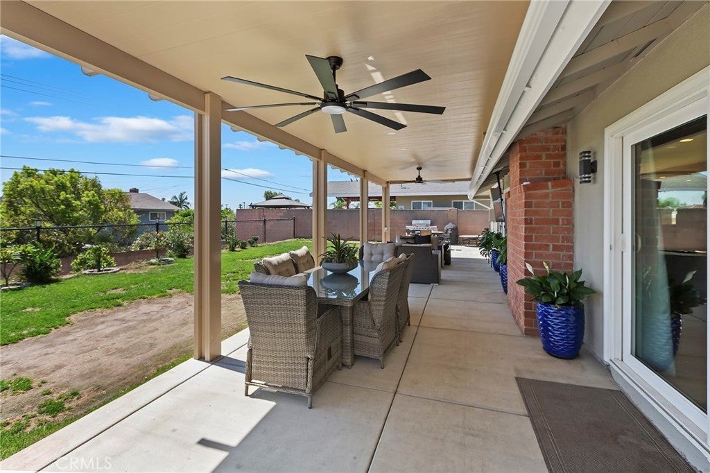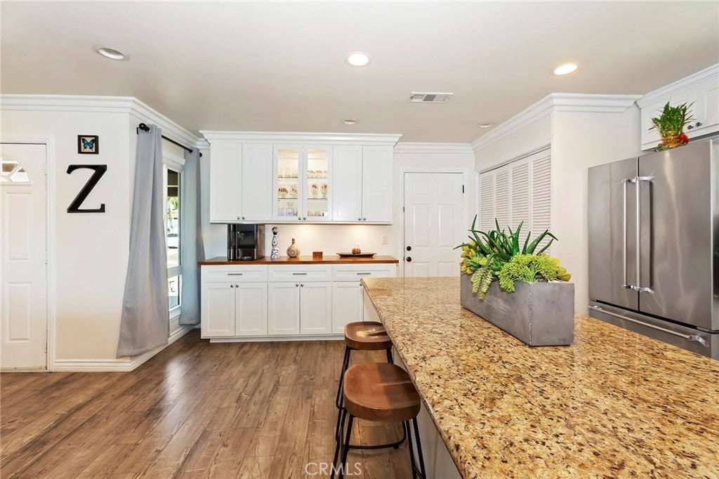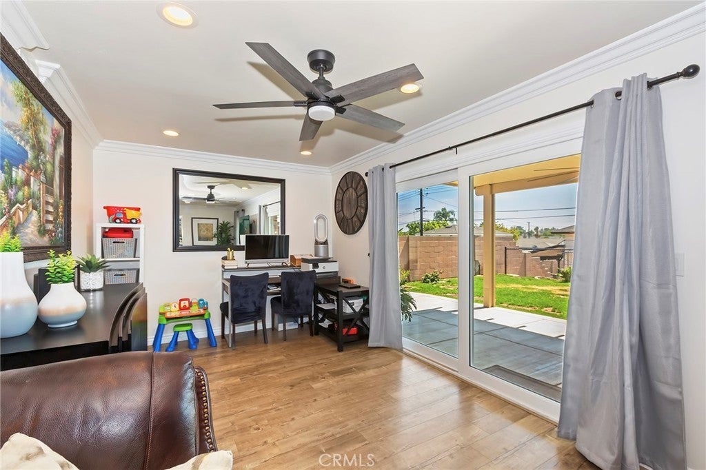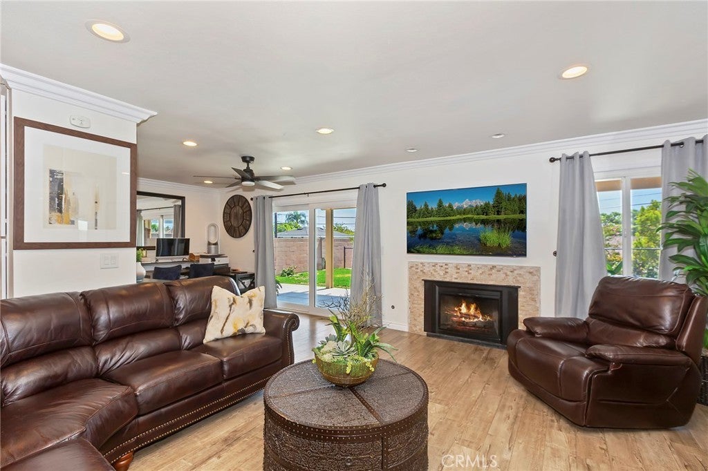 Exquisitely renovated single-story residence situated on a generous lot in Buena Park! This 3-bedroom, 2-bath home harmoniously combines comfort, elegance, and practicality within approximately 1,550 sq ft of living area. A luminous, open floor plan showcases a contemporary kitchen featuring granite countertops, a breakfast bar, and upgraded cabinetry, seamlessly connecting to the dining and living spaces adorned with wood-style flooring, recessed lighting, and energy-efficient double-pane windows. The expansive primary suite serves as a private sanctuary complete with a walk-in closet, while two additional bedrooms offer ample versatility for family, guests, or a home office. A remarkable aspect of this property is the large covered back patio, ideal for year-round outdoor dining, entertaining, or simply unwinding in the shade while enjoying the spacious backyard. Another unique convenience is the dual laundry arrangement—one laundry area is conveniently located inside the home for easy access, while the second is situated in the attached two-car garage, providing maximum flexibility. Additional enhancements include central heating and air conditioning for year-round comfort, and the generous 8,500 sq ft lot presents limitless possibilities for gardening, recreation, or outdoor living. Perfectly positioned near shopping, and freeways, this home merges modern updates with everyday convenience, ready to embrace its new owners!