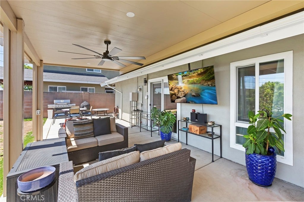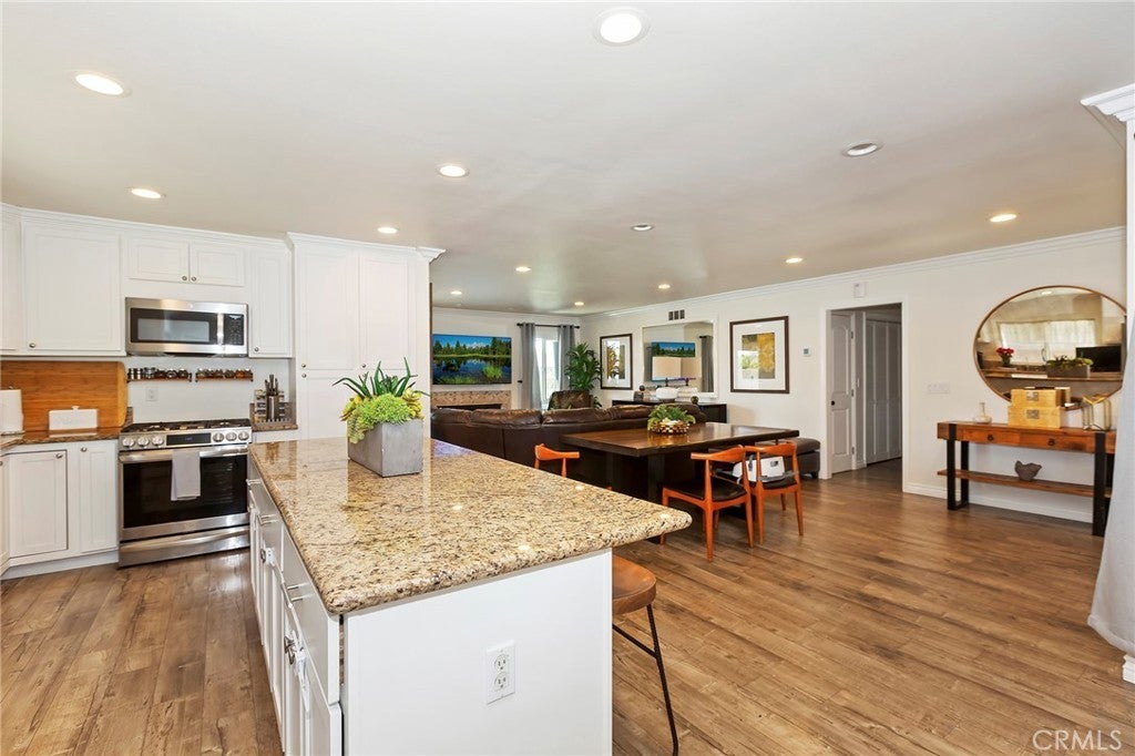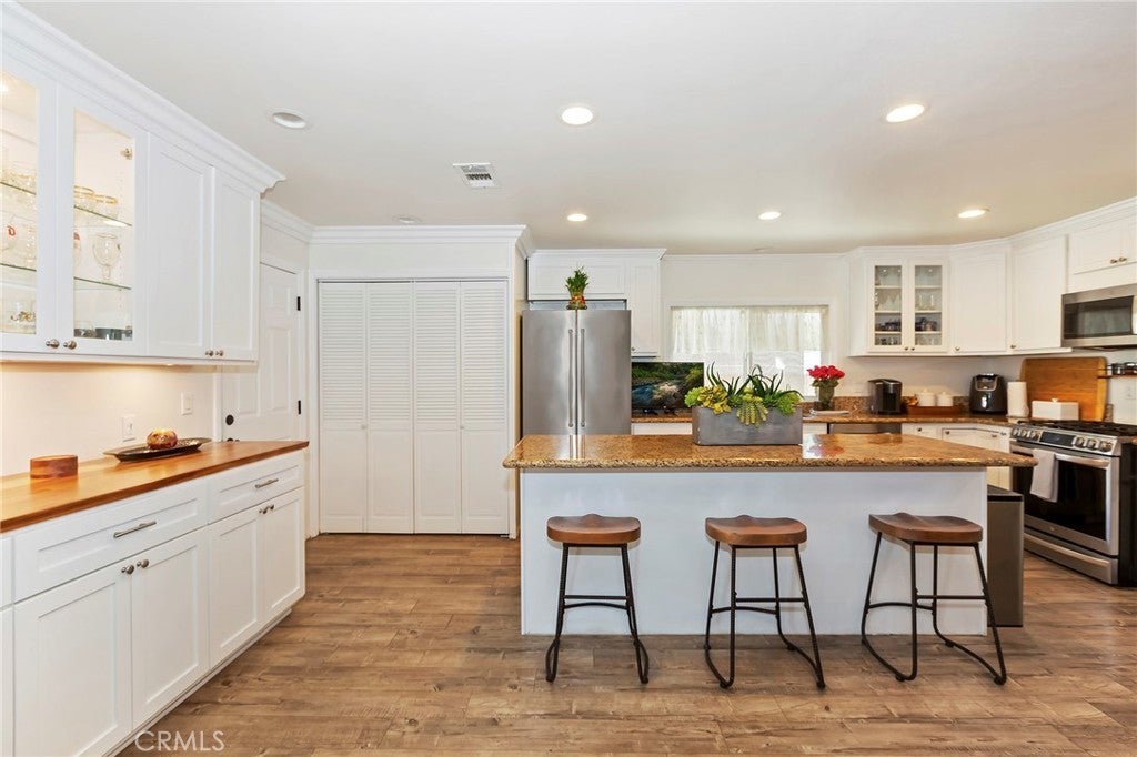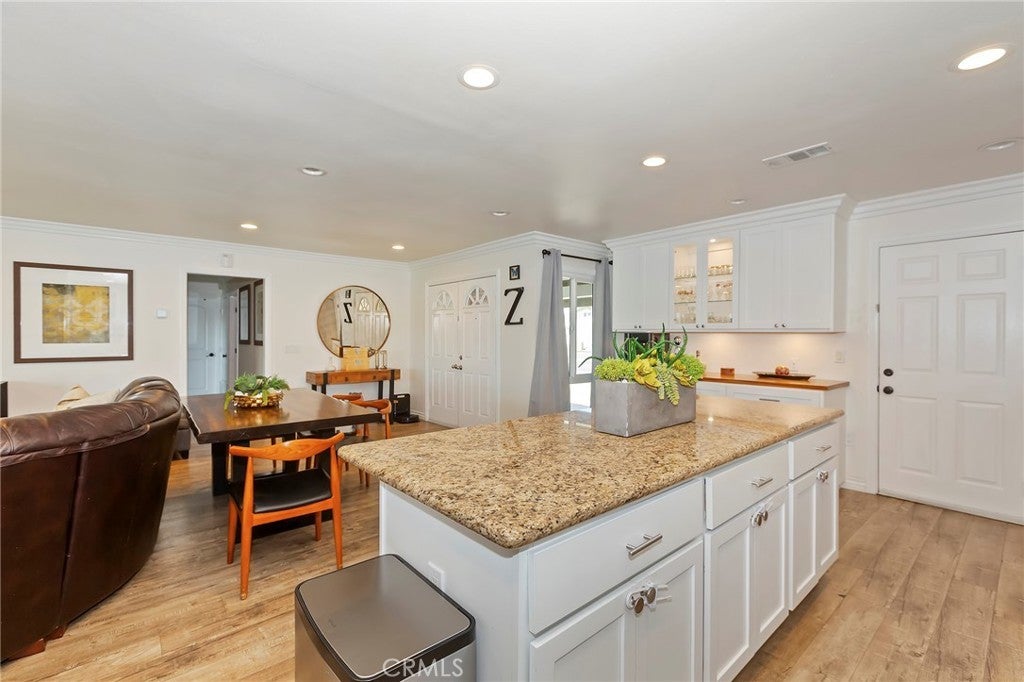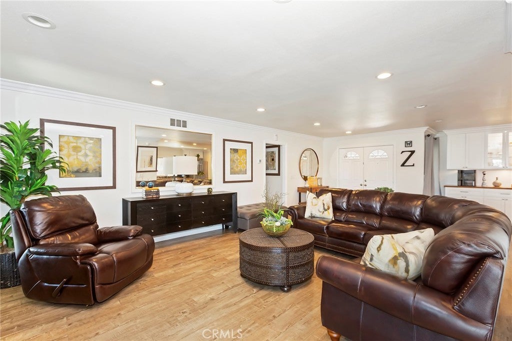Exquisitely renovated single-story residence situated on a generous lot in Buena Park! This 3-bedroom, 2-bath home harmoniously combines comfort, elegance, and practicality within approximately 1,550 sq ft of living area. A luminous, open floor plan showcases a contemporary kitchen featuring granite countertops, a breakfast bar, and upgraded cabinetry, seamlessly connecting to the dining and living spaces adorned with wood-style flooring, recessed lighting, and energy-efficient double-pane windows. The expansive primary suite serves as a private sanctuary complete with a walk-in closet, while two additional bedrooms offer ample versatility for family, guests, or a home office. A remarkable aspect of this property is the large covered back patio, ideal for year-round outdoor dining, entertaining, or simply unwinding in the shade while enjoying the spacious backyard. Another unique convenience is the dual laundry arrangement—one laundry area is conveniently located inside the home for easy access, while the second is situated in the attached two-car garage, providing maximum flexibility. Additional enhancements include central heating and air conditioning for year-round comfort, and the generous 8,500 sq ft lot presents limitless possibilities for gardening, recreation, or outdoor living. Perfectly positioned near shopping, and freeways, this home merges modern updates with everyday convenience, ready to embrace its new owners!