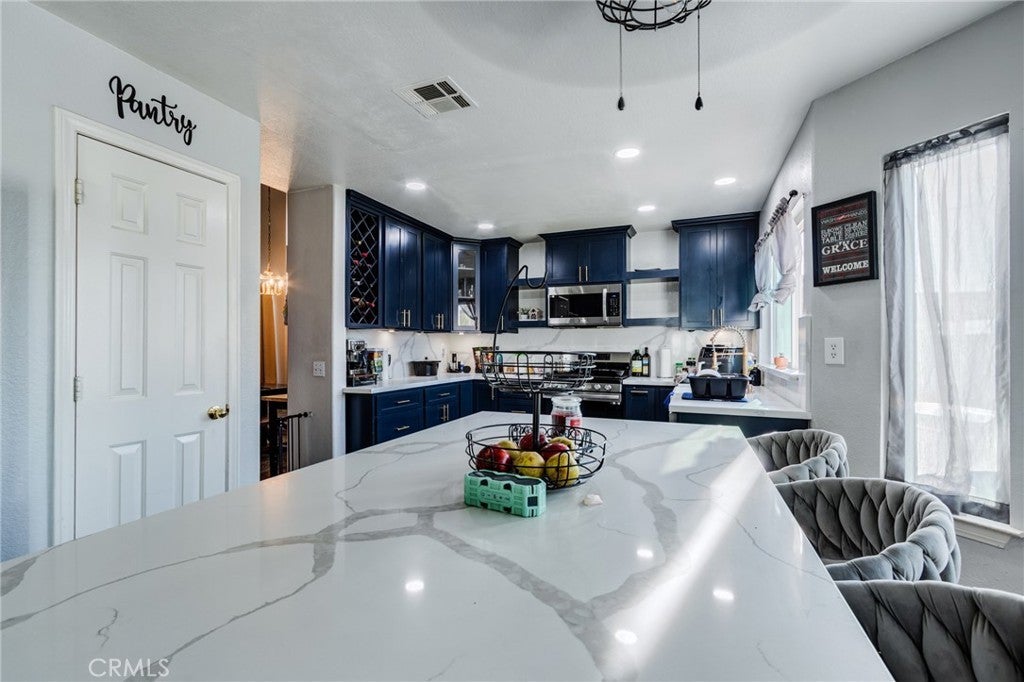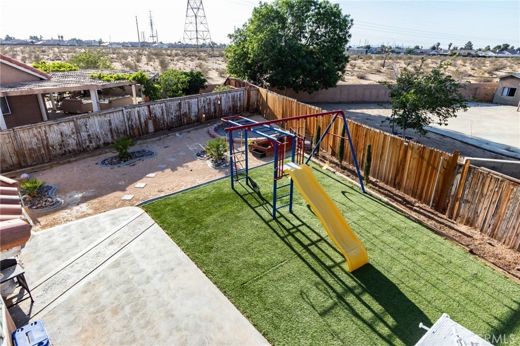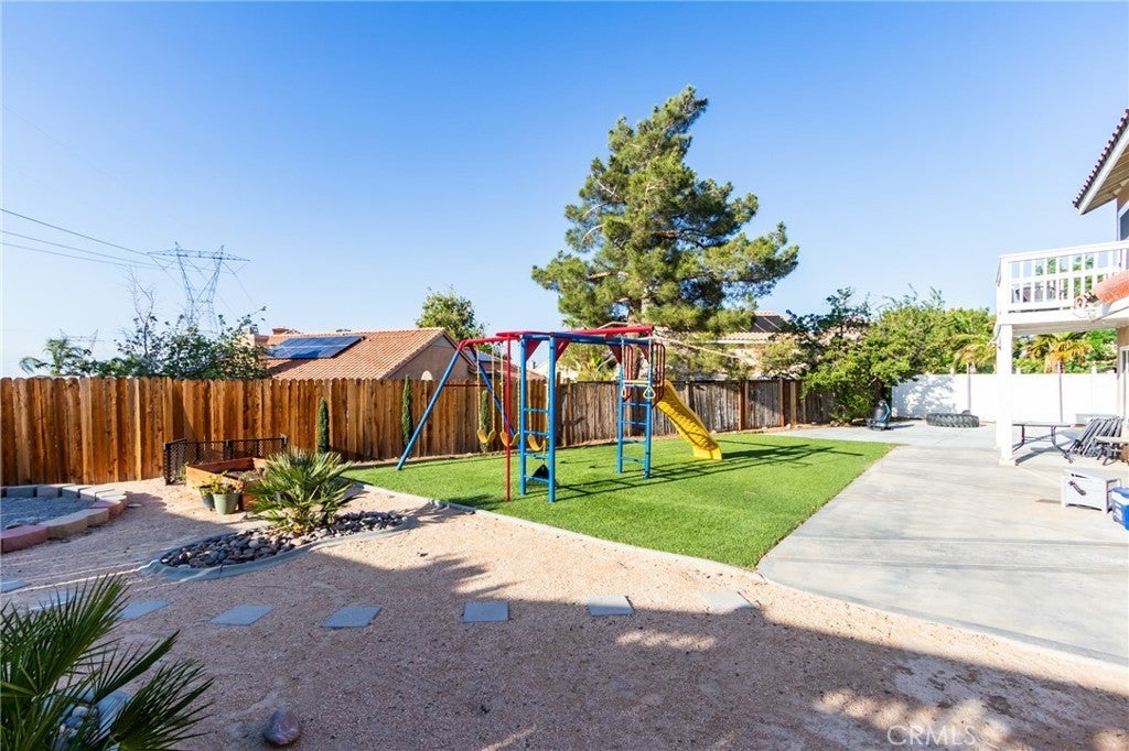 Welcome to 13198 Blue Mesa Ct, a beautifully upgraded 5-bed, 3-bath home nestled in a quiet cul-de-sac in Victorville. With approximately 2,233 sq ft of living space on an 8,200 sq ft lot, this residence offers comfort, style, and functionality for modern family living. Step inside to discover a thoughtful layout with one bedroom and a full bath conveniently located on the main level — perfect for guests or multi-generational living. Upstairs you’ll find the spacious primary suite with a private balcony, three additional bedrooms, and two more full baths. The open living areas include a cozy family room with a fireplace, an eat-in kitchen, and a formal dining area, all enhanced by vaulted ceilings that create a bright, airy atmosphere. This home has been updated for peace of mind and efficiency, featuring brand new dual-pane windows, a new HVAC system and furnace, new water heater, and wireless smart thermostat. Enjoy the large backyard with plenty of space for entertaining, gardening, or even adding a pool. Additional highlights include RV parking, a 3-car garage, and a low-maintenance front yard. Located near shopping, schools, and freeway access — with no HOA — this home combines convenience with flexibility. Don’t miss your chance to own this Victorville gem that’s move-in ready and full of potential! Schedule your private showing today.