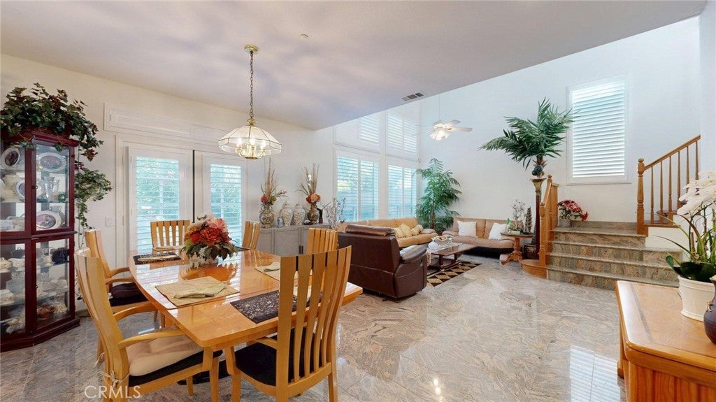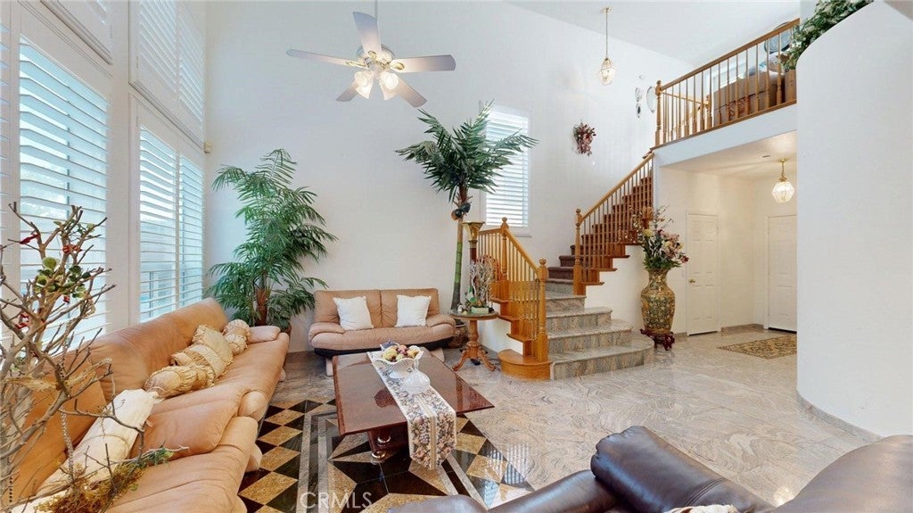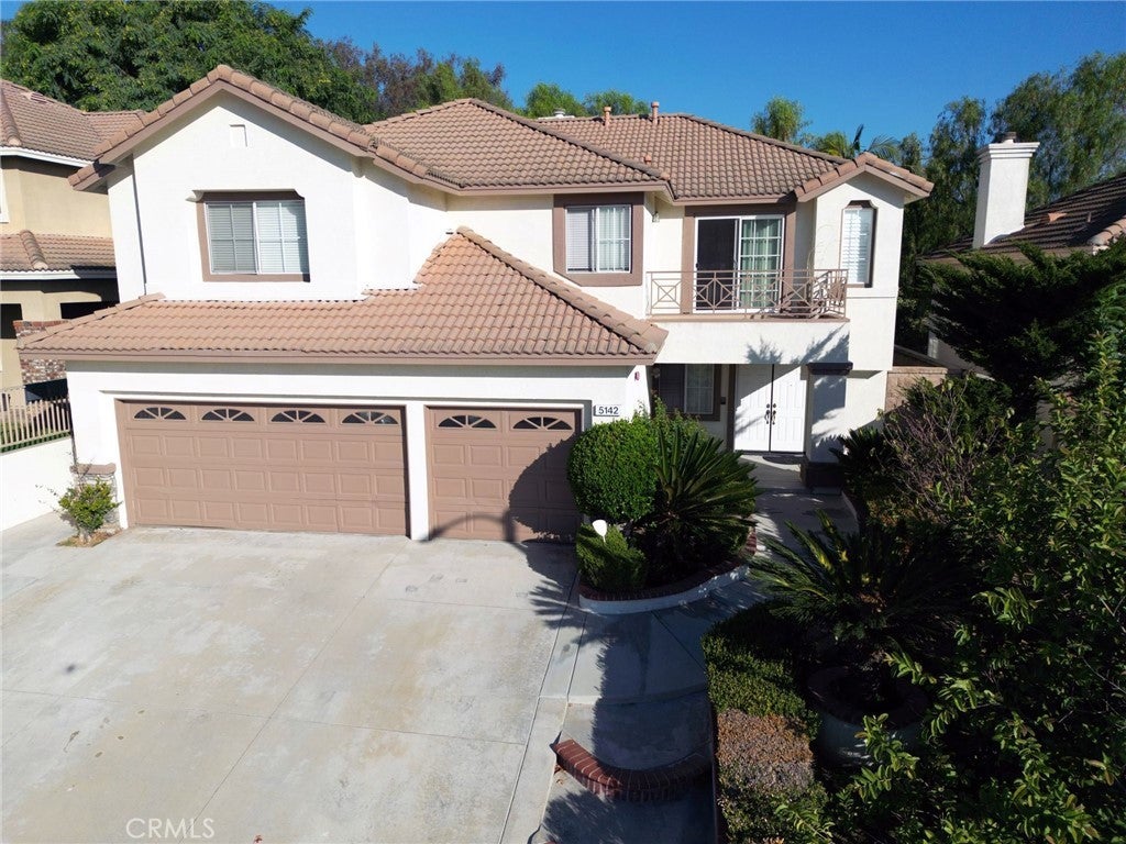 5142Cellini Drive presents a well maintained and equipped 5 bedrooms and 3 bathrooms in a highly desirable area of Chino Hills. This beautiful home features spacious upstairs primary bedroom with adjoining bathroom configuration (tub & separate shower) and a walk-in closet. Three additional bedrooms are located upstairs with a shared full bath in the hallway. The fifth bedroom is on the main floor with 3/4 bath shared with guests. A grand double-height entry into this home fills inside with natural light, voluminous living room (floor to roof height) that seamlessly flows into the formal dining, with double French door that opens to the backyard. The kitchen is contiguous with a cozy family room that features a fireplace and custom wine rack. Family room and kitchen have two slider glass doors leading to the side and backyard of this property. The entire flooring downstairs (including the kitchen countertop and the backsplash) is tastefully decorated with exquisite, polished granite marble soothing to the eyes. Windows in this house are fitted with energy saver custom wood shutters. This home is also fitted with copper piping, central vacuum and working intercom to each room. Flooring in each room in this residence is wood laminate. Stairway leading up lands on the second-floor loft which opens to a private front balcony with a beautiful city light view. The backyard, with a designer concrete deck, enjoys privacy, no neighbor and plenty of organic fruit trees. This home has a lot to offer, this is a mu.st see and sellers are motivated. Call for an appointment to show this one. Celebrate Holidays with families and friends.