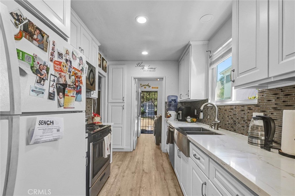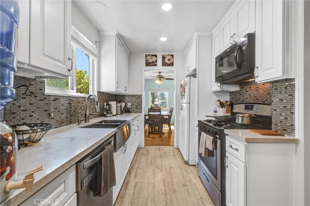 Welcome to this Altadena charmer, where classic 1940s craftsmanship meets thoughtful modern living. This inviting 3-bedroom, 1-bath home spans 1,141 sq. ft. on a 5,727 sq. ft. lot, offering the perfect balance of comfort, functionality, and Southern California style. Step inside and be greeted by the warmth of original hardwood floors and a cozy gas fireplace — ideal for cool evenings or quiet moments at home. Updated vinyl double-pane windows and recently blown-in insulation ensure year-round comfort, while the brand-new roof on both the home and detached garage (replaced in Oct 2025) brings added peace of mind and value. The modernized kitchen shines with quartz countertops, a glass tile backsplash, soft-closing cabinetry, and recessed lighting. With generous counter space and ample storage, it’s designed for both everyday living and entertaining. The bathroom has been stylishly refreshed with tile flooring, a granite countertop, and a tiled shower enclosure, blending elegance and practicality. Enjoy the convenience of a separate laundry room, ceiling fans in most rooms, and two spacious storage sheds. The detached garage presents excellent ADU potential, offering future expansion or rental income opportunities. The private backyard is ideal for weekend barbecues, gatherings, or simply unwinding beneath the California sky. Located just minutes from the world-famous Rose Bowl, Old Town Pasadena, and popular hiking trails, this home captures the best of Altadena living. With easy access to the 210 freeway and nearby John Muir Magnet High School, you’ll find both convenience and community at your doorstep. This Altadena gem delivers the perfect blend of charm, location, and modern upgrades — a rare opportunity for those seeking a move-in-ready home in one of the San Gabriel Valley’s most coveted neighborhoods.